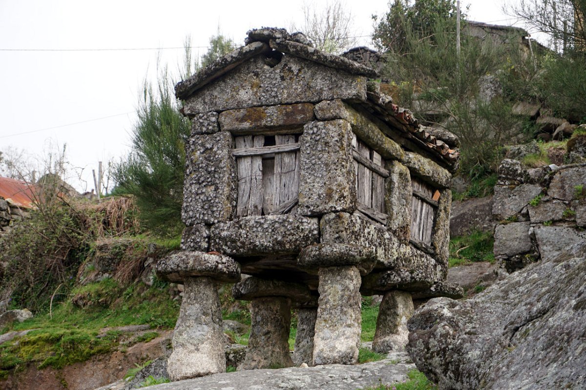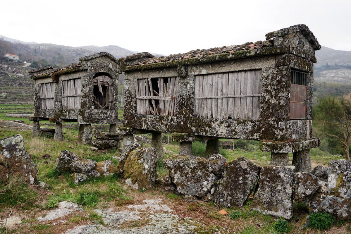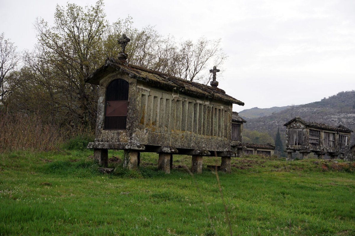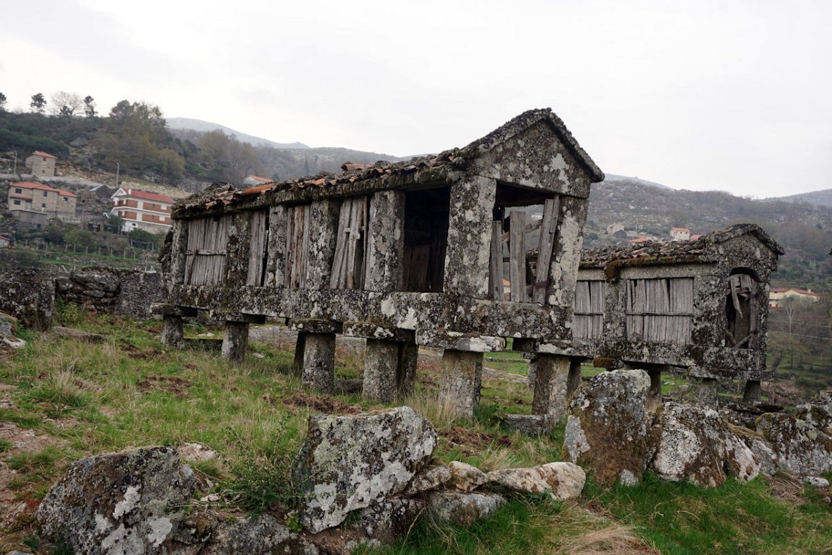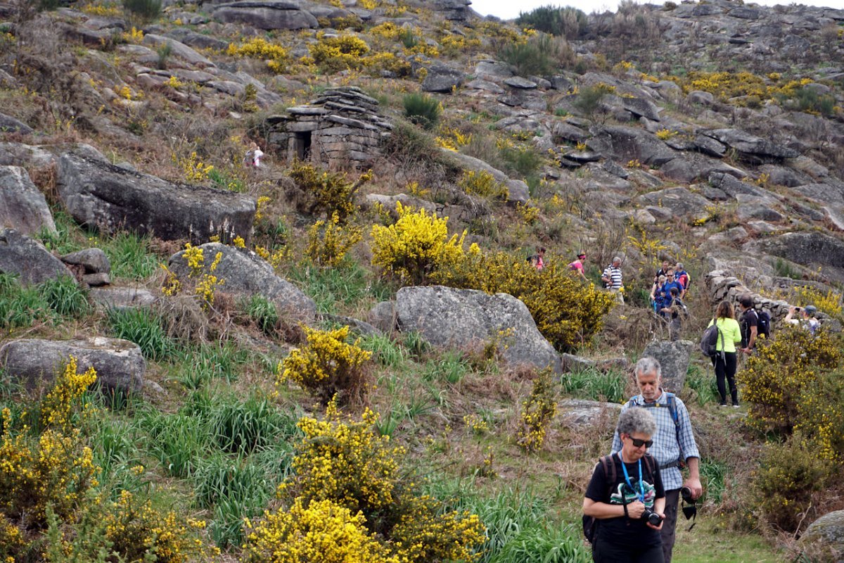Esta última tirada foi bem dura, pois para além da forte inclinação da calçada, já levávamos nas pernas muitos quilómetros, o que fez com que o grupo se alongasse consideravelmente. Mas chegamos todos bem, fazendo o agrupamento num interessante conjunto de espigueiros de Bouças Donas, agora totalmente em ruína, testemunhas do abandono progressivo das terras de cultivo.