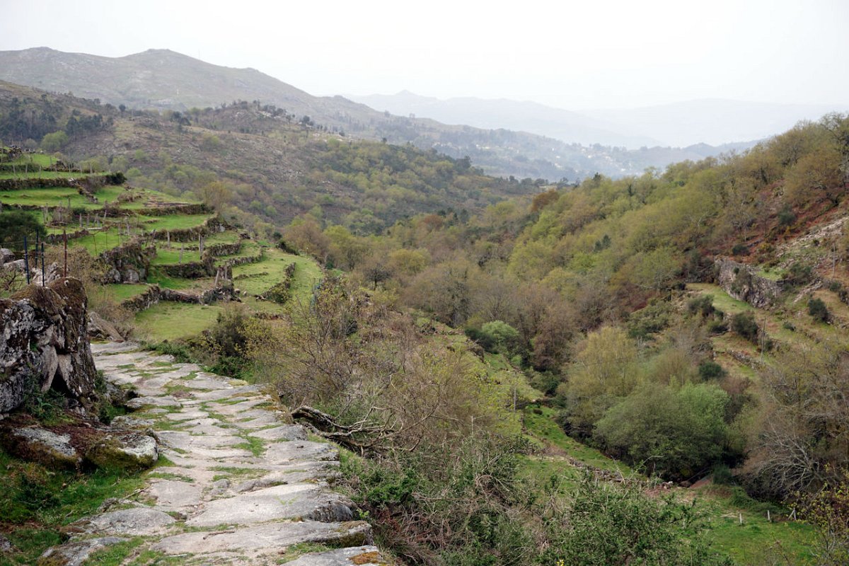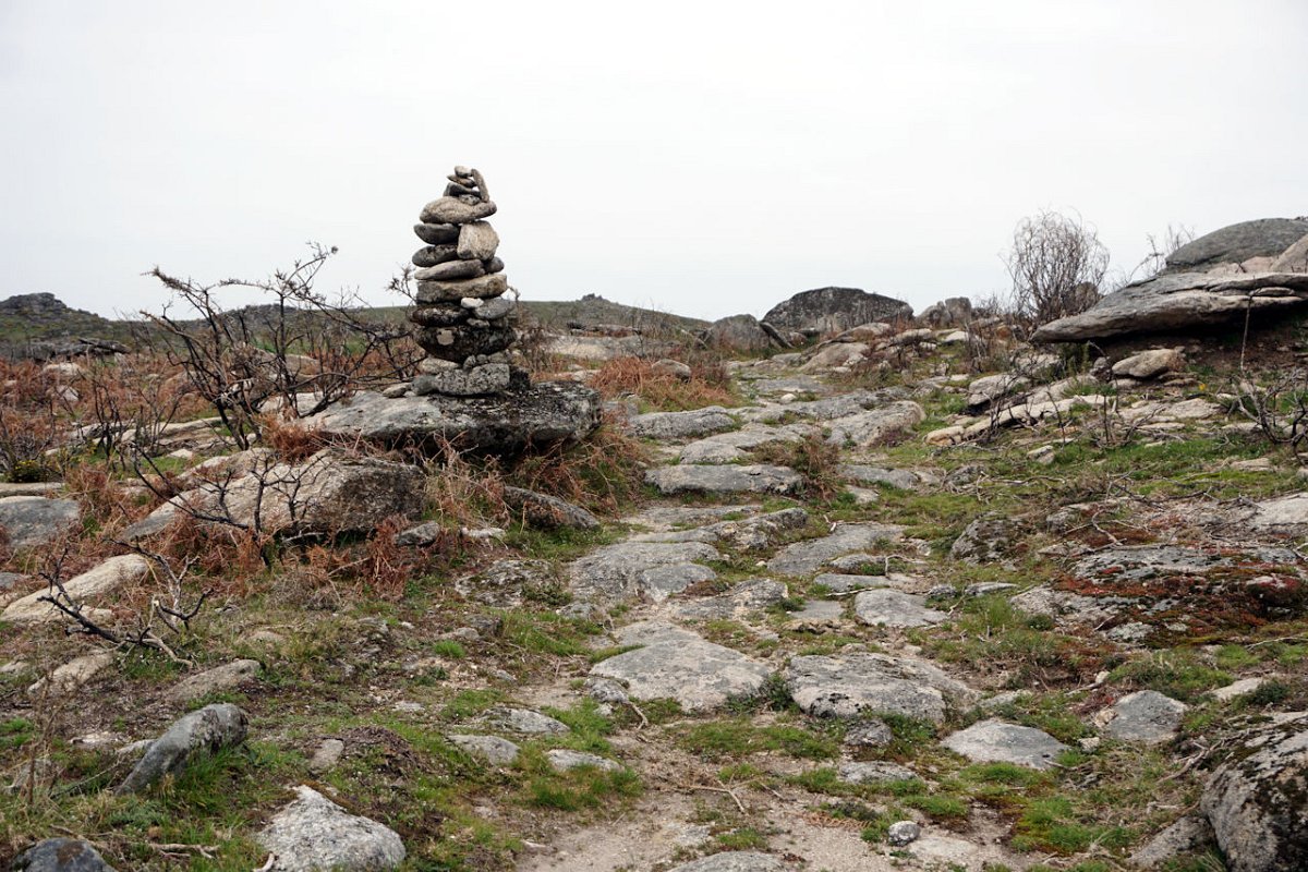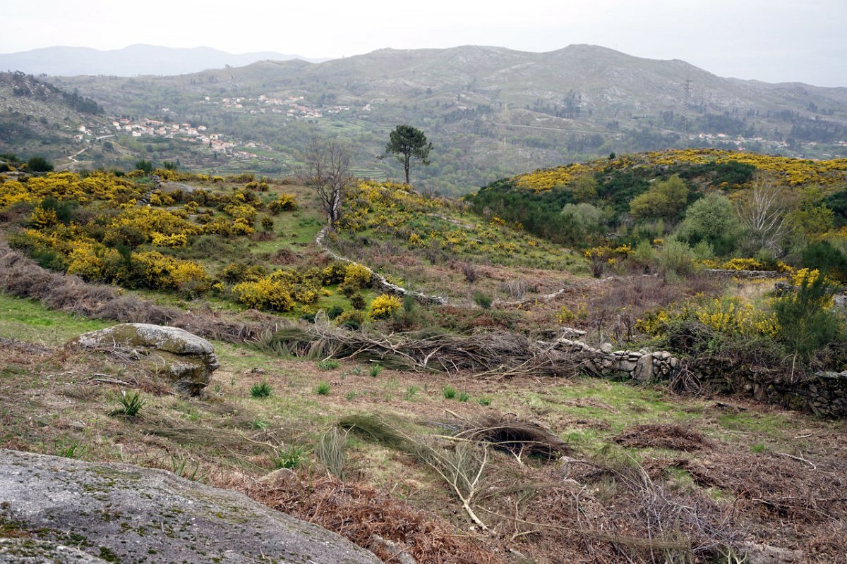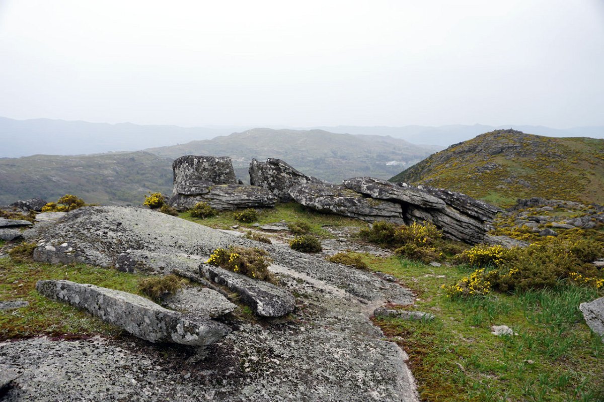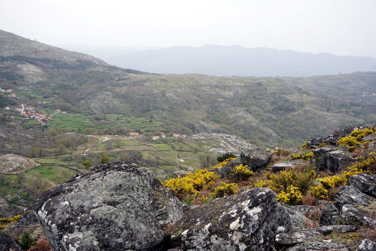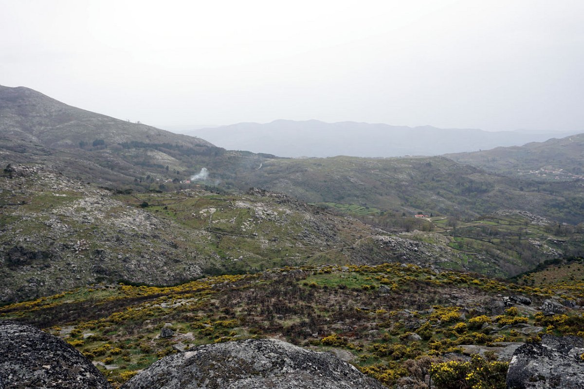 Mas era tempo de regressar, tomando agora a margem direita do ribeiro de Bostelinhos e rumando na direção do marco geodésico de Alvite, que com os seus 838 m de altura domina toda a paisagem circundante. A elevação, conhecida como Picota de Frangoto, permite desfrutar de uma paisagem grandiosa para os diversos vales circundantes e para os elevados picos do parque natural Peneda -Gerês.