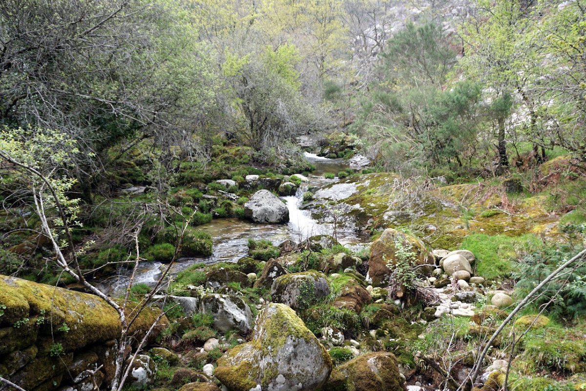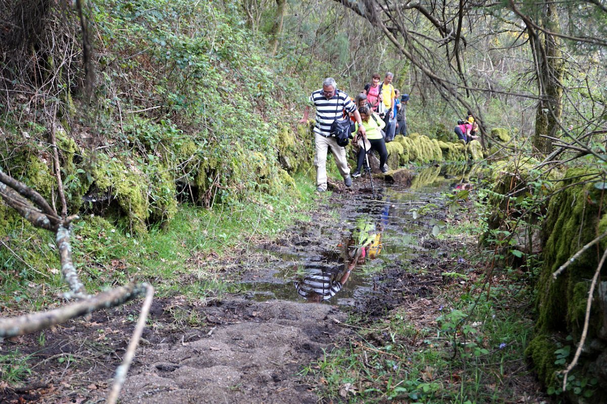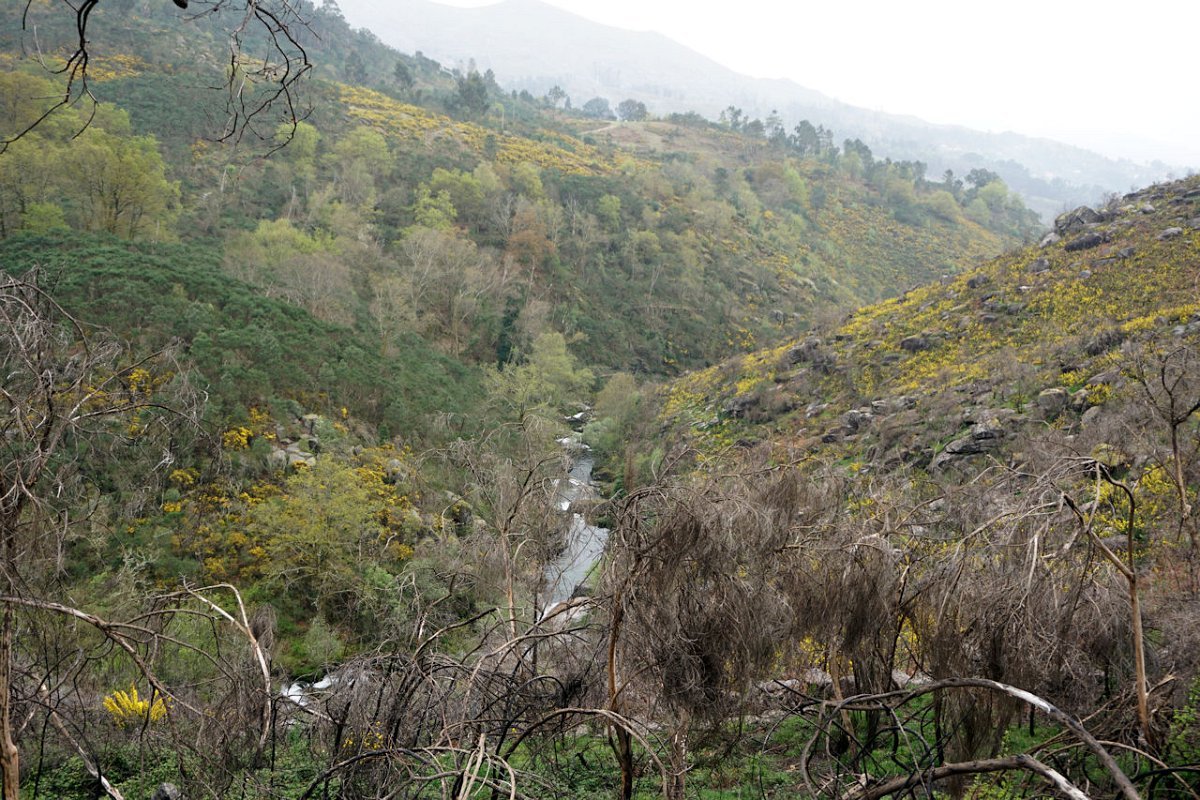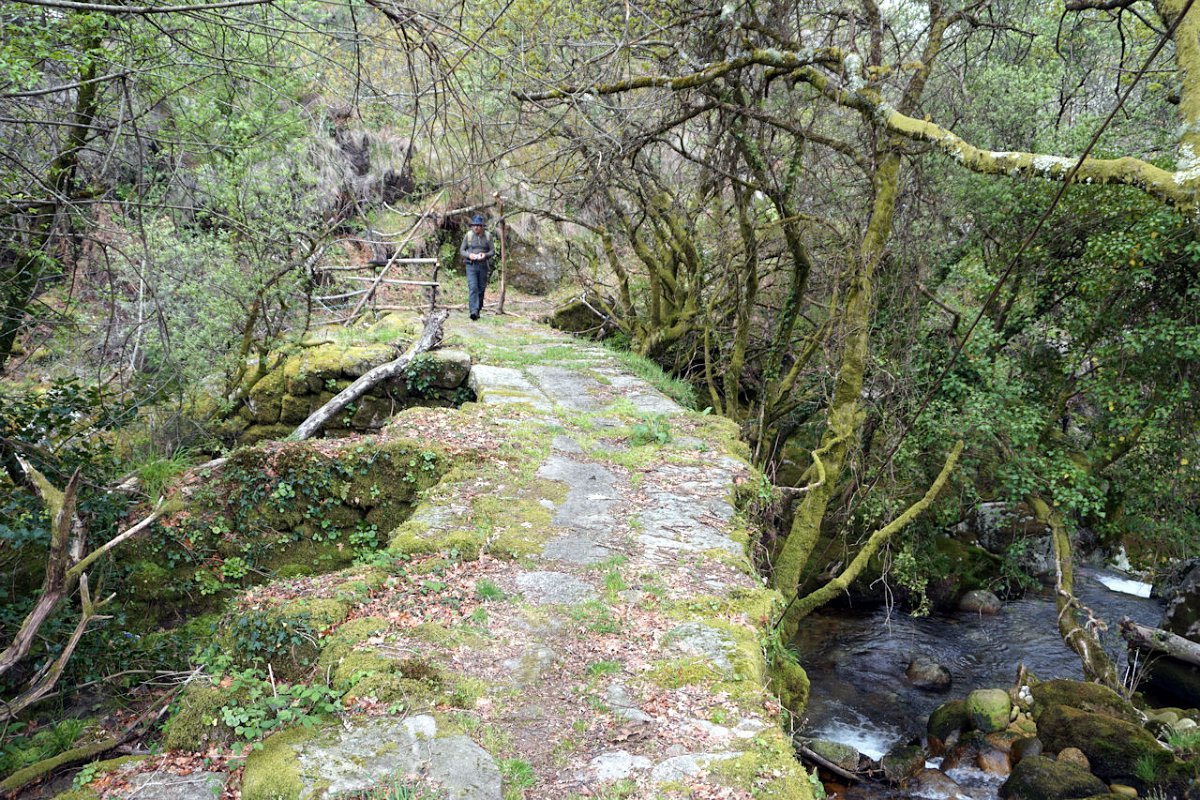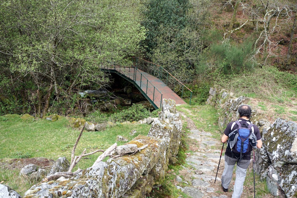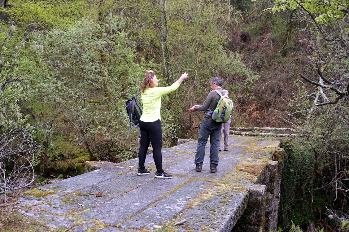 Descemos de seguida para a ribeira de Vilela que atravessamos na Ponte de Vilela, passando para a sua margem direita, seguindo a meia encosta na direção da Ponte do Galego. A inoportuna chuva entretanto parou, mas a muita humidade no ar e a subida continuada fez-nos suar às estopinhas, pelo que aí fizemos a derradeira paragem para recuperar forças para iniciar a ascenção para Bouças Donas.