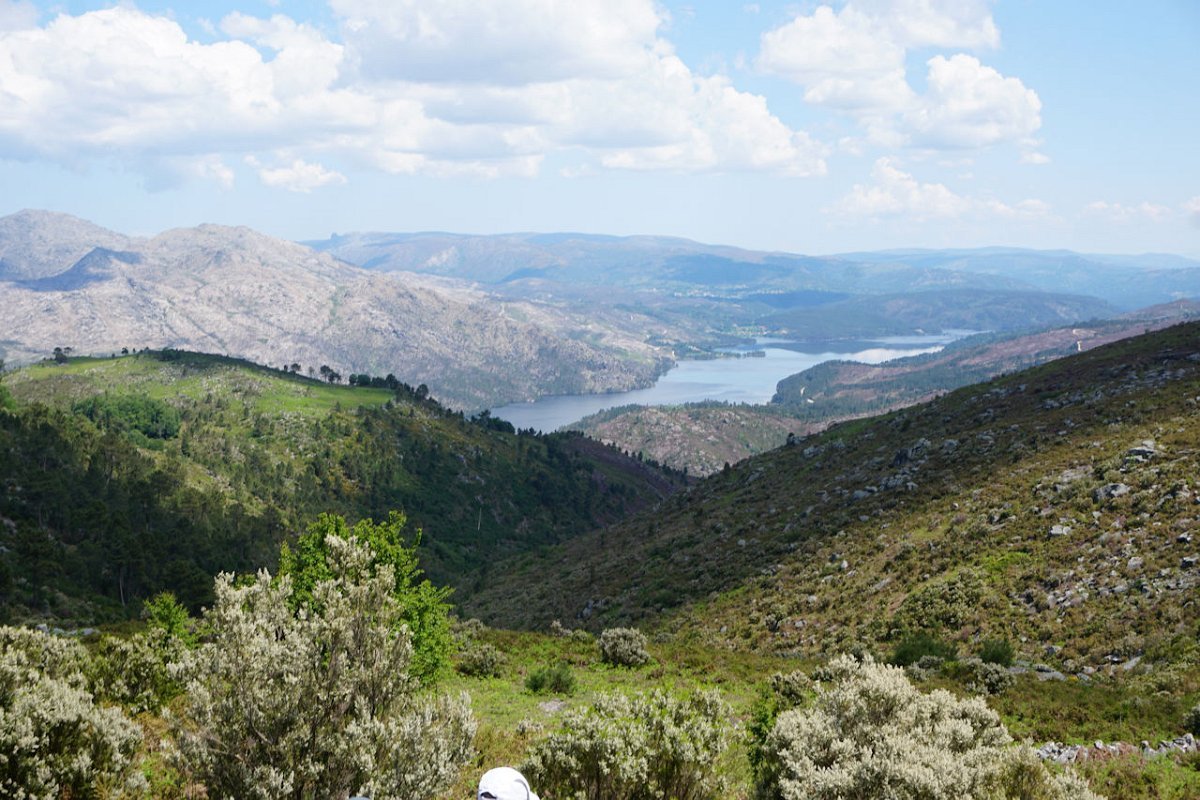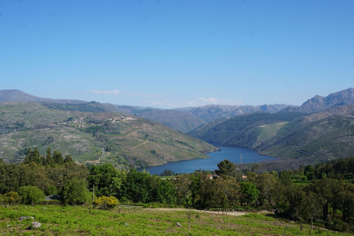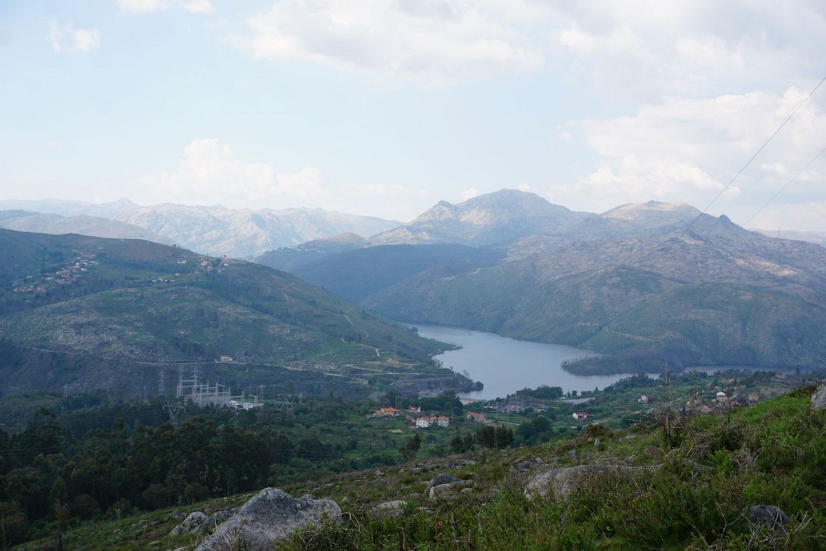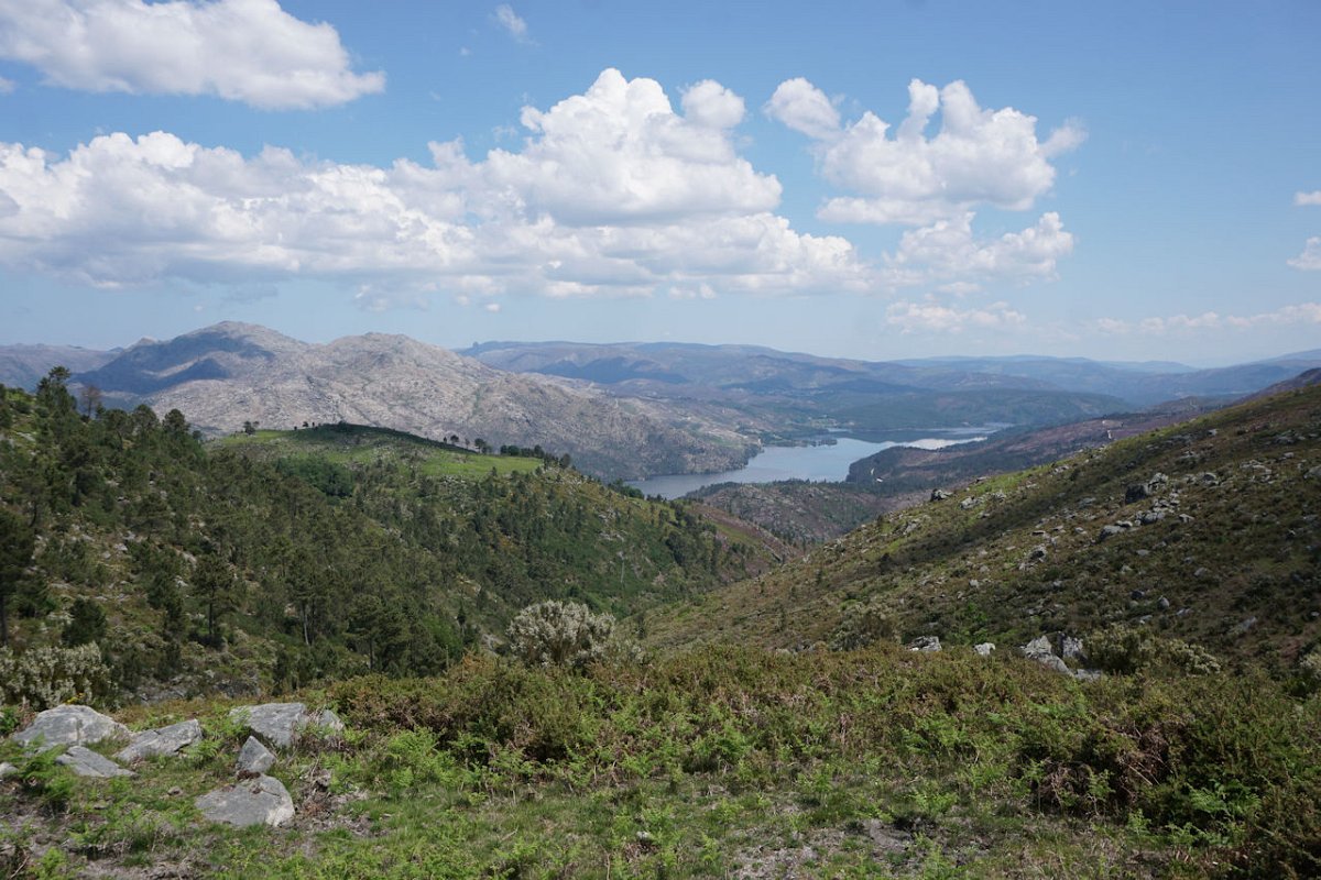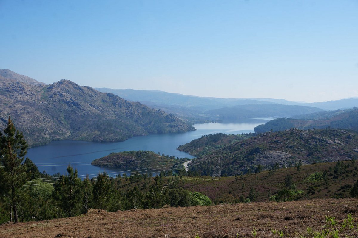 Contornamos o “alto do Peixarrão” e aos poucos começamos a divisar lá bem no fundo primeiro a aldeia de Parada” e depois, finalmente… o Lindoso, com o seu castelo em grande destaque, tendo ao fundo a grandiosa albufeira da barragem, na confluência do rio Lima com o rio Castro Laboreiro, com a aldeia de Paradela encimada com o “Alto do Porco” à esquerda e a galega Olelas com o “Cota da Pola” à direita.