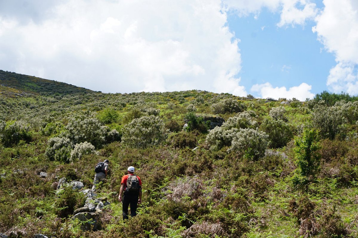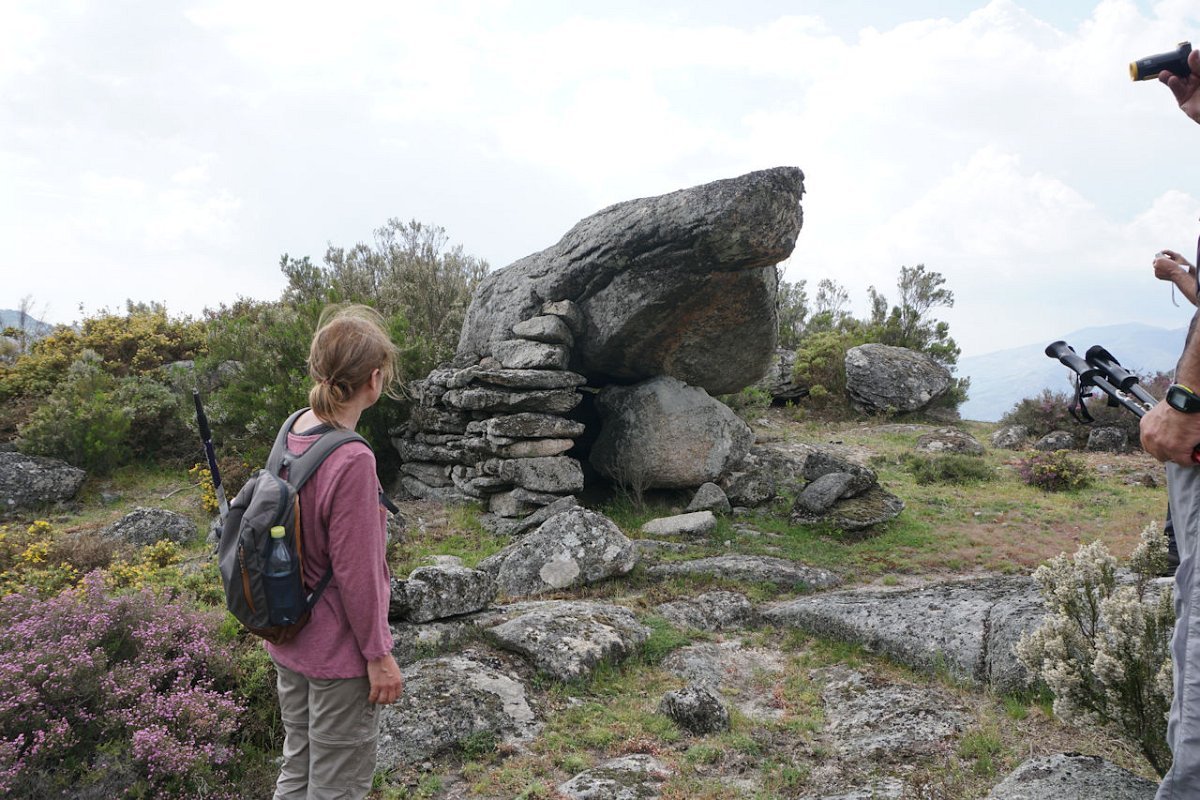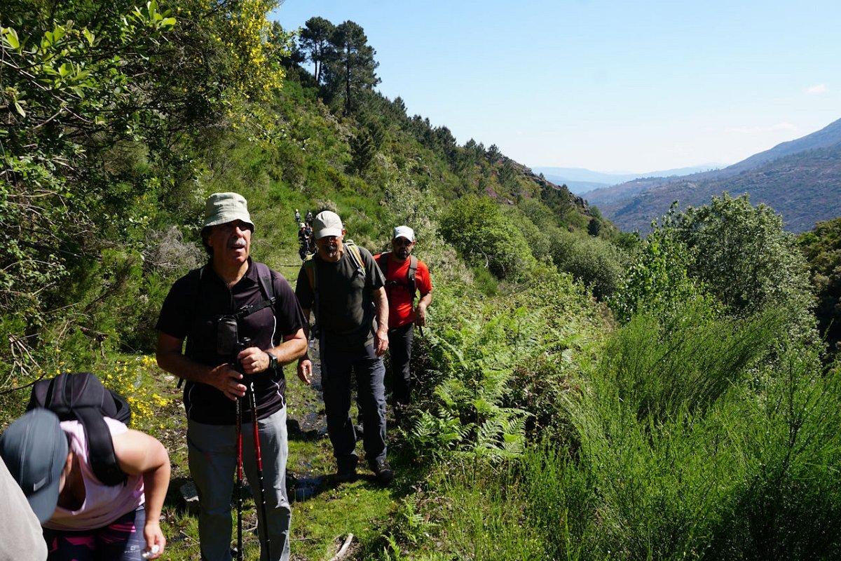 Atravessamos o casario granítico do Lindoso e rumamos ao vale do rio Cabril, contornando o “Couto da Cheira” até à corga da ribeira de Sardeira, tendo aí começado as dificuldades do dia. Até onde houve estradão a coisa correu bem, mas após chegar à captação de água da ribeira tudo mudou de figura, tendo o estradão desembocado numa muralha de pedras cobertas de líquenes, que não identificamos como caminho.