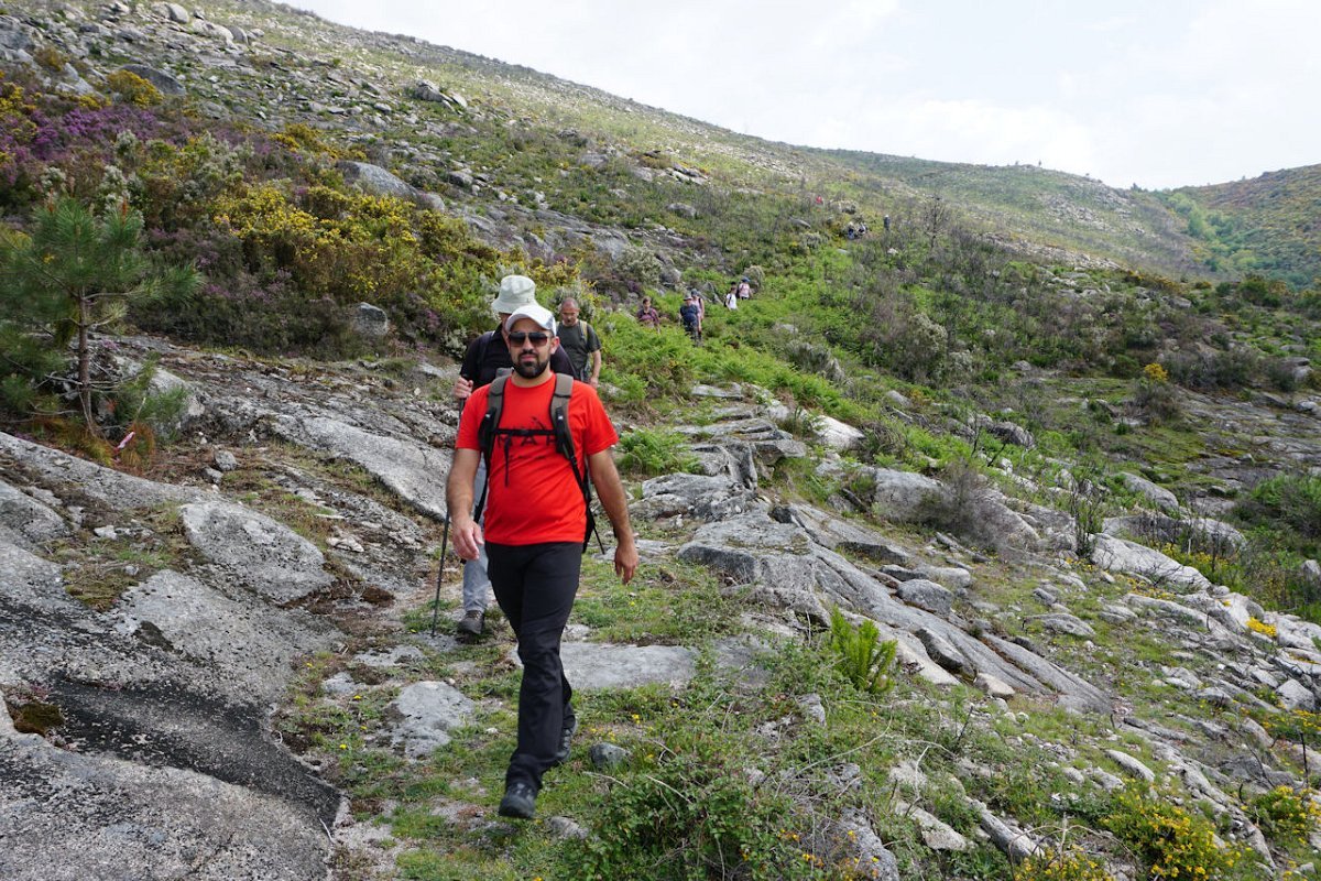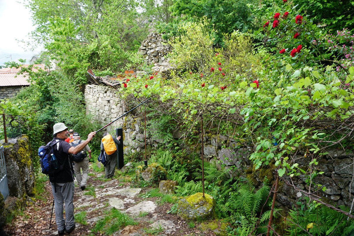 Após várias consultas ao mapa e GPS chegamos à conclusão que era mesmo o caminho previsto, pelo que “toca a subir” os penedos até atingir uma calçada que passava a nível superior, junto a um portão metálico perdido no meio do mato.