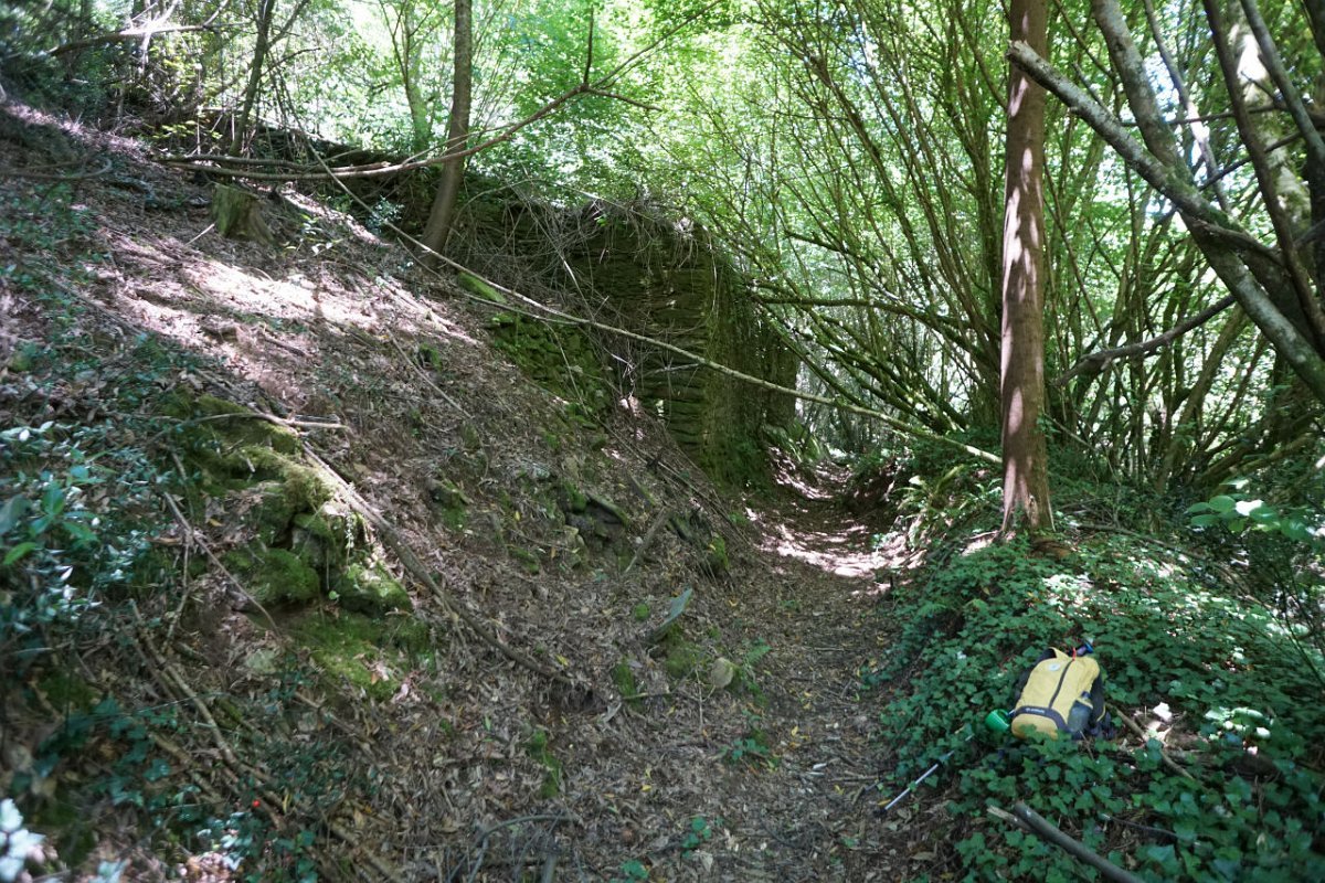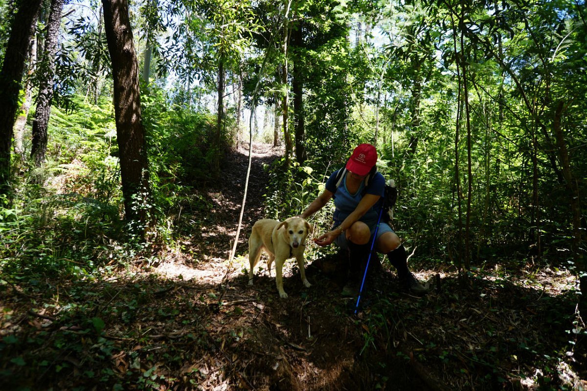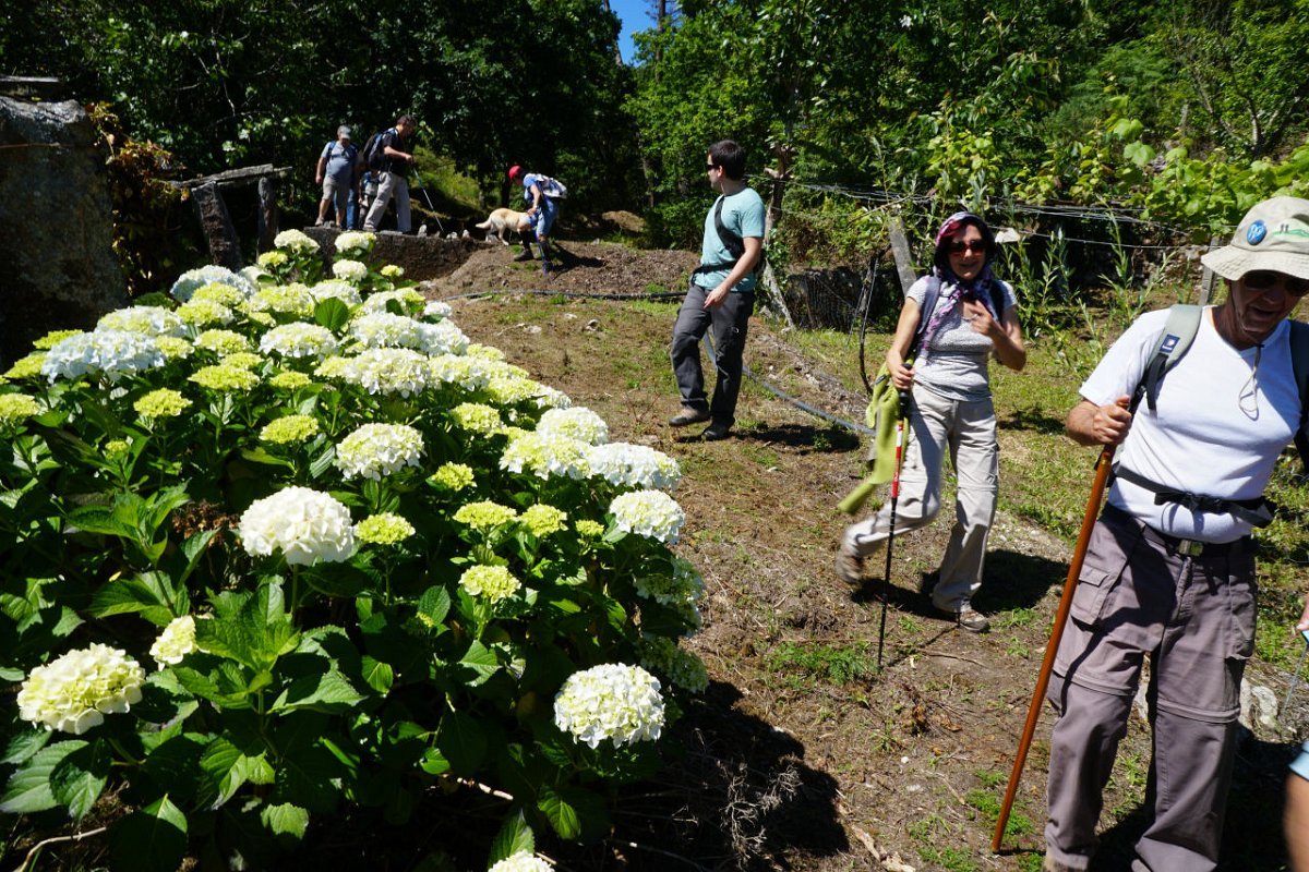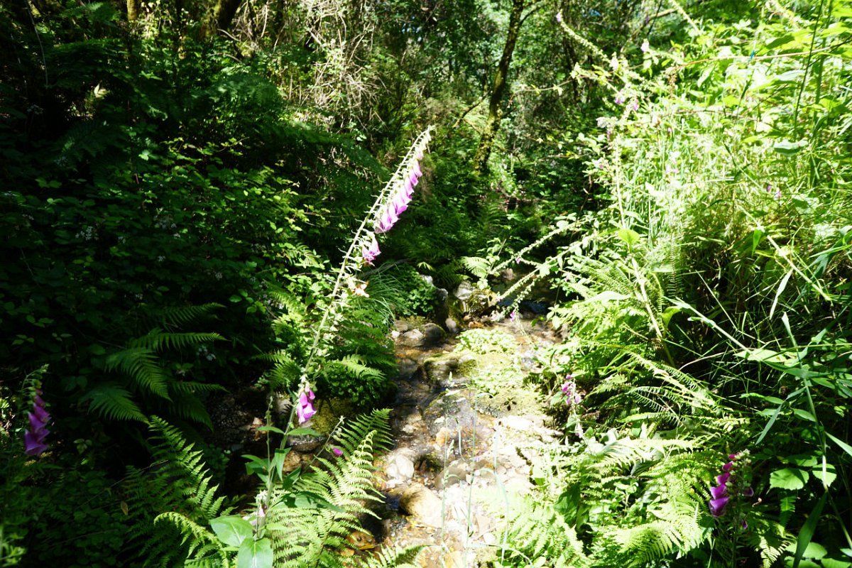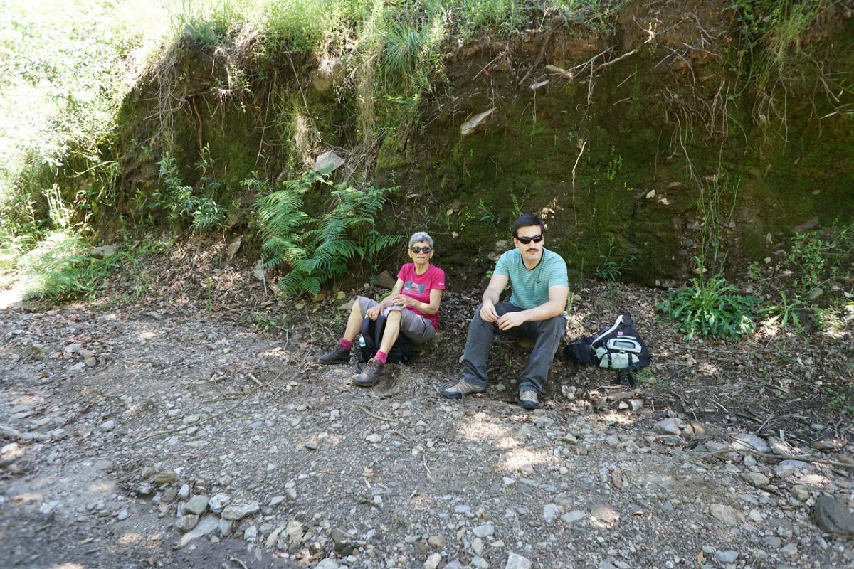 Depois de cruzar o lugar de Fontinhas atravessamos a mata de Lenteira e subimos o vale quase até ao cruzamento dos 7 caminhos, para cruzar a ribeira de Raibô. Aí fizemos uma pausa prolongada, pois a velhinha cadela da Manuela Rego, face ao muito calor e cansaço teve uma quebra e teve que ser transportada, primeiro ao colo e depois numa padiola improvisada, até às minas de volfrâmio de Azevedo.