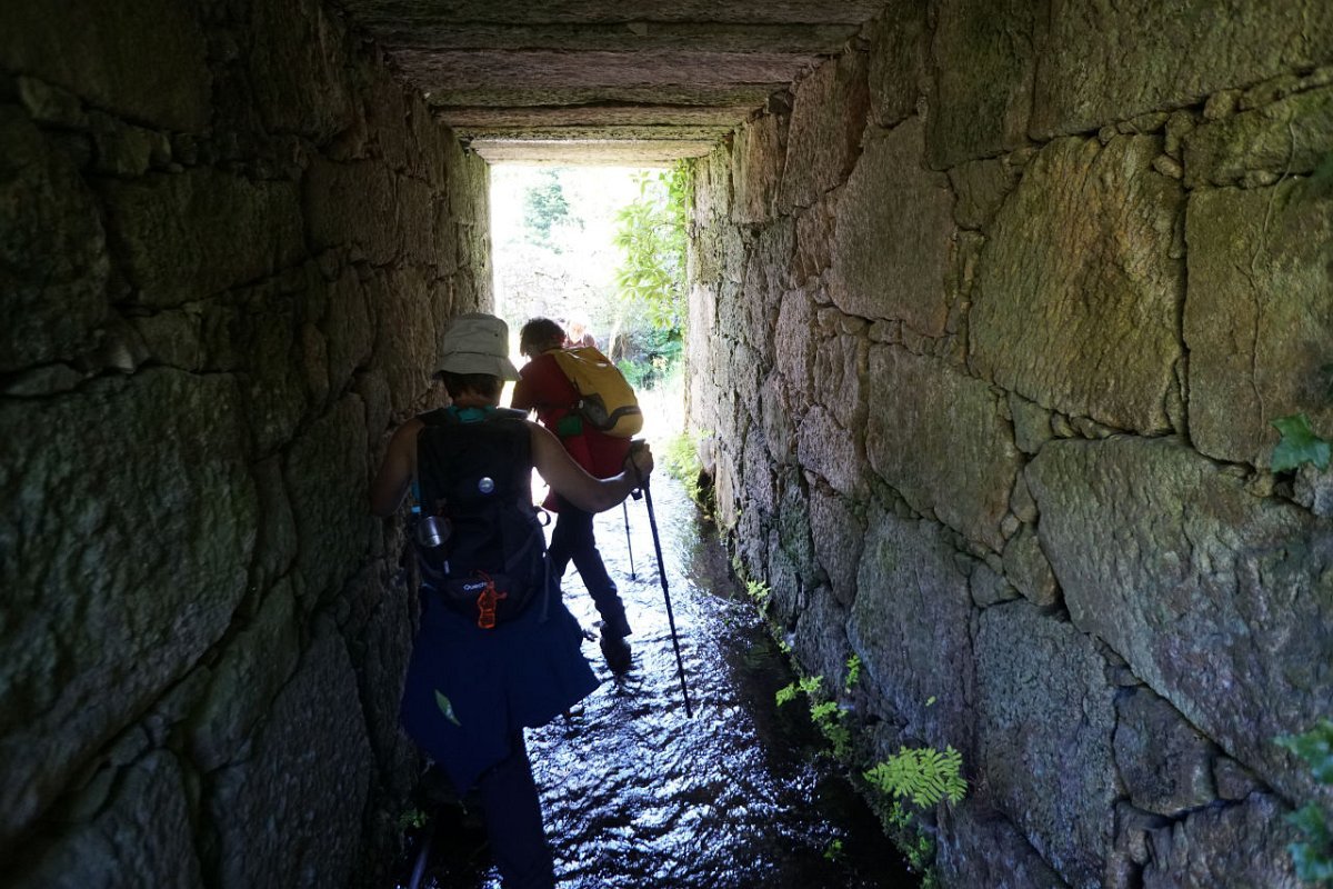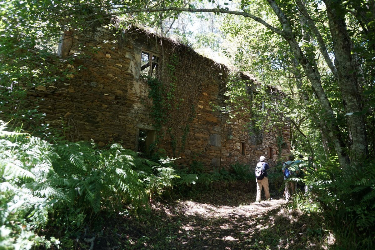 Chegados ao ponto mas alto do percurso, iniciamos a descida acompanhando um minúsculo veio de água que foi aos poucos engrossando, e que outrora serviu de força motriz a pelo menos dois moinhos de Azevedo, hoje completamente tomados pelo denso matagal.