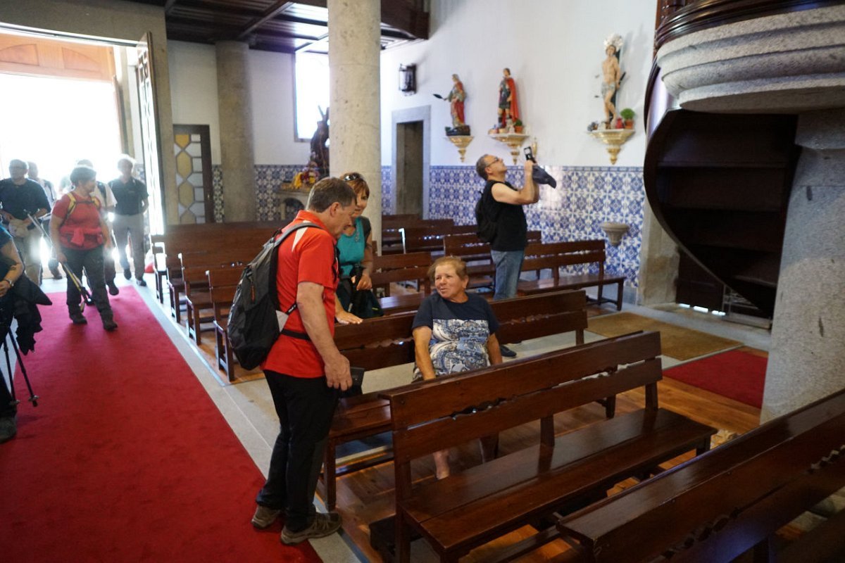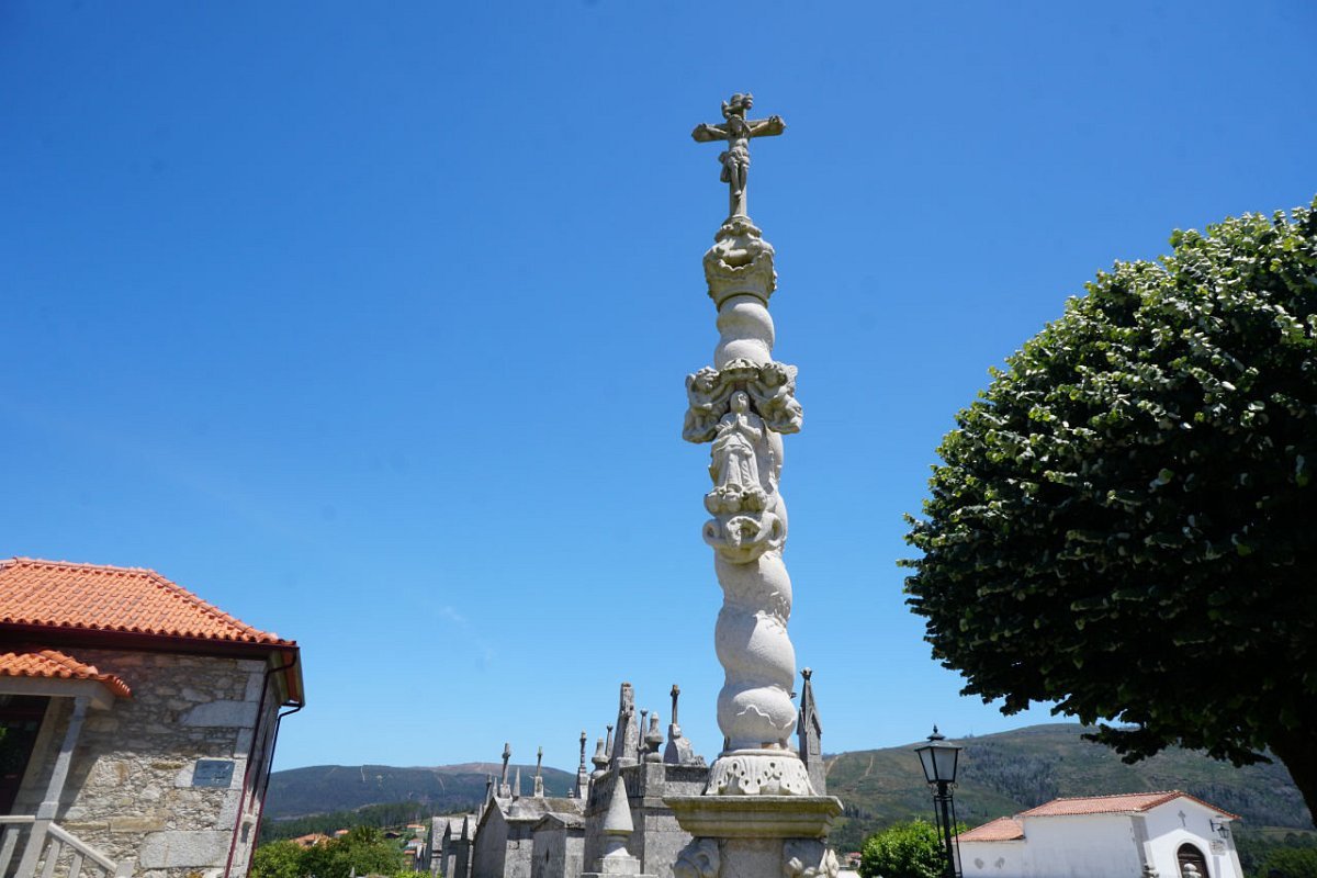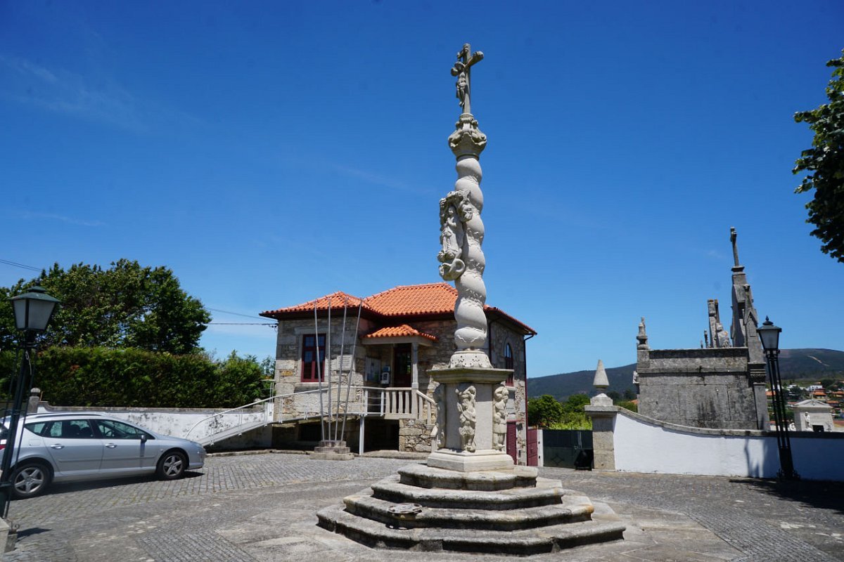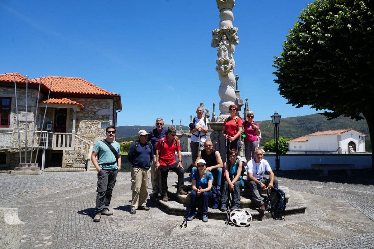 Chegados ao centro de Venade, fizemos uma longa pausa no Largo António Joaquim Alves da Cruz, onde pudemos visitar a igreja paroquial de Santa Eulália, padroeira da aldeia, tendo a foto do desfalcado grupo lugar no belíssimo Cruzeiro de Venade, um dos belos e mais interessantes exemplares do período barroco.