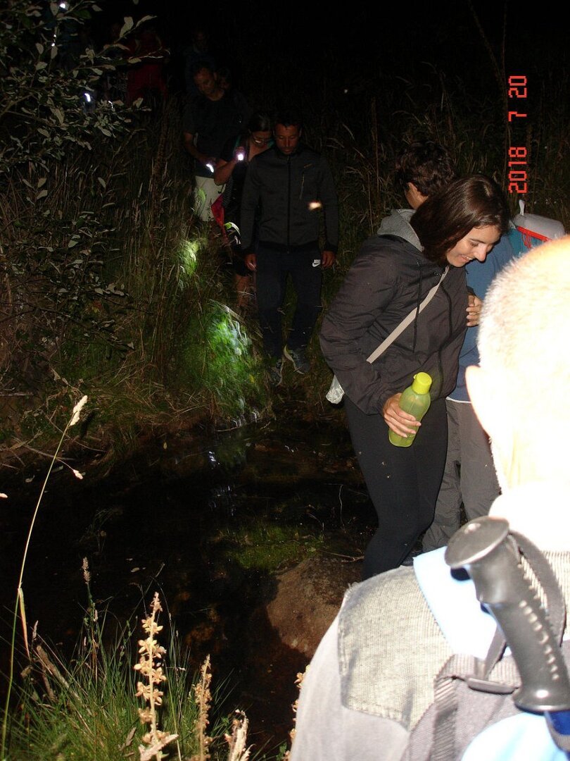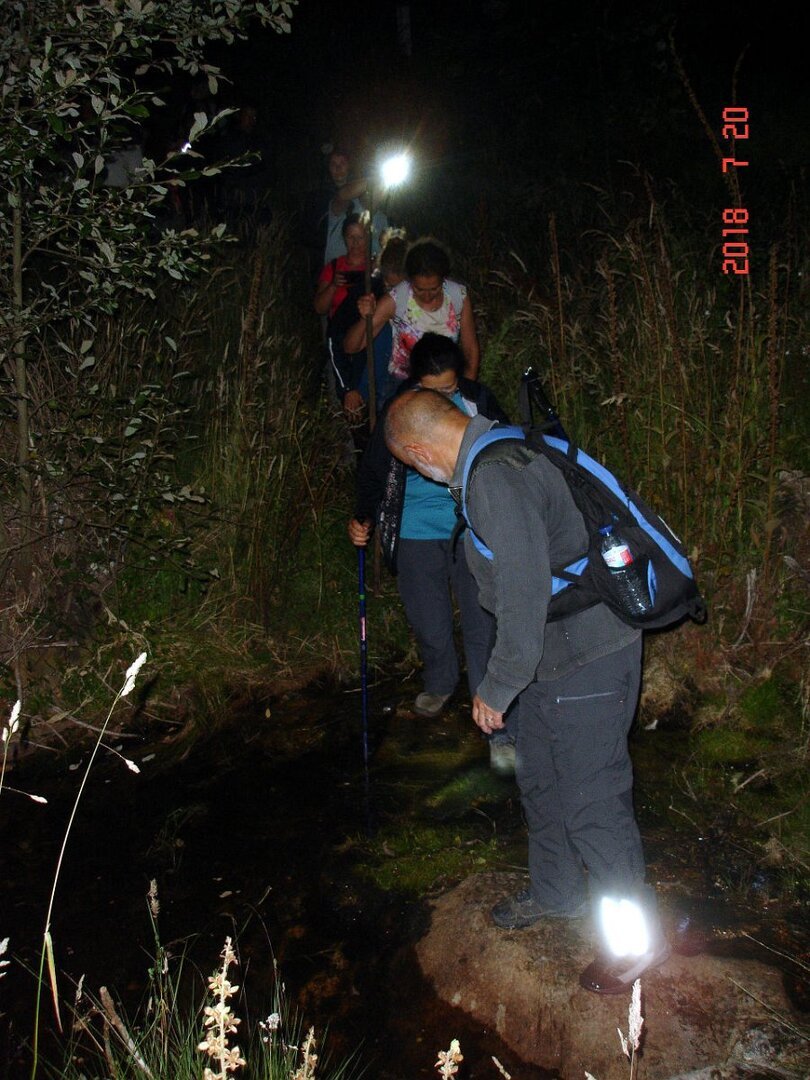A partir daqui o percurso tornou-se mais estreito bordejando pequenas levadas de condutas de água, cruzando os Moinhos de Pedrulhos, só possível com a luz das lanternas pois que a noite se apresentava escura nada deixando ver.