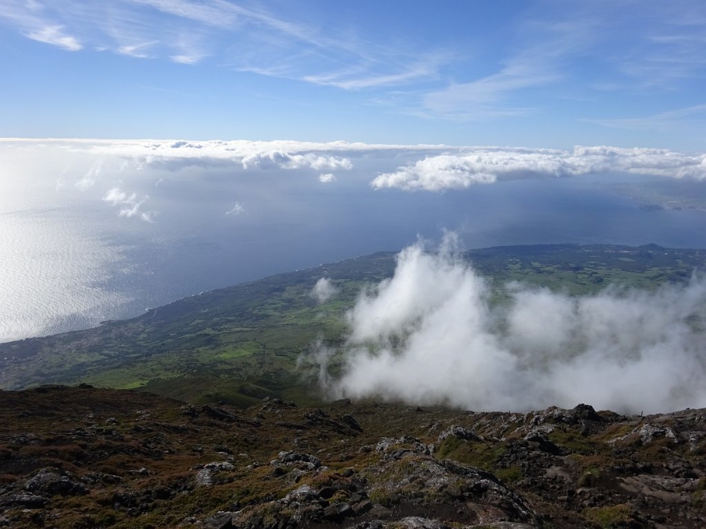 Continuamos por Flamengos, até à grande cratera da Caldeira, com cerca de 400 metros de profundidade e 1450 m de diâmetro, Reserva Natural. Bem perto fica o Cabeço Gordo ponto mais elevado de toda a ilha 1043m. Feita a visita ao local, continuamos através de uma antiga estrada turística, passamos por Cabouco do Velho, Ribeira Funda, Praia Norte, Porto do Faial local em que na Baía da Ribeira das Cabras junto ao mar se molharam os pés, continuando até Norte Pequeno.