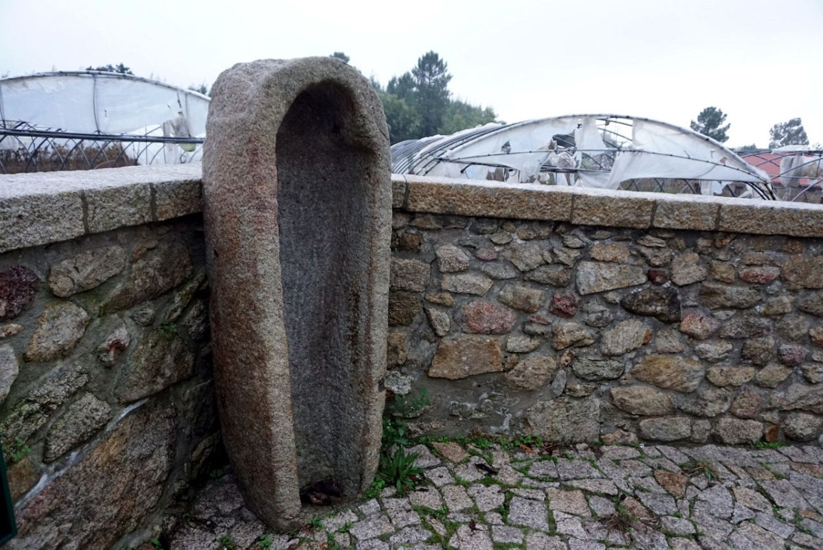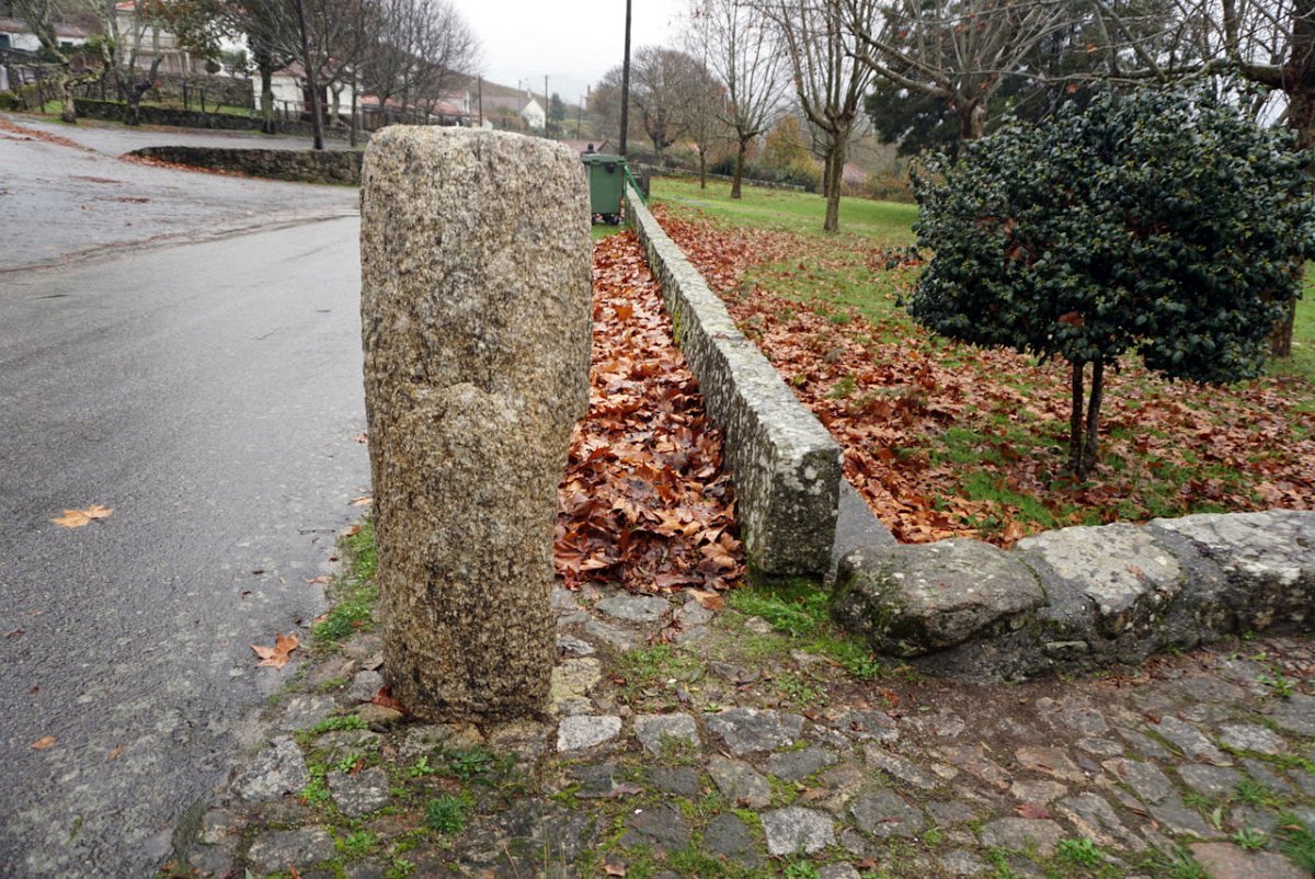 Mais abaixo, no lugar de Antas da freguesia de Rubiães pudemos observar um interessante conjunto de 5 marcos miliários, estando 3 deles bem á vista e os outros 2 a sustentar o travejamento da capela de S. Bartolomeu, fundada em 1592 por Lopo de Antas, família proprietária do imponente Solar das Antas, que teriam dado seu nome a este lugar.