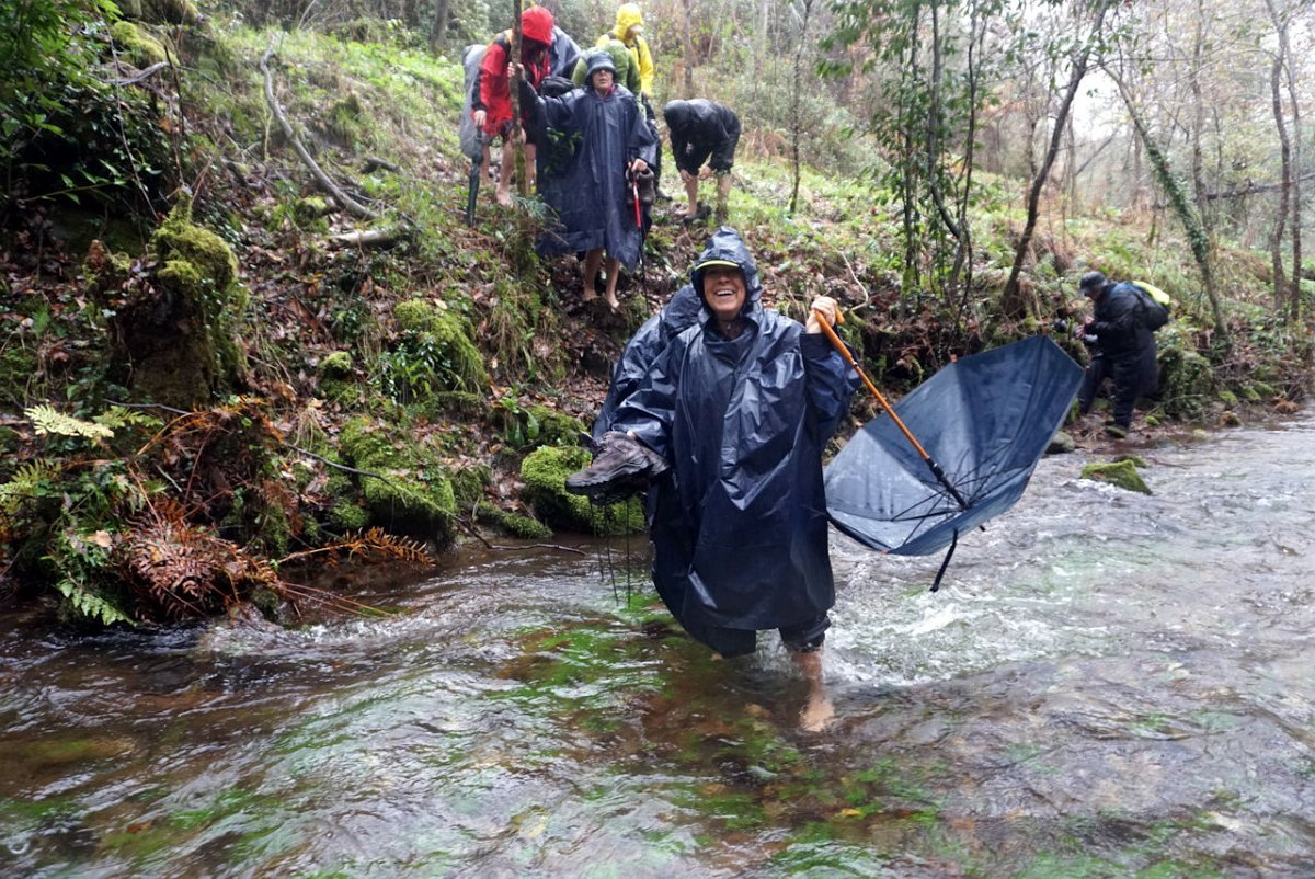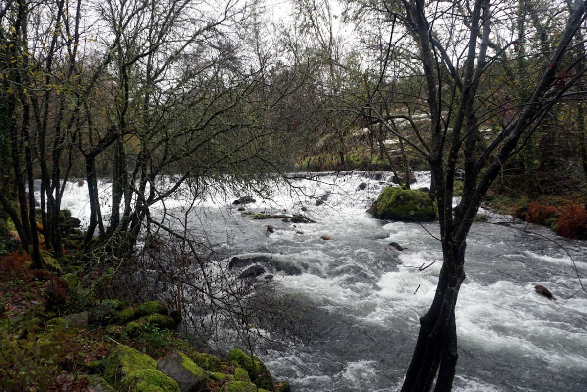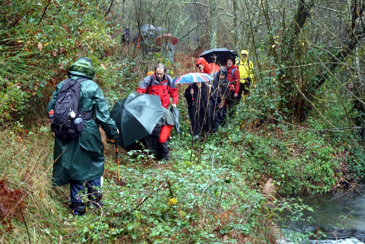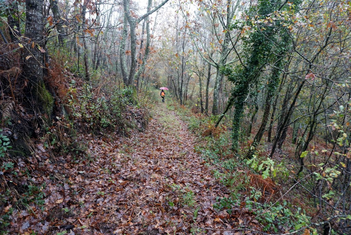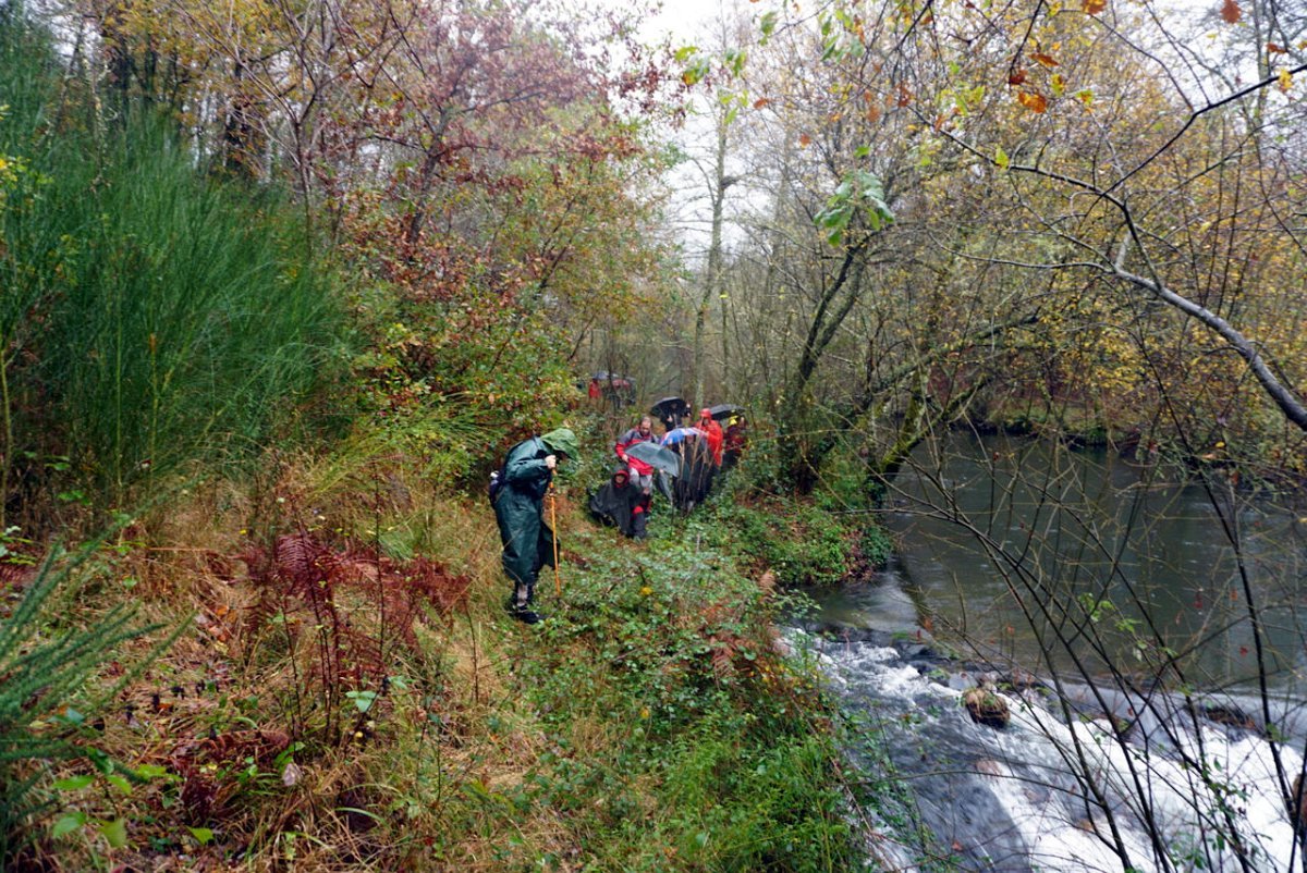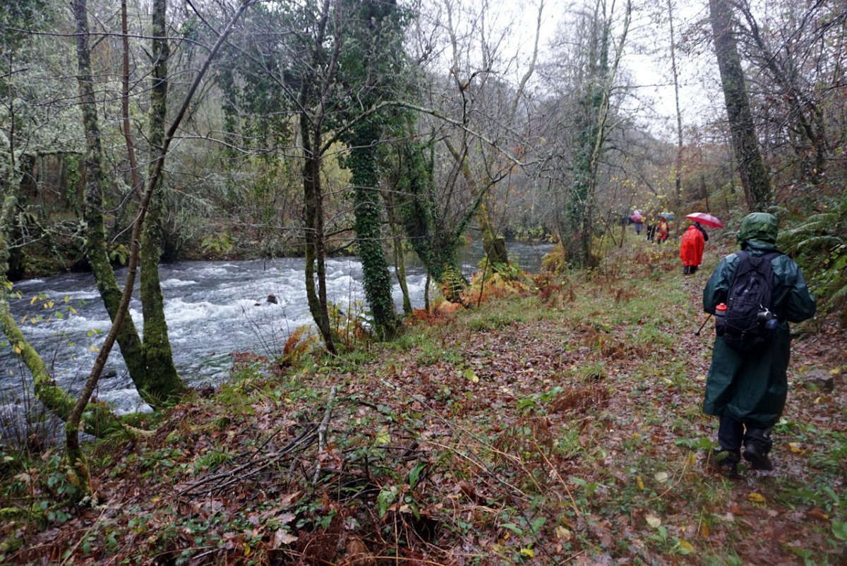 Depois de uma breve pausa no parque de merendas do carvalhal fronteiro, onde retemperamos forças abrigados da chuva que nunca nos largou, seguimos para sul na direção das margens do rio Coura, cruzando primeiro em campos de cultivo embrenhando-nos depois nos densos bosque ribeirinhos.