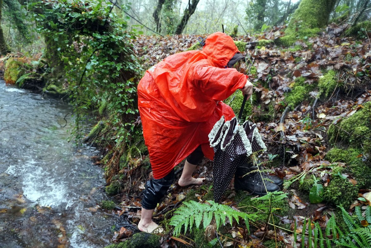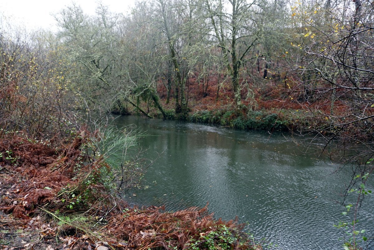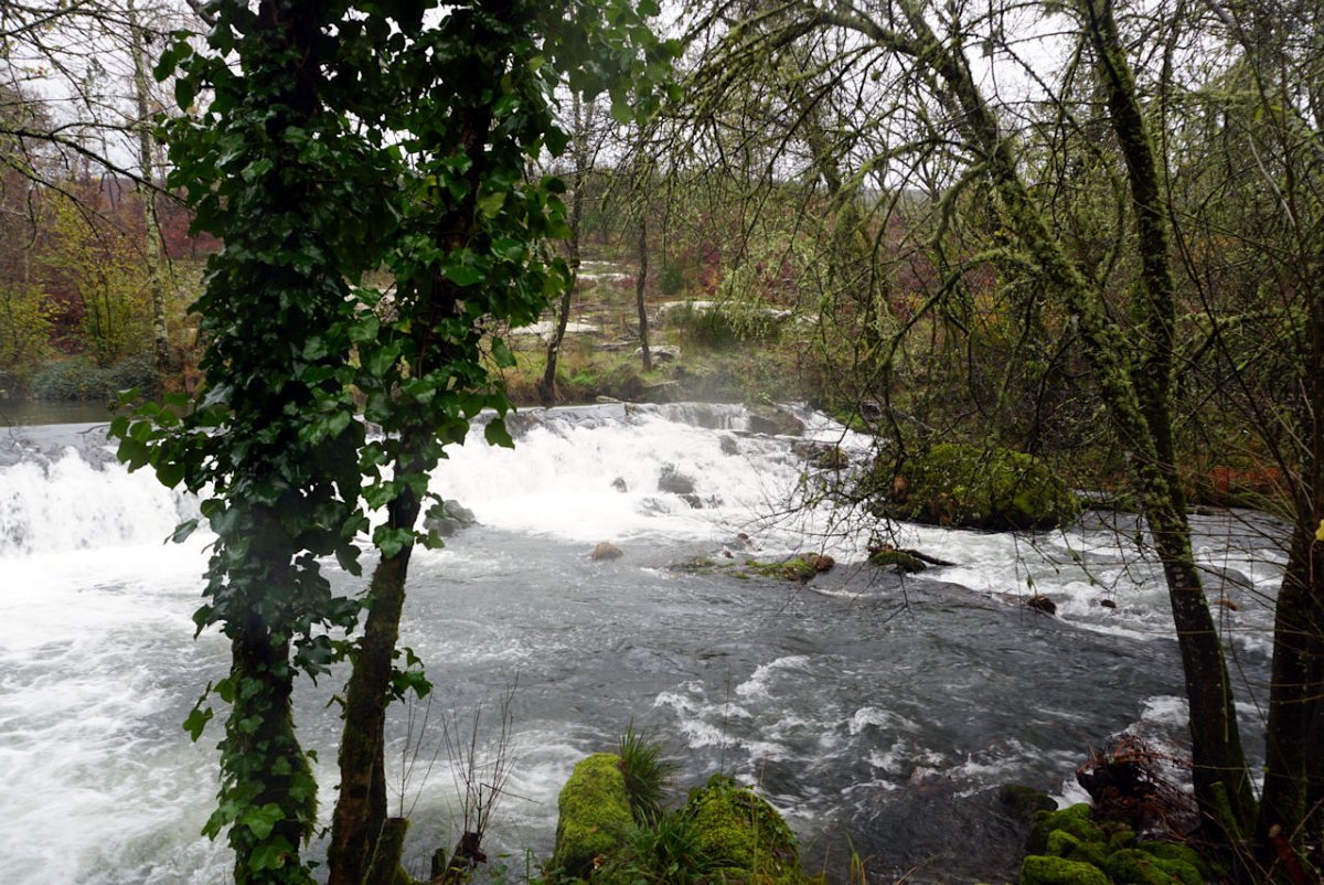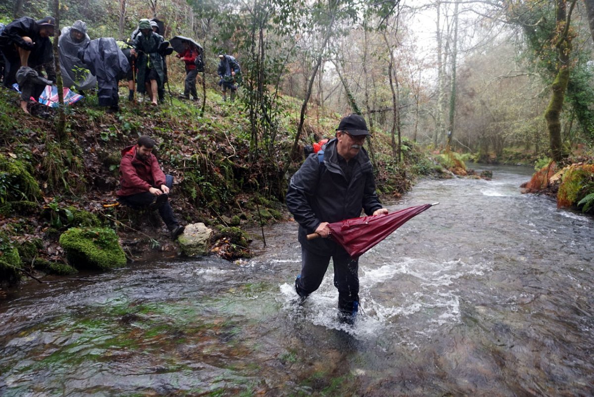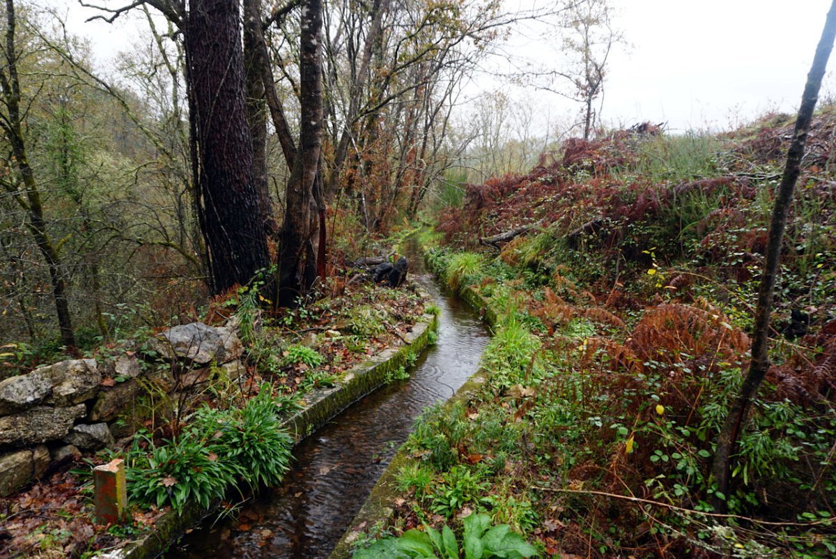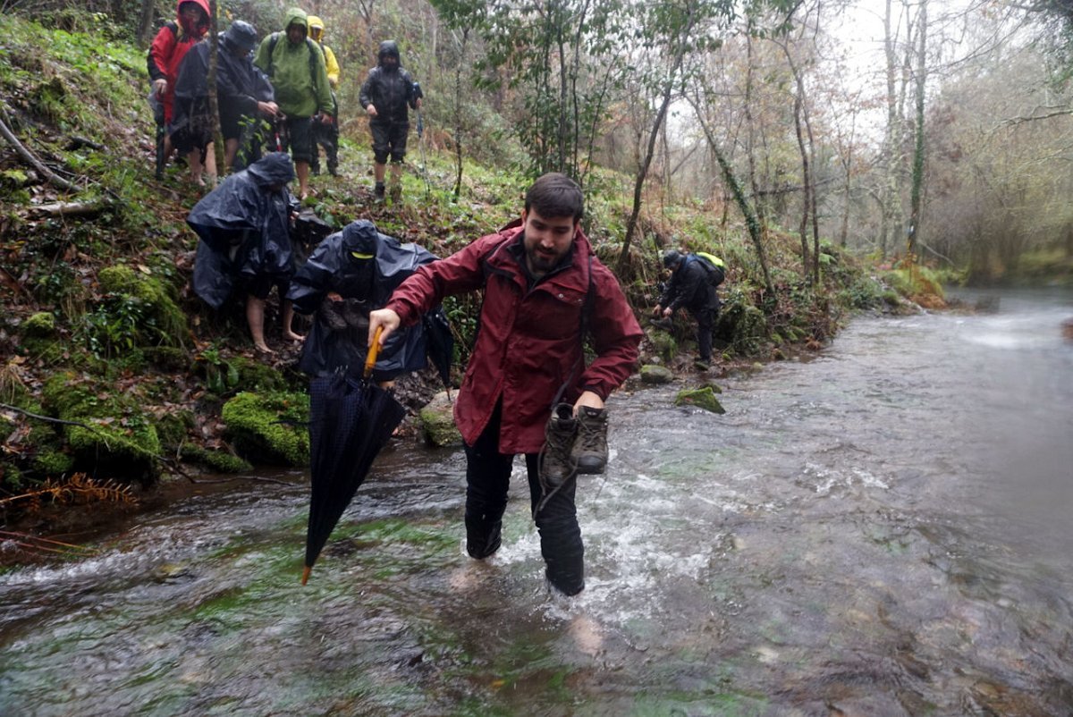 Depois de uma breve pausa no parque de merendas do carvalhal fronteiro, onde retemperamos forças abrigados da chuva que nunca nos largou, seguimos para sul na direção das margens do rio Coura, cruzando primeiro em campos de cultivo embrenhando-nos depois nos densos bosque ribeirinhos.