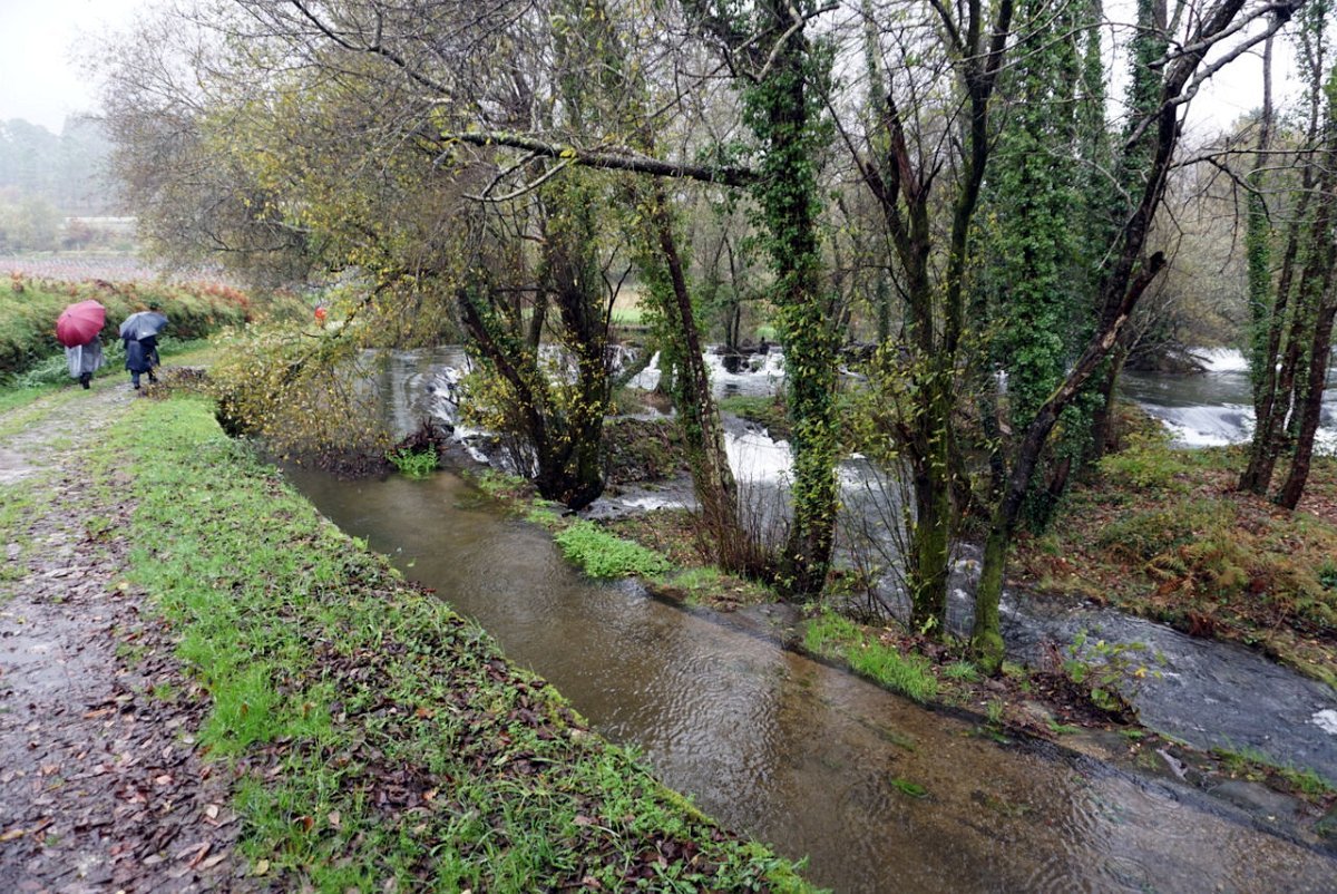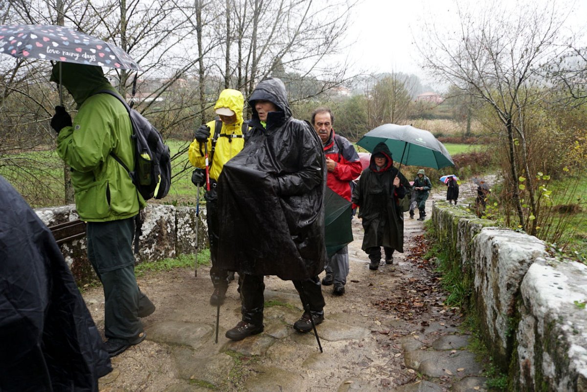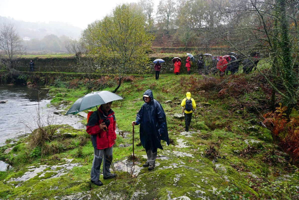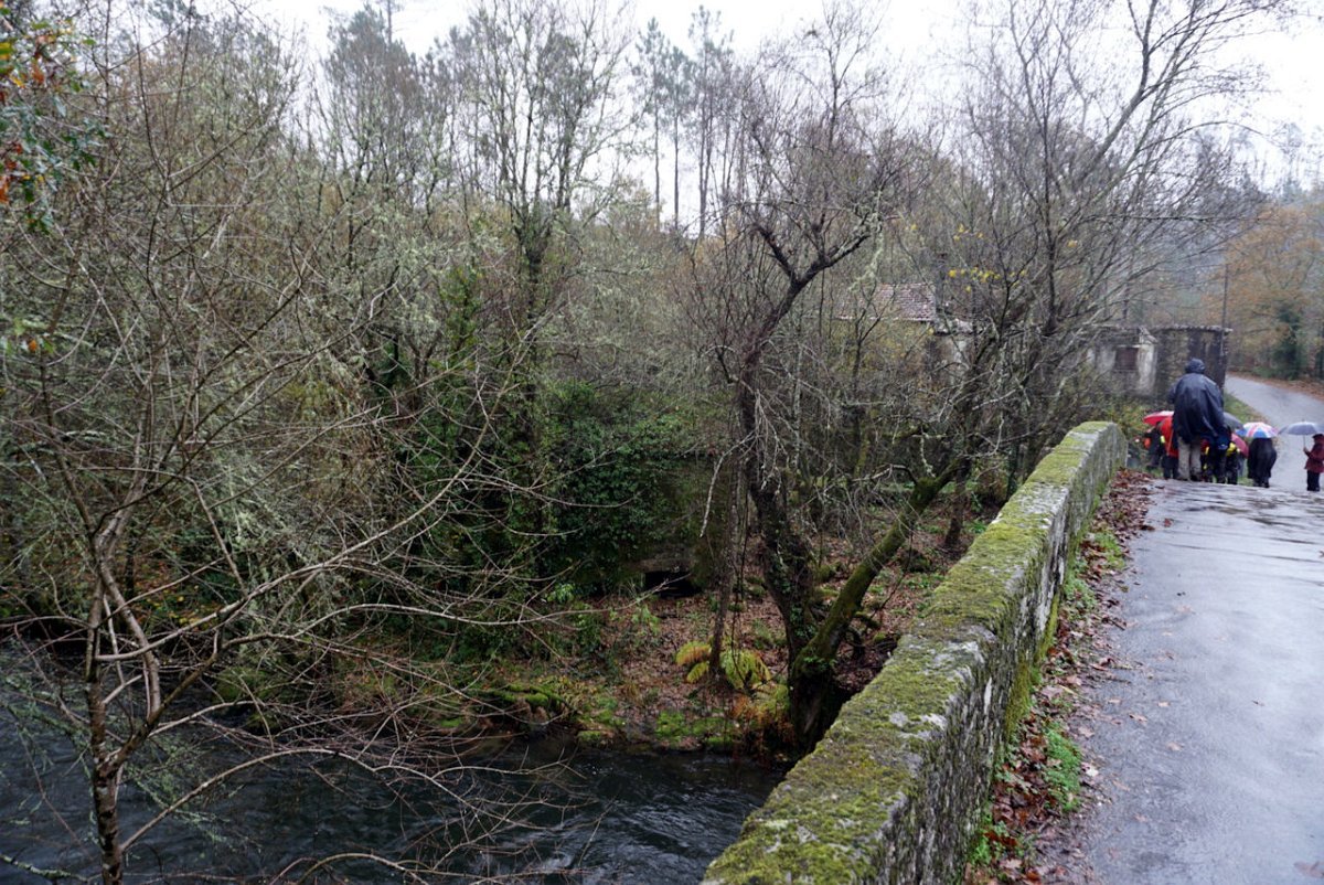 Entretanto a chuva ia engrossando, pelo que havia que encurtar o percurso, evitando o desvio de ida e volta à igreja, optando por seguir em frente para o lugar de Castro, onde cruzamos de novo o rio Coura para a sua margem direita na ponte velha romana de Rubiães.