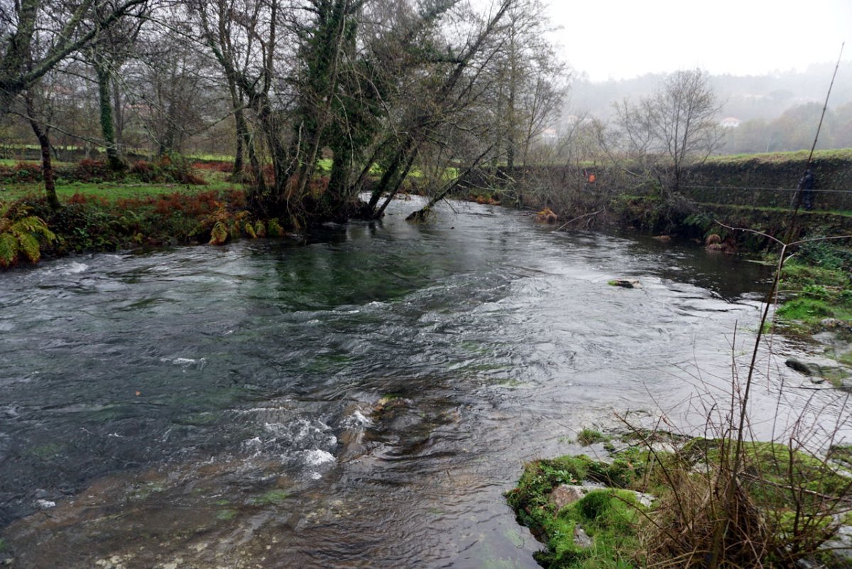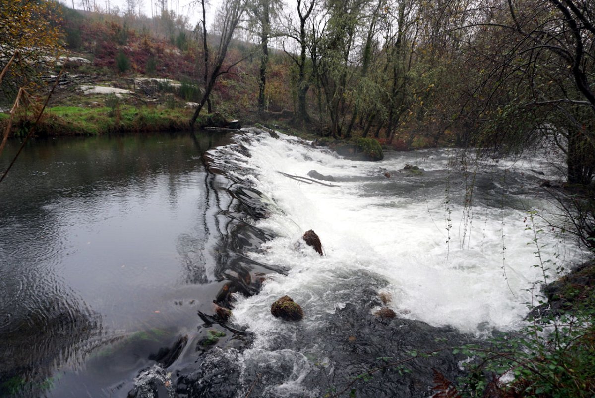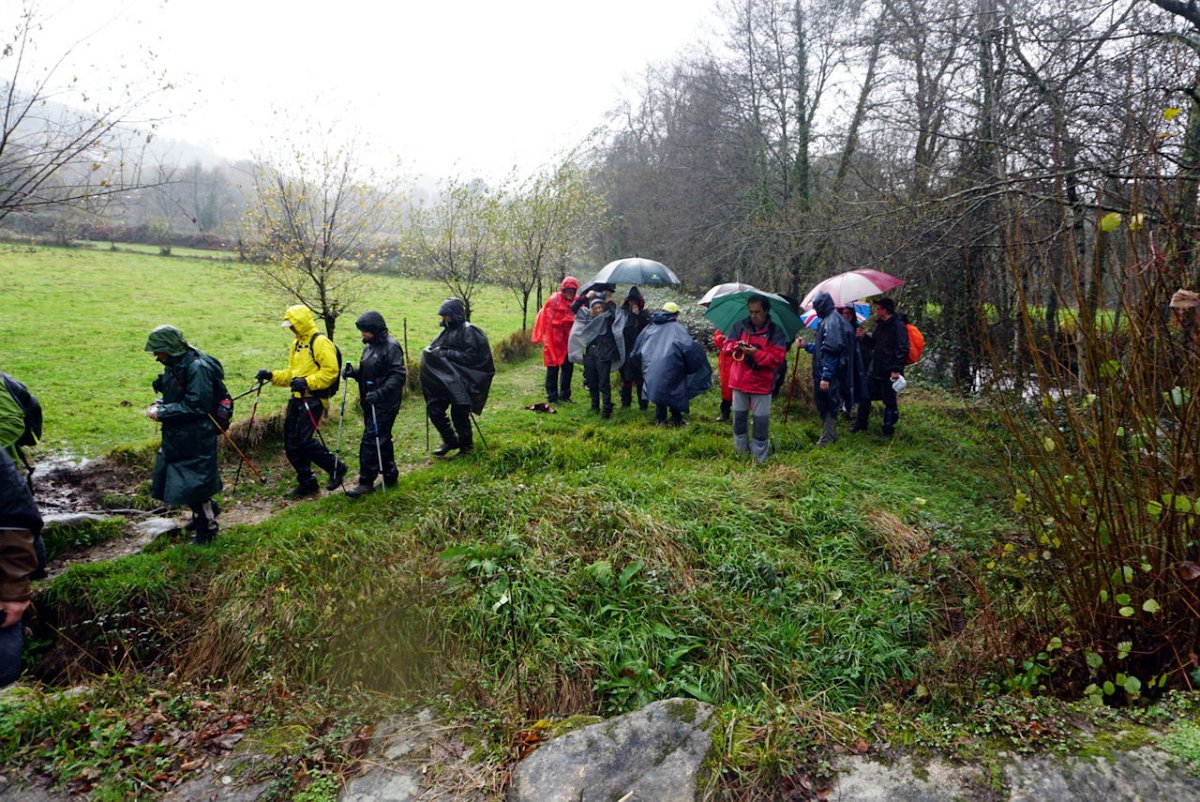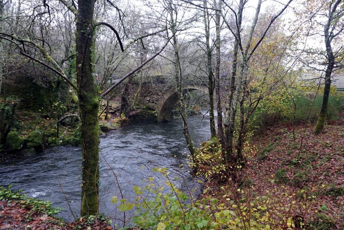 Entretanto a chuva ia engrossando, pelo que havia que encurtar o percurso, evitando o desvio de ida e volta à igreja, optando por seguir em frente para o lugar de Castro, onde cruzamos de novo o rio Coura para a sua margem direita na ponte velha romana de Rubiães.