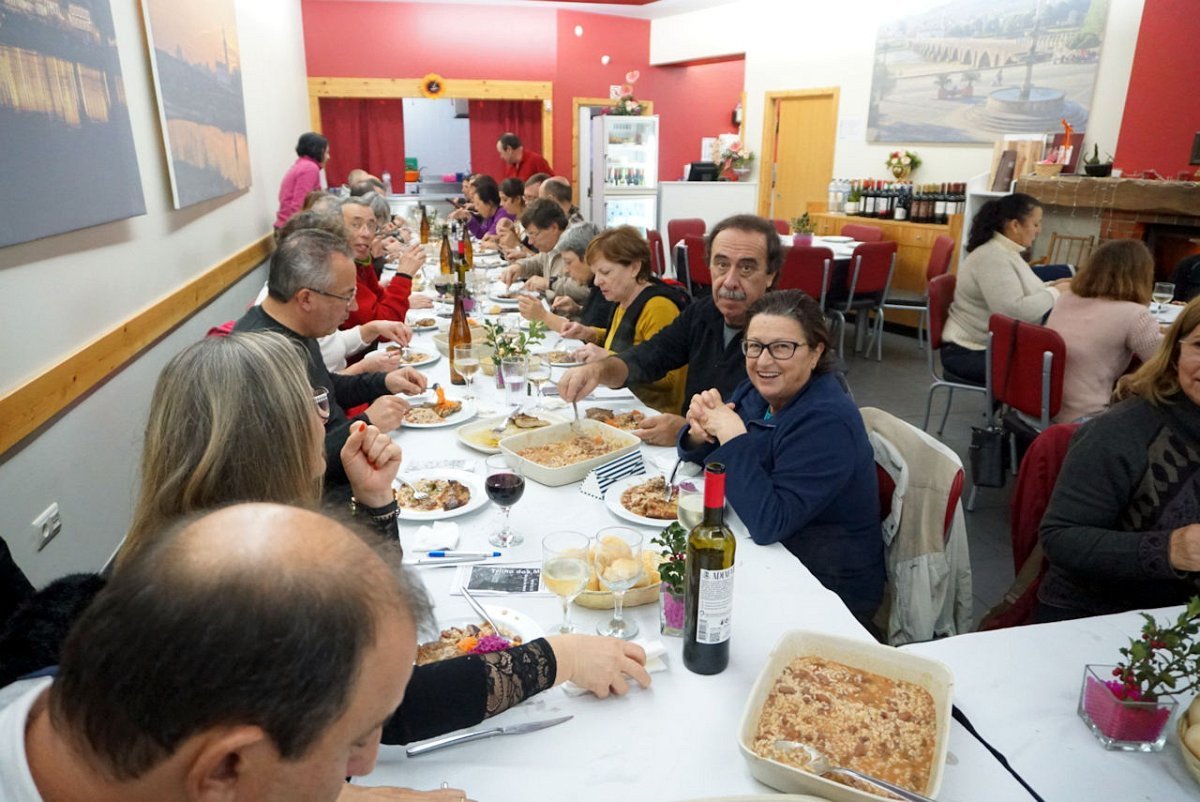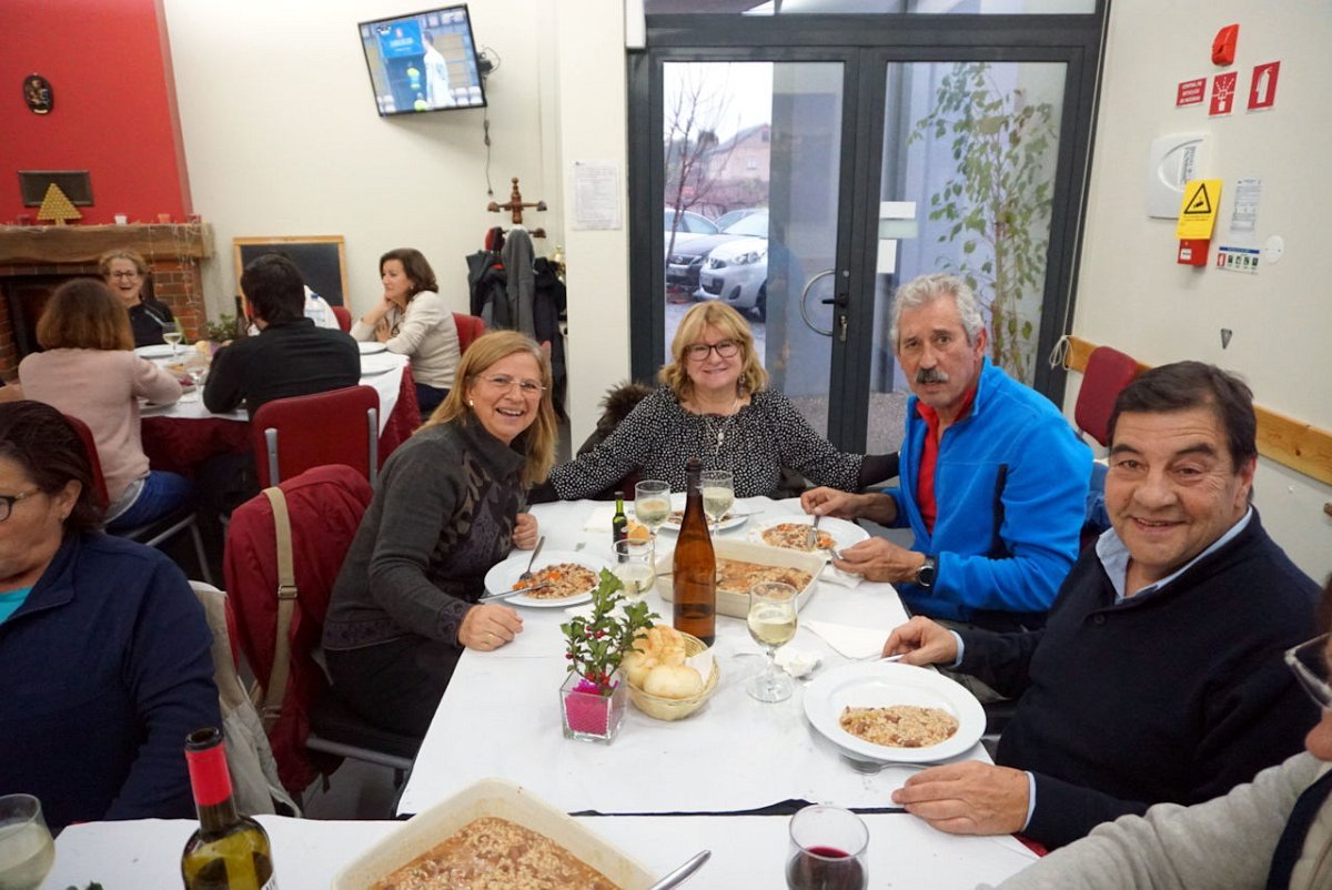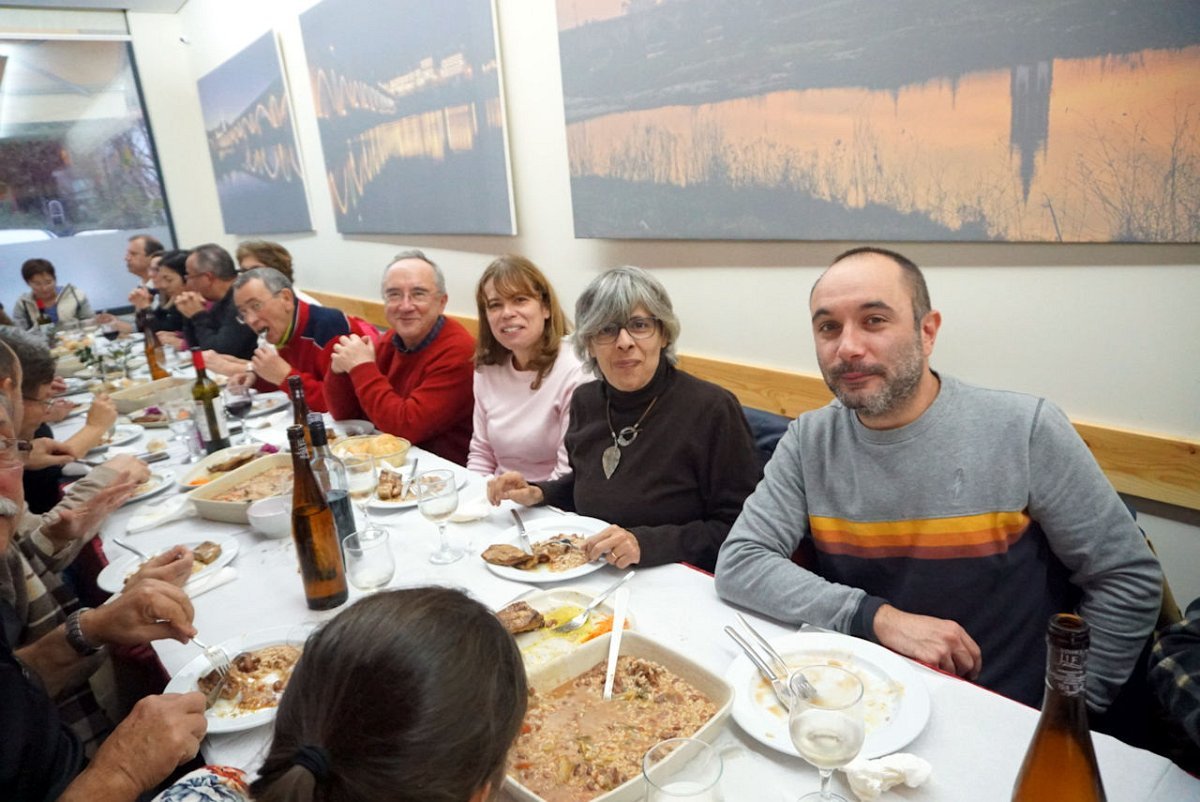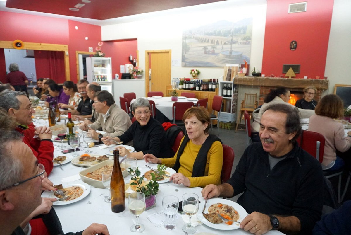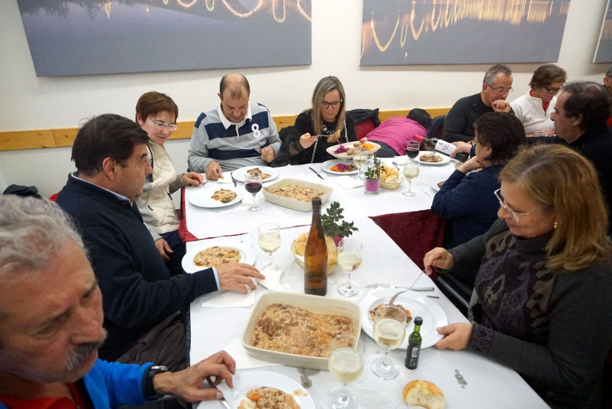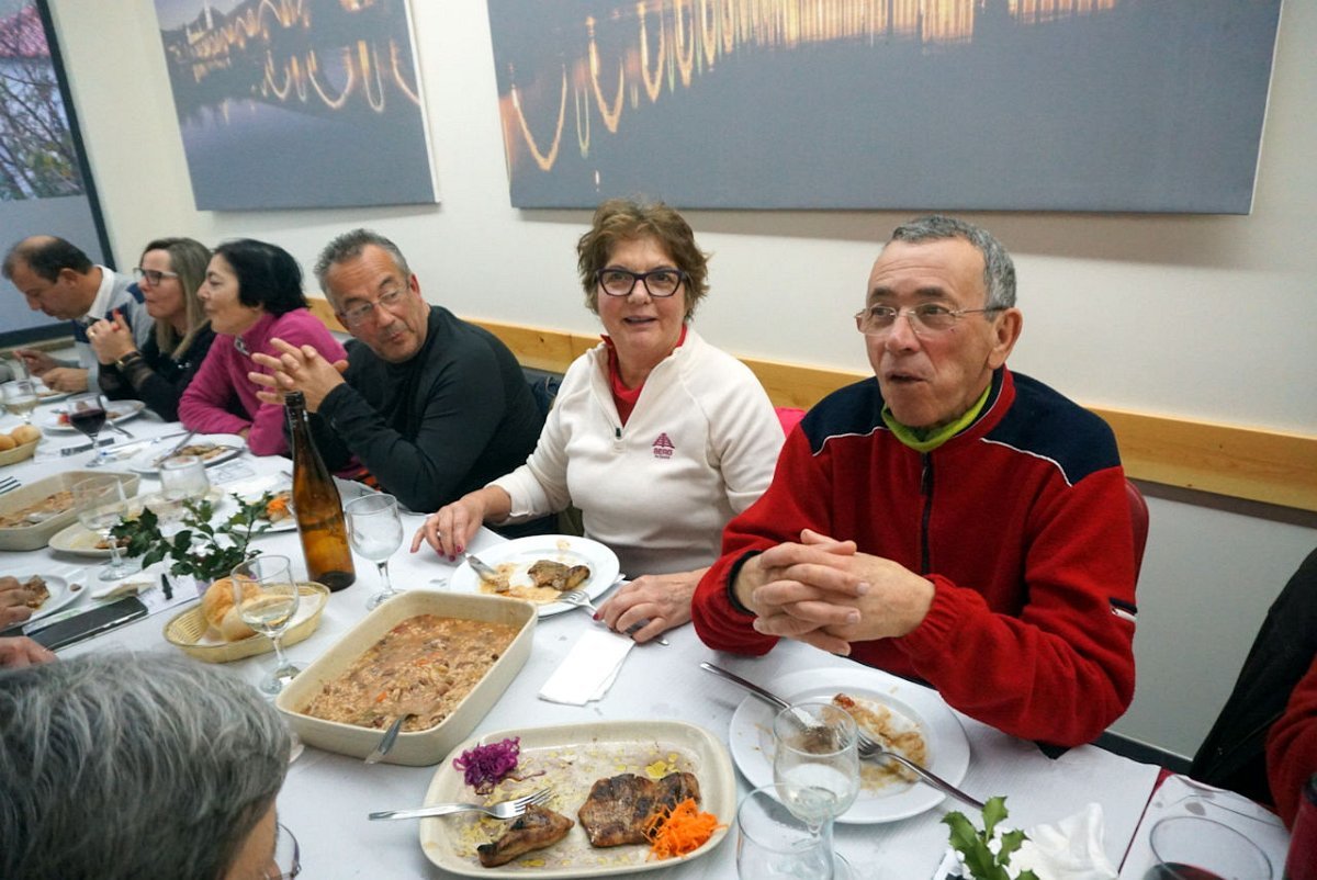Reunidos os confrades, foi em belo ambiente natalício que decorreu a degustação de um bacalhau de cebolada mais uns secretos de porco preto com arroz de feijão, seguida de doce e vinho à descrição.