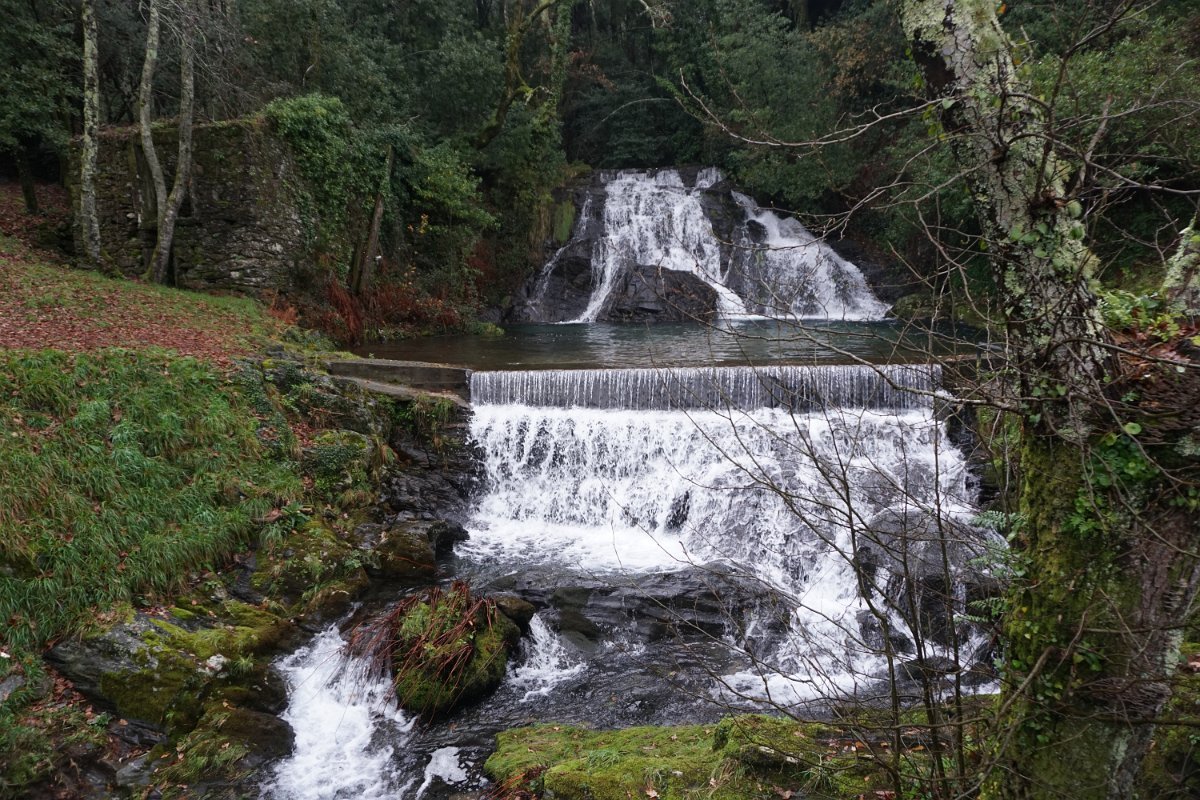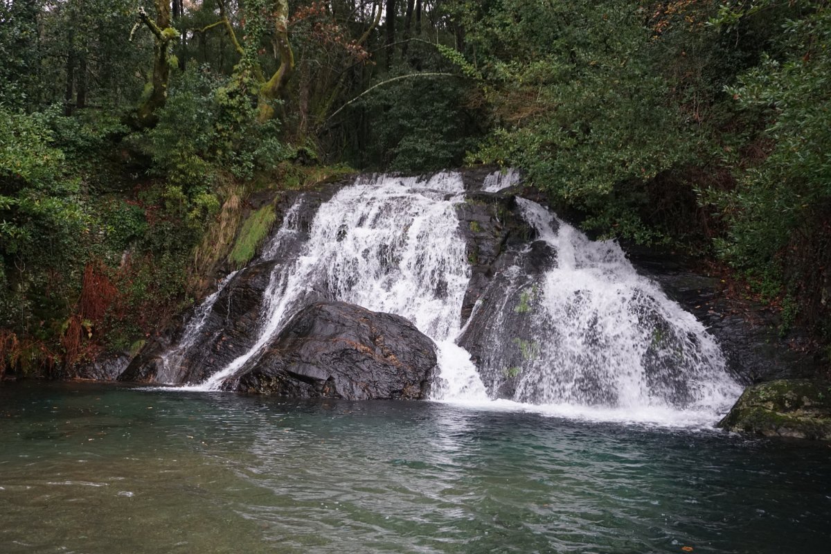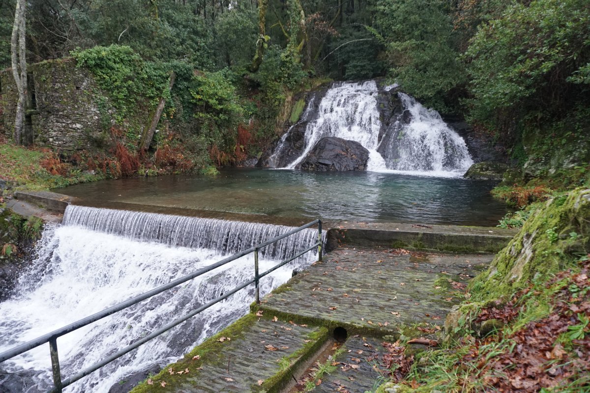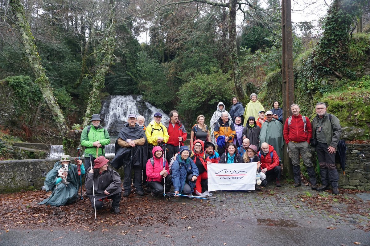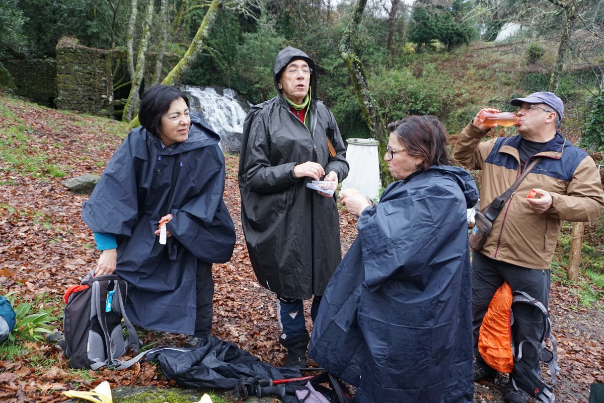 A foto de grupo teve como pano de fundo estas belas “Cascatas de Pereiro”, aproveitando-se a paragem para a pausa matinal de reabastecimento e para “bater umas chapas”, das impetuosas águas a precipitar-se encosta abaixo desde a Montaria até Vila Mou, onde finalmente engrossa as águas do rio Lima.