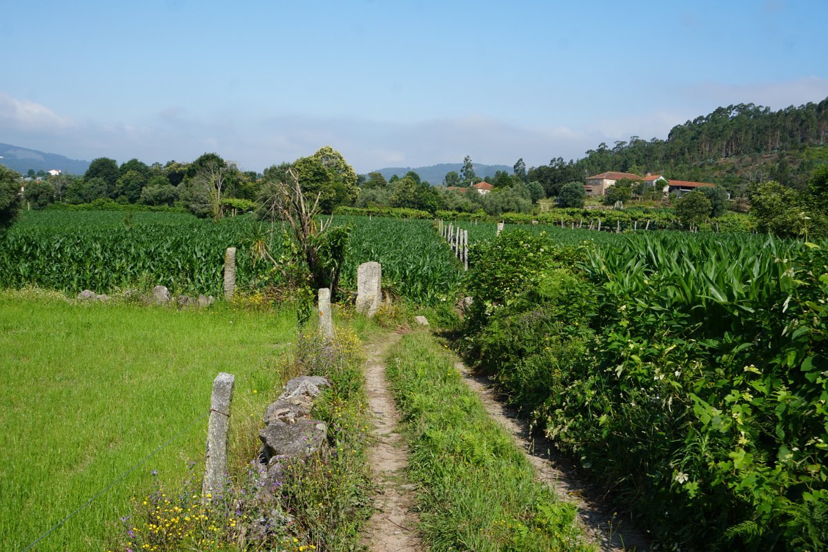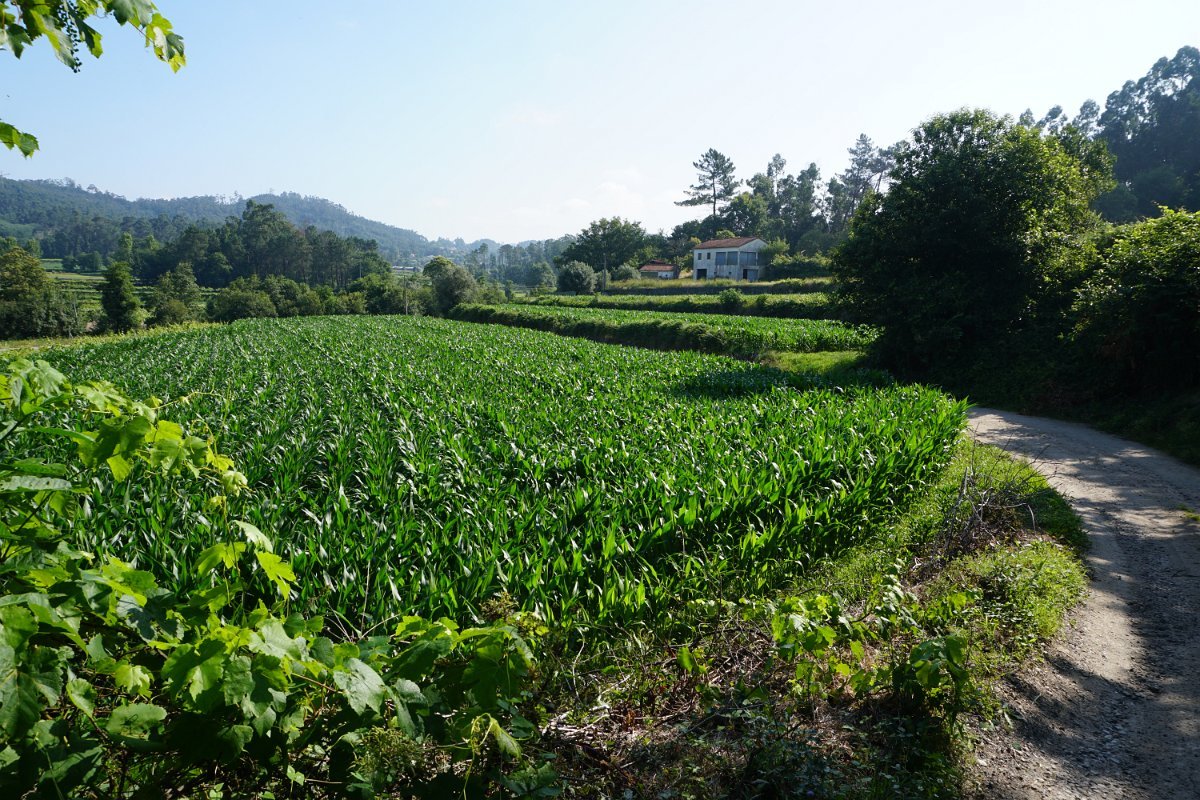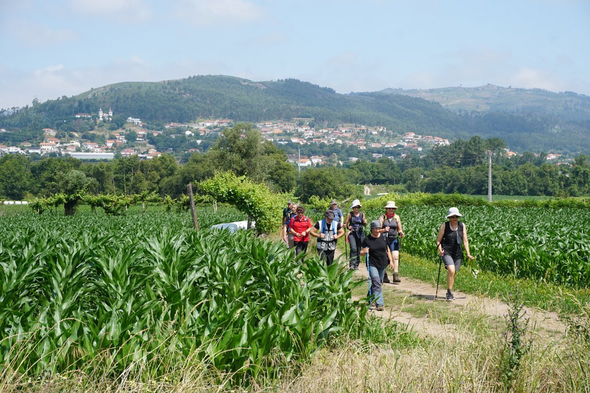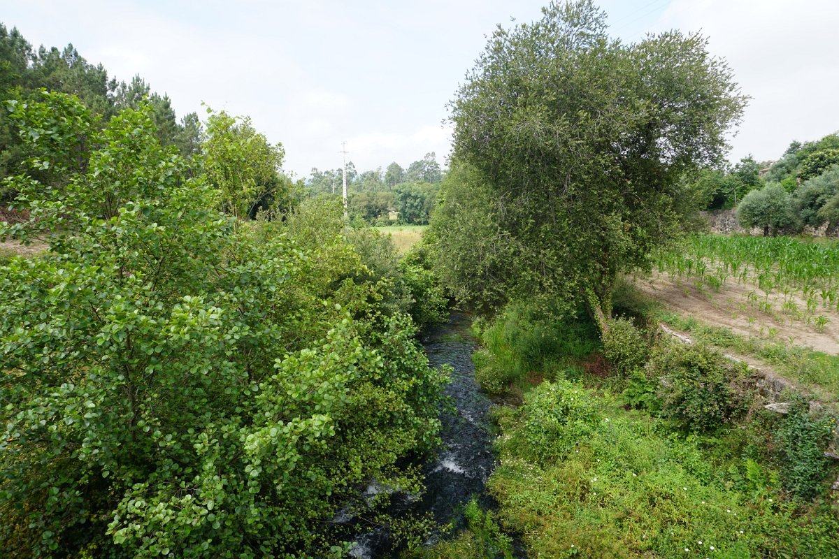 Após inesperada paragem para prolongada "conversa de pescadores", iniciamos a subida da margem direita do Neiva, bordejando os campos até à proximidade da ponte das Tábuas, tendo depois infletido a norte na direção de Balugães, rumo ao célebre Santuário da Srª da Aparecida.