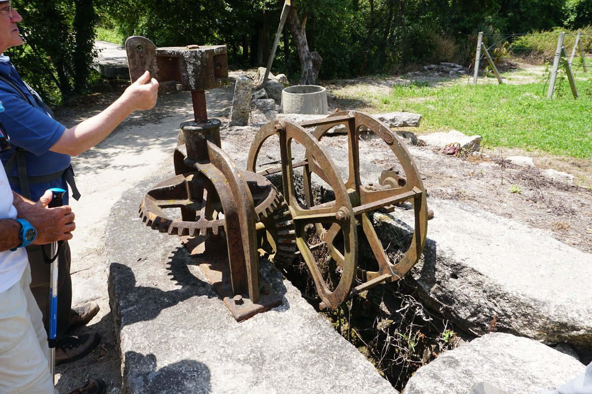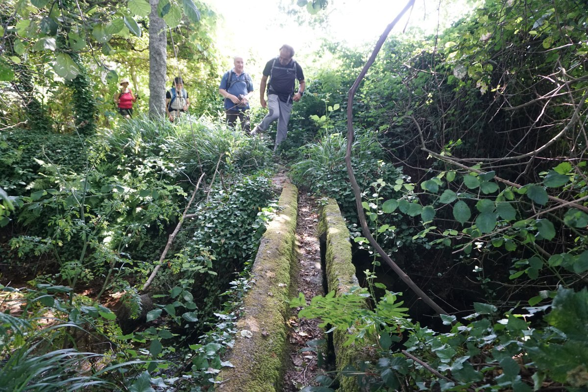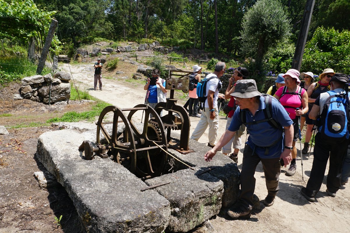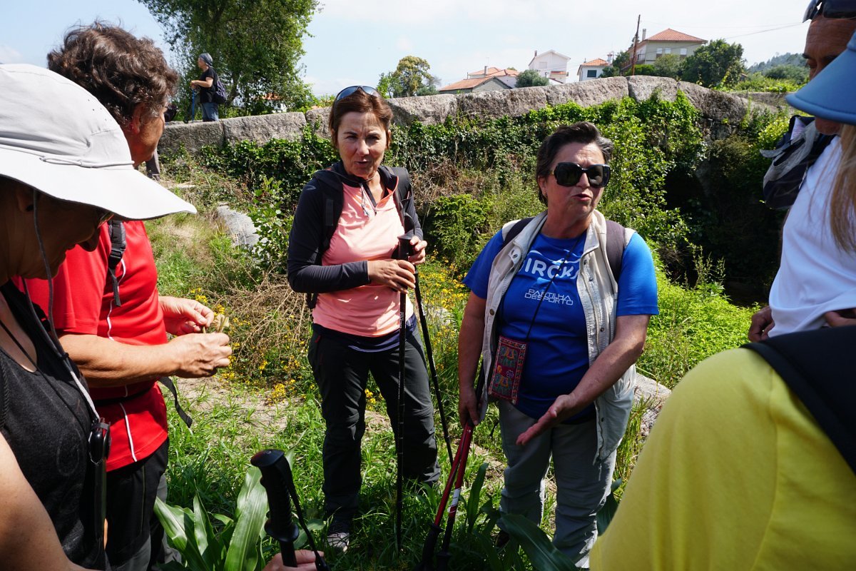Mais à frente descemos até ao interessante conjunto da ponte e moinho dos Morgados, onde fizemos a foto de grupo junto de um bem preservado “estanca rios”. Continuamos a descida do rio até à Azenha do Souto, onde visitamos o açude e vislumbramos o interior do engenho, com os maquinismos já muito deteriorados, a precisar de uma urgente intervenção.