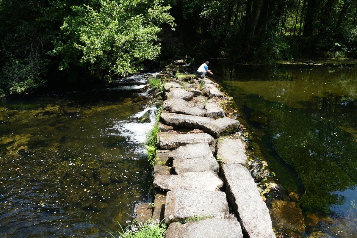 Daí descemos ao rio Neiva, atravessando a Ponte de Barreiros, seguindo na bordadura de extensos campos agrícolas até chegar ao lugar do Barreiro onde voltamos às margens do Neiva para apreciar o Lagar da Aveleira. Afastamo-nos de movo do rio, pois não há caminho nas suas margens, percorrerrendo umas centenas de metros pela estrada alcatroada, até retomar a margem junto do Engenho das Bouças. Após curta paragem cruzamos a Ponte das Bouças e seguimos por caminhos agrícolas até à capela de Nª Srª da Cadavosa, muito perto de um grupo de moinhos e engenhos abandonados.
