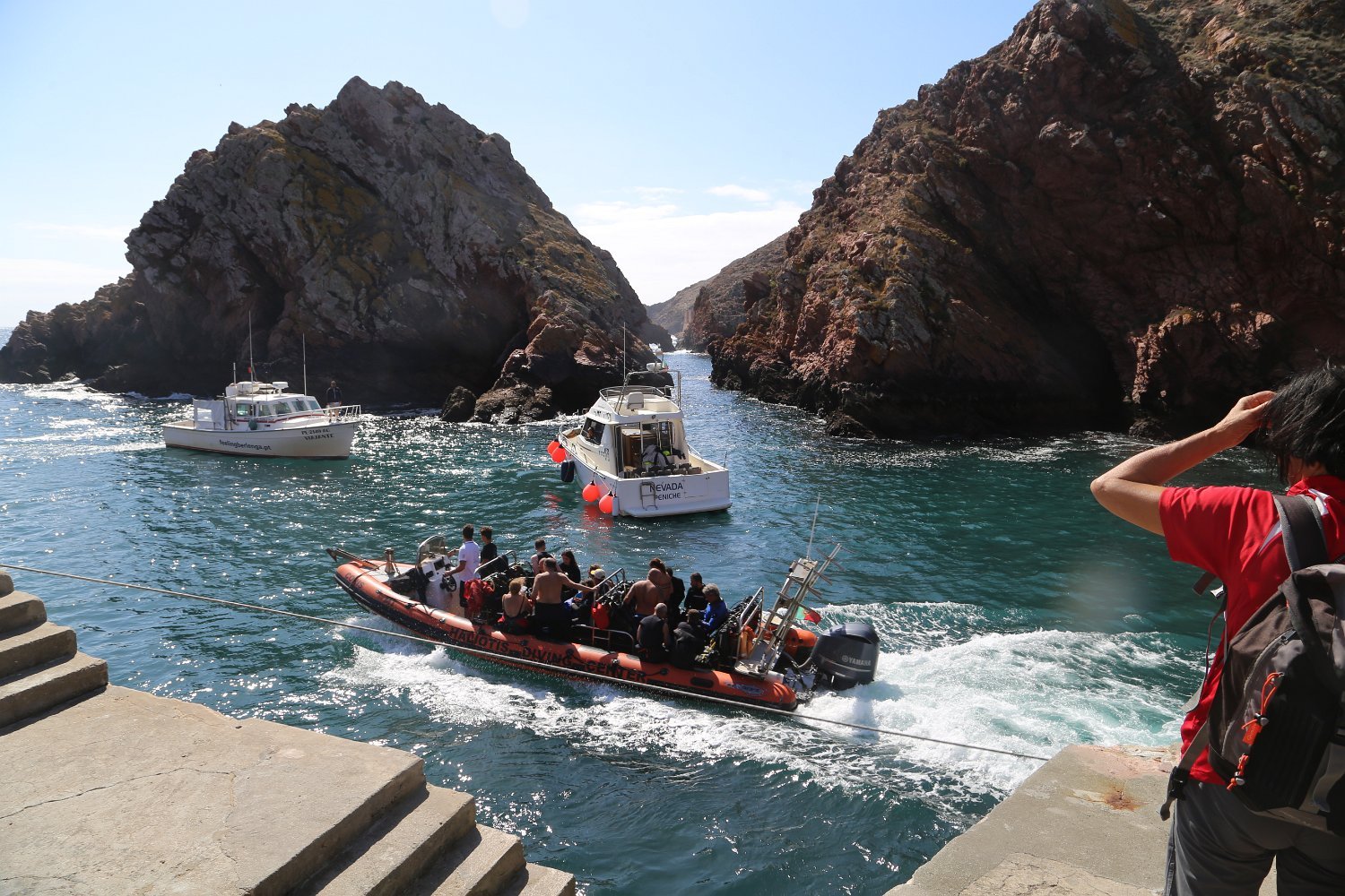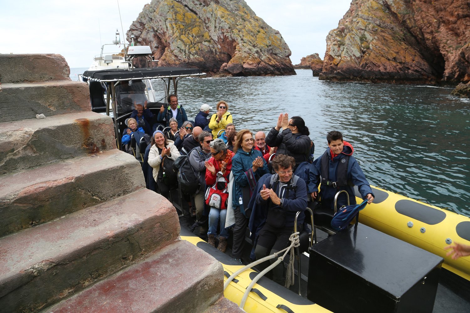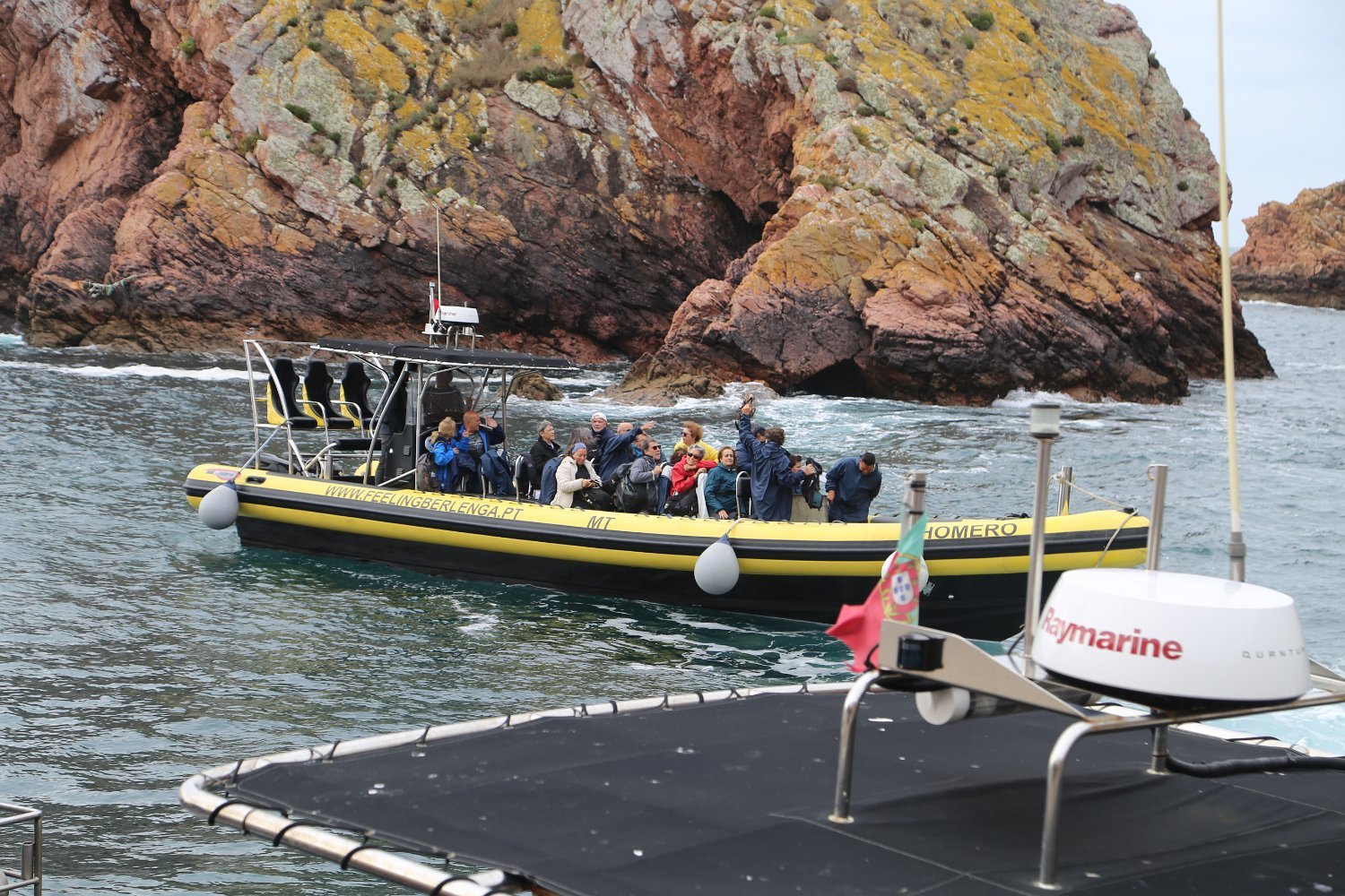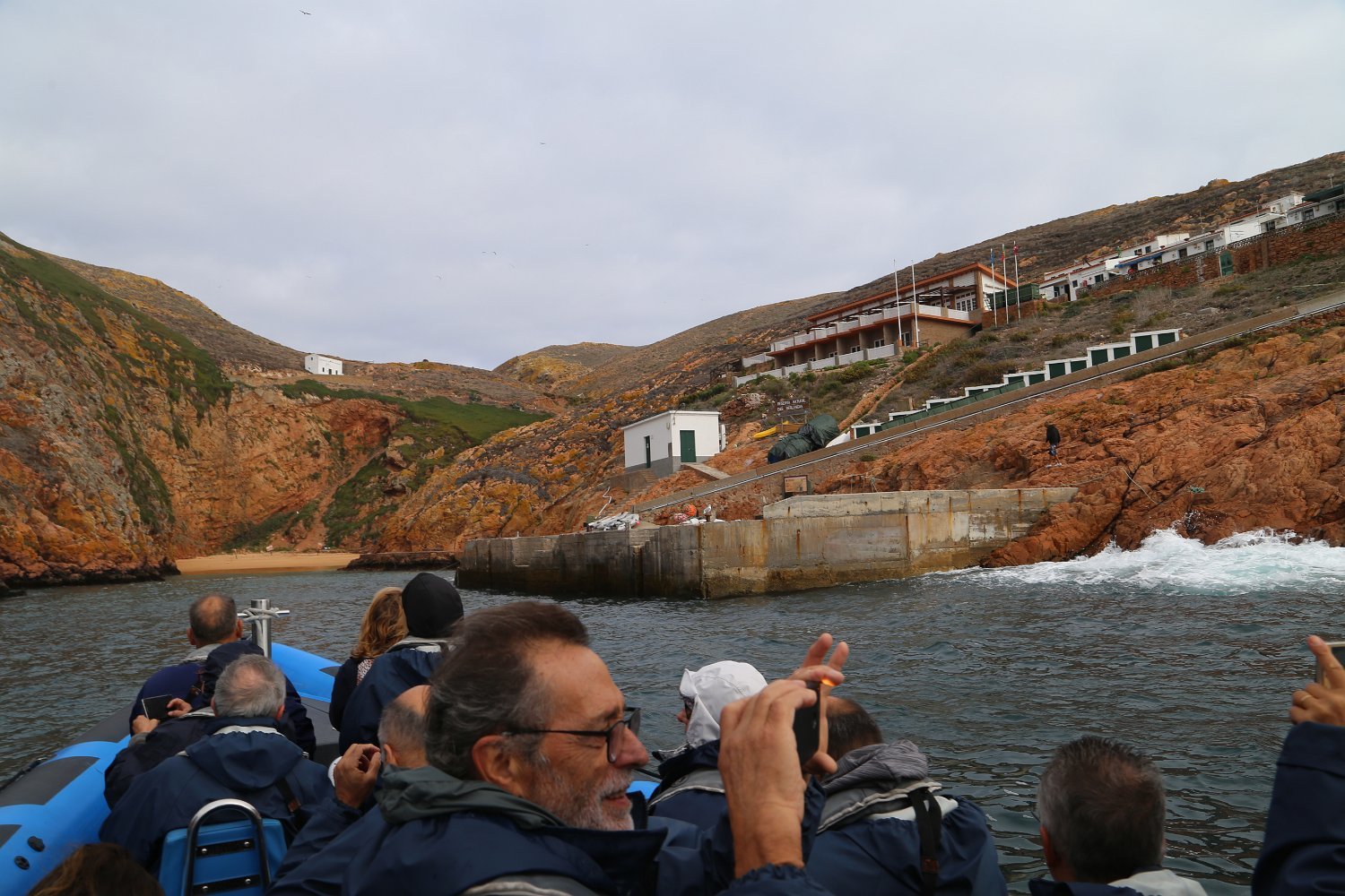 Mas era agora tempo de embarcar nas lanchas semirrígidas contratadas à “Feeling Berlenga” que fizeram muito rapidamente a travessia até ao “paraíso natural do arquipélago das Berlengas” num mar pouco revolto, mas que com uma ondulação de 2m ainda proporcionou alguns salpicos mais ou menos violentos aos que calharam a estibordo do azul “Odisseia” e assim enfrentaram a nortada marítima.