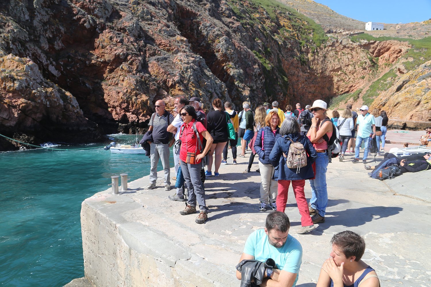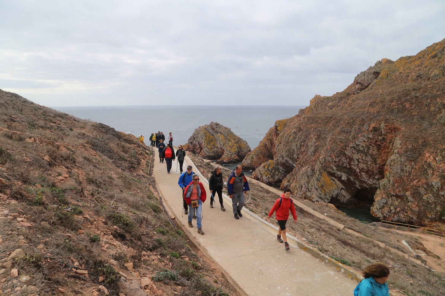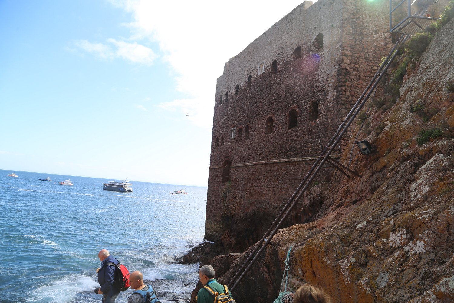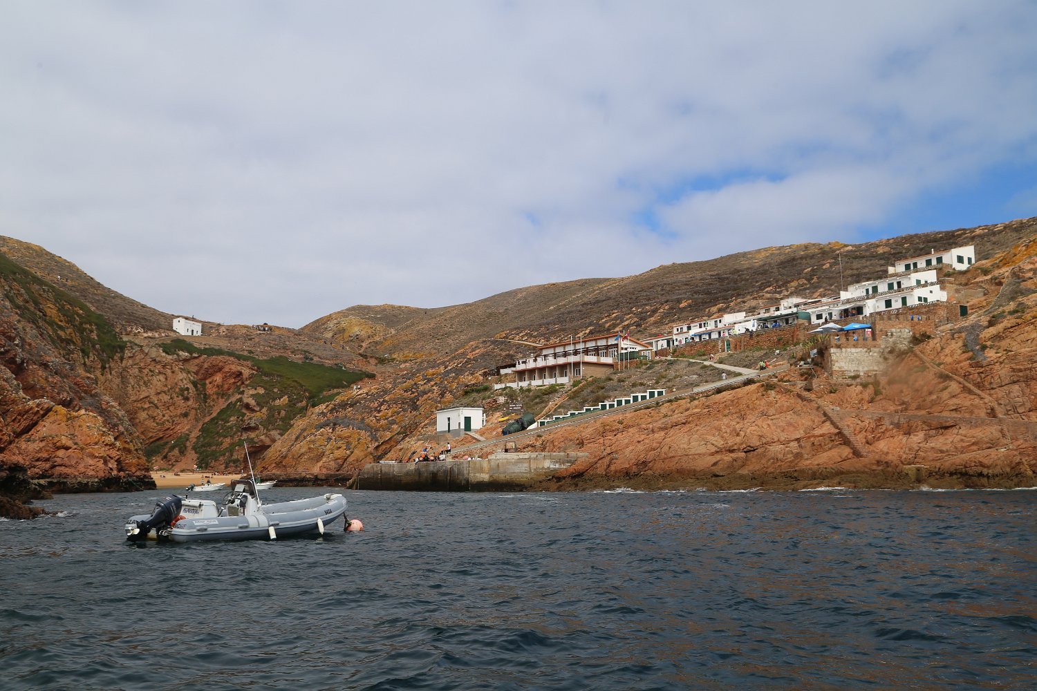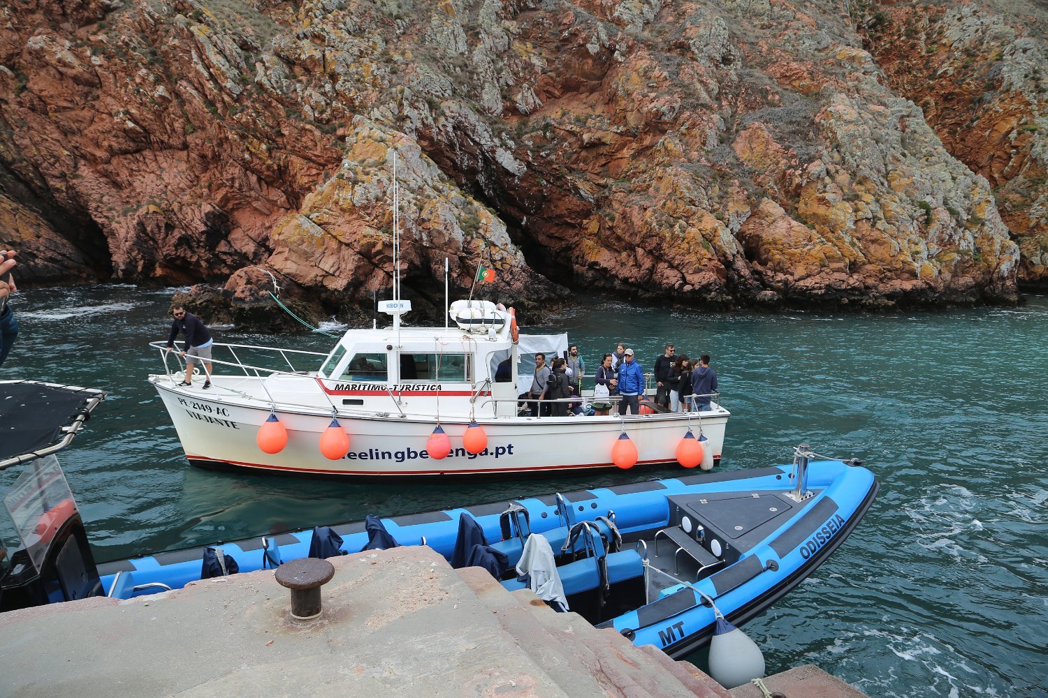 Mas era agora tempo de embarcar nas lanchas semirrígidas contratadas à “Feeling Berlenga” que fizeram muito rapidamente a travessia até ao “paraíso natural do arquipélago das Berlengas” num mar pouco revolto, mas que com uma ondulação de 2m ainda proporcionou alguns salpicos mais ou menos violentos aos que calharam a estibordo do azul “Odisseia” e assim enfrentaram a nortada marítima.