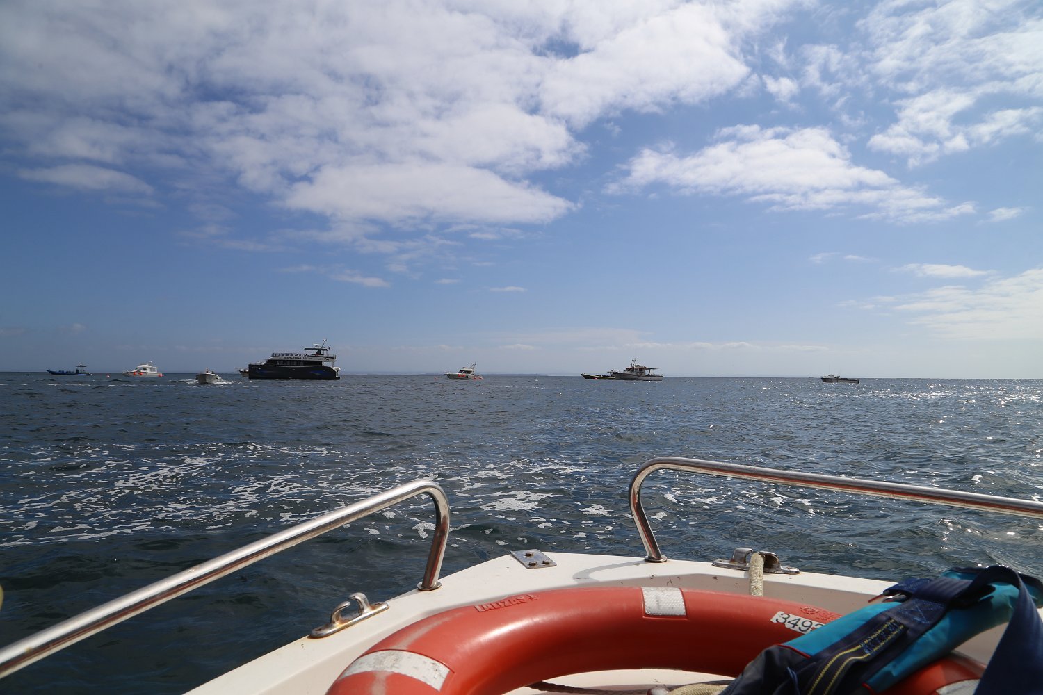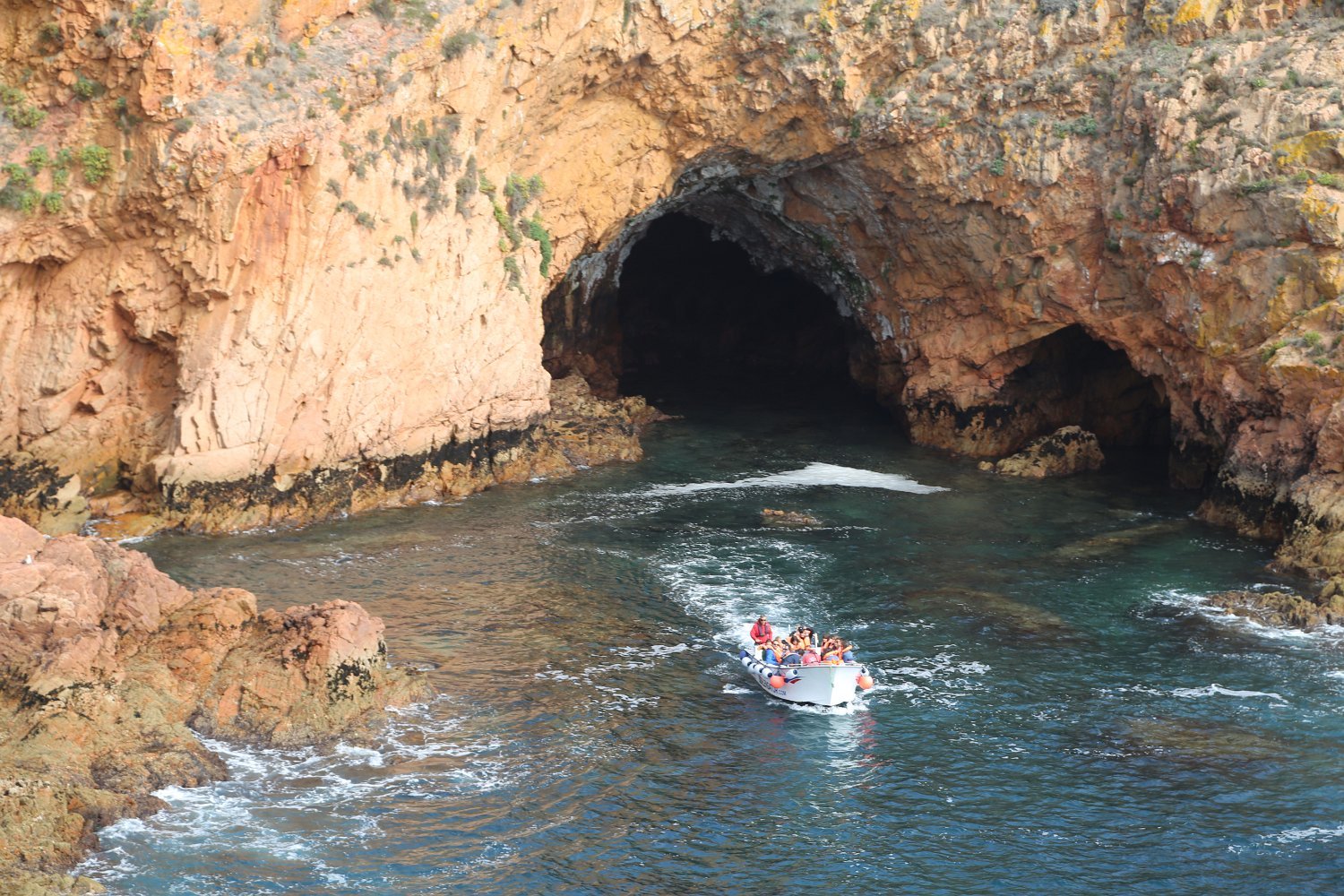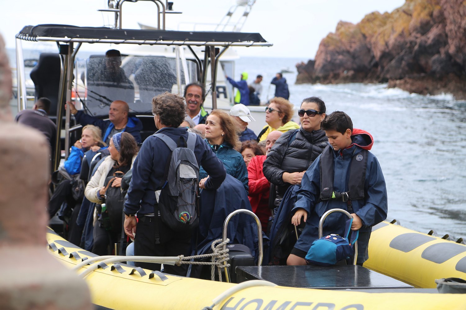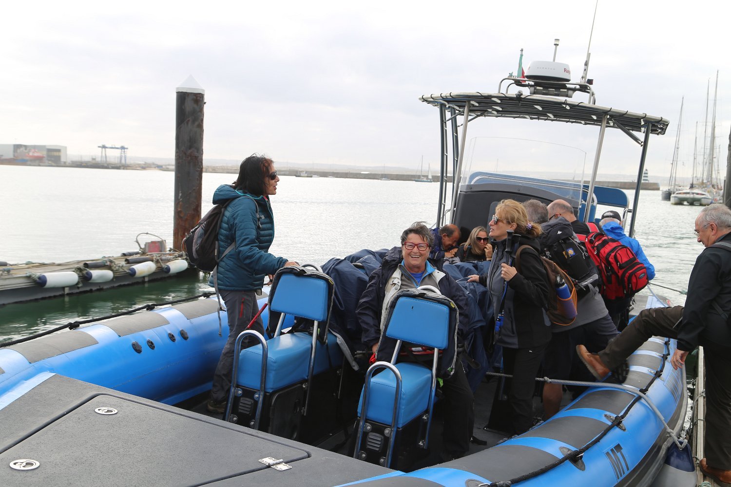 Mas era agora tempo de embarcar nas lanchas semirrígidas contratadas à “Feeling Berlenga” que fizeram muito rapidamente a travessia até ao “paraíso natural do arquipélago das Berlengas” num mar pouco revolto, mas que com uma ondulação de 2m ainda proporcionou alguns salpicos mais ou menos violentos aos que calharam a estibordo do azul “Odisseia” e assim enfrentaram a nortada marítima.