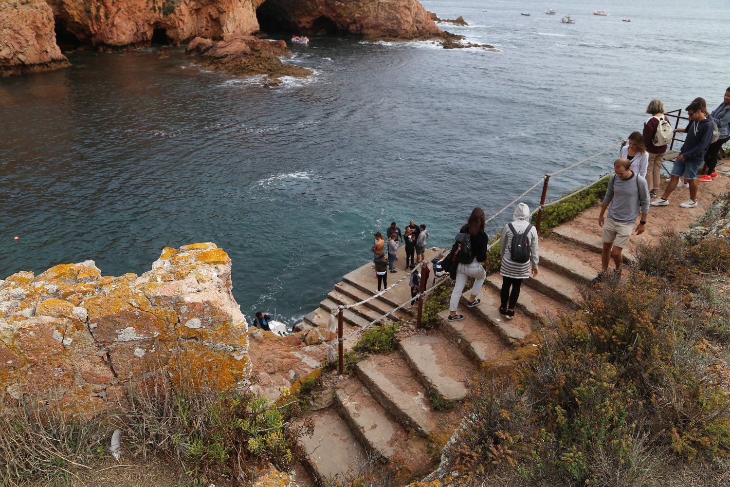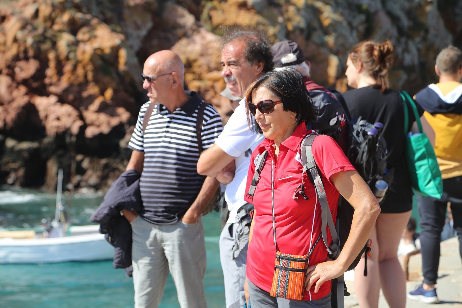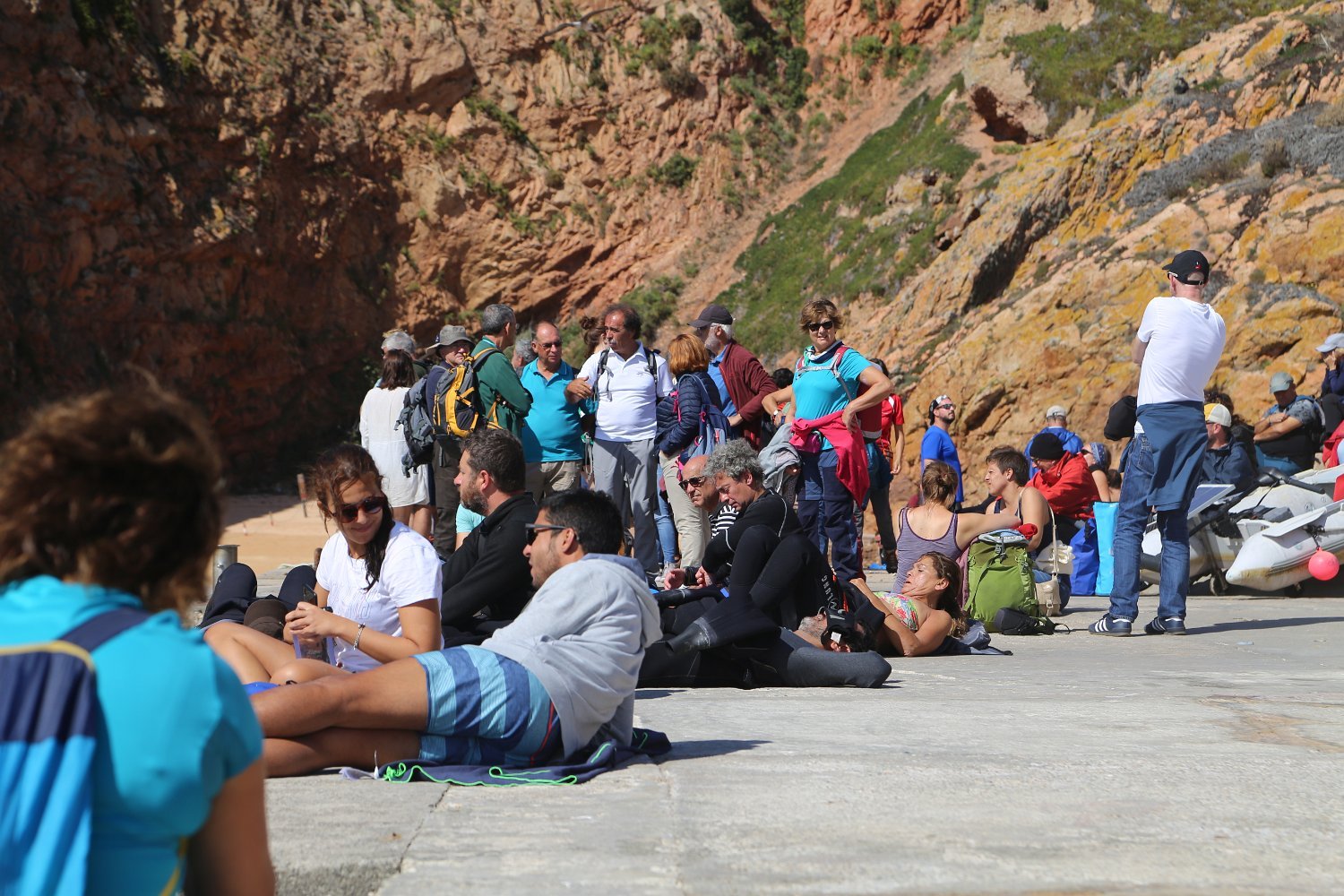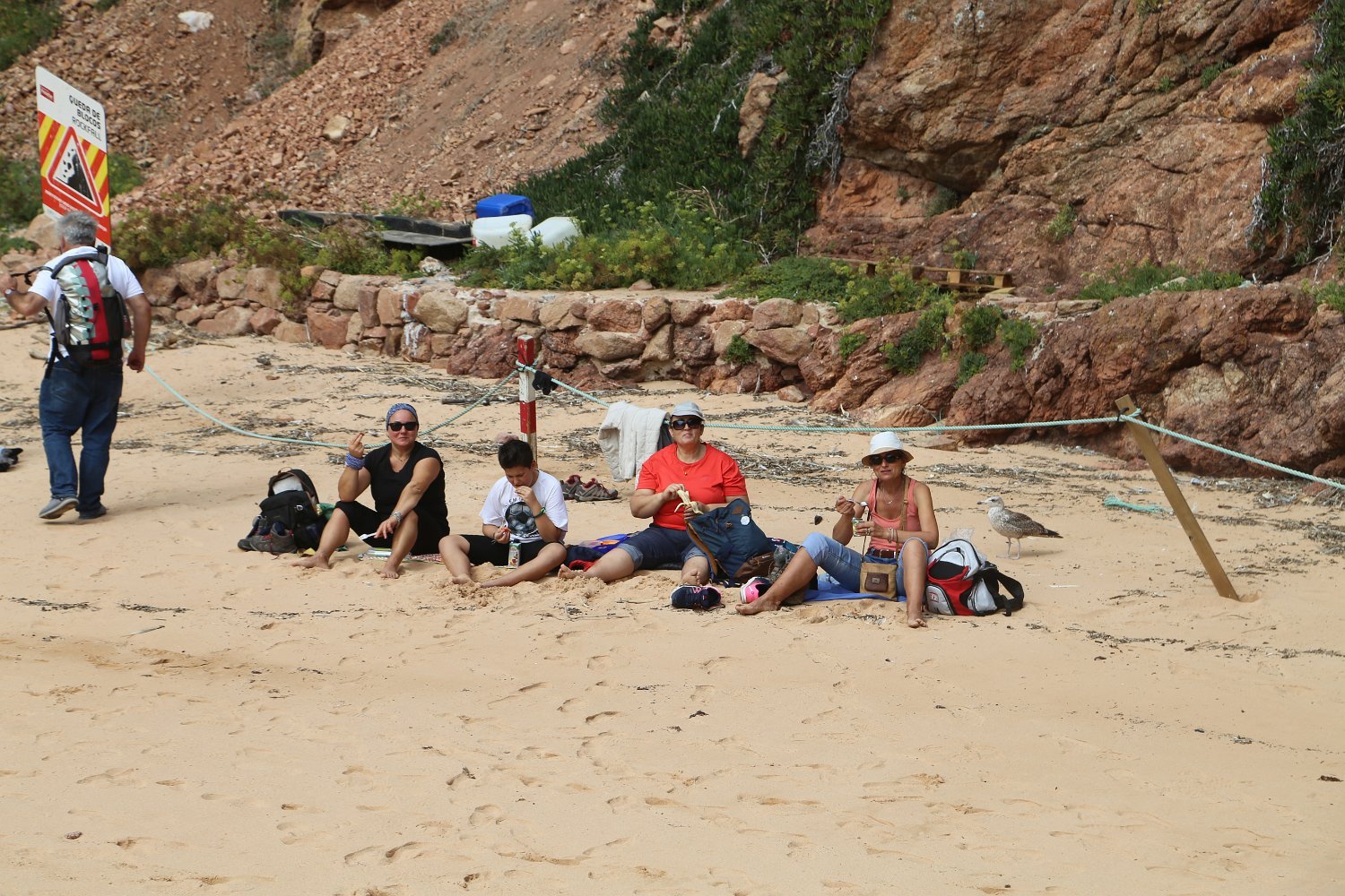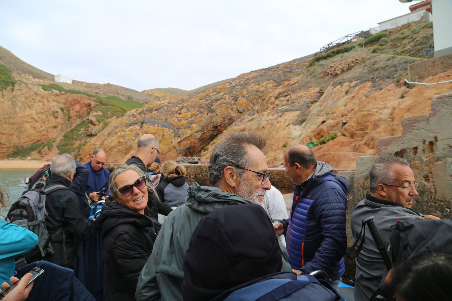 A decisão não foi unânime e um grupo de valentes fez-se ao caminho regressando pelo farol, mas a maioria votou pelo regresso de barco, evitando mais essa dificuldade. Pretendíamos ainda aproveitar o regresso para visitar as grutas, mas nessa ocasião as visitas estavam interditas, pela mudança de maré e agitação das águas costeiras.