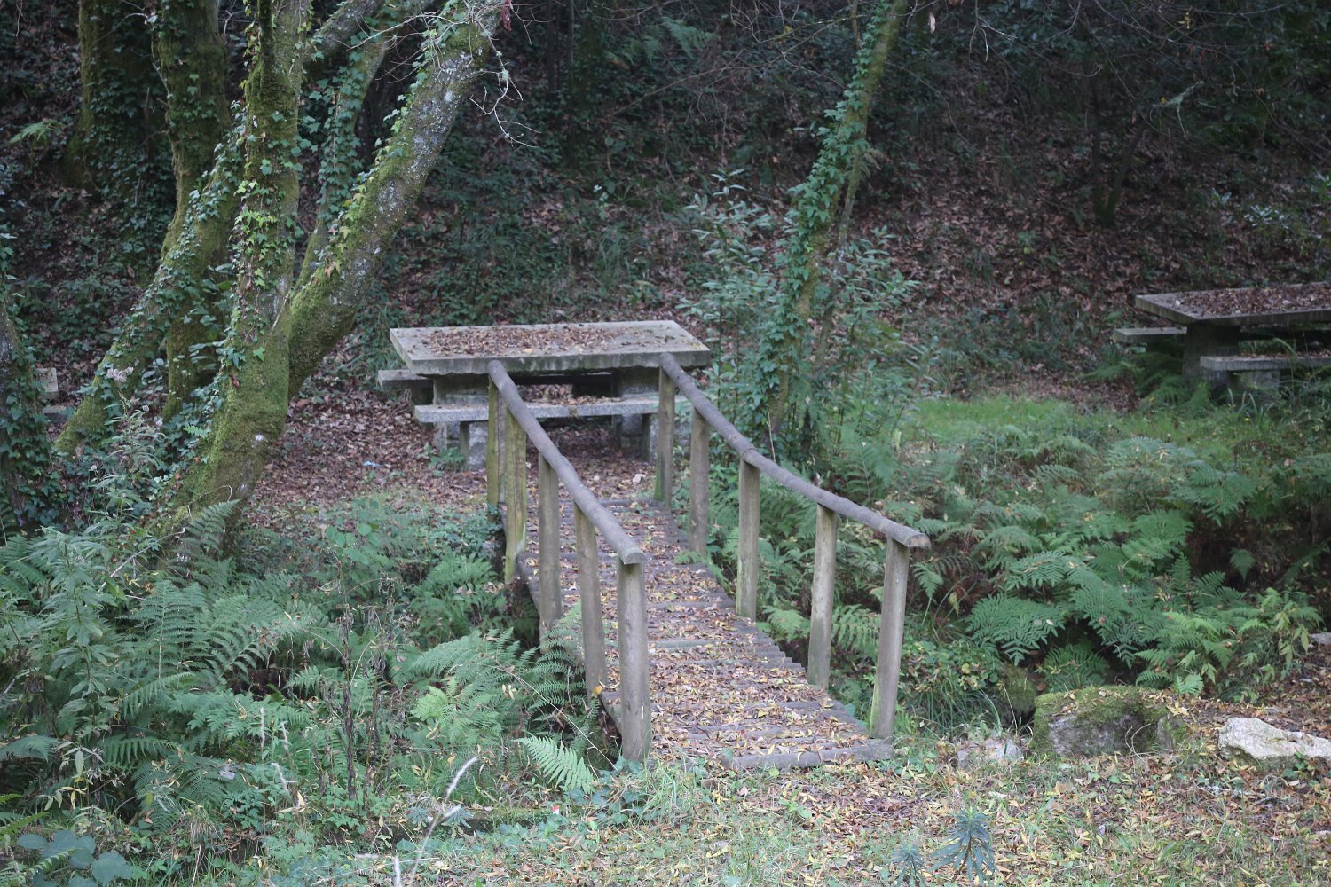 Nesse trajeto, uma referência à “Zona de Lazer dos Amigos da Floresta” já na freguesia de Pias, concelho de Monção, onde surge o primeiro moinho e sua levada, quase irreconhecível pela densa vegetação. Cruzamos de seguida a ponte sobre o ribeiro dos Cavaleiros, tendo chegado pouco depois ao pequeno largo de Retorta, onde fizemos curta pausa para reagrupar junto das alminhas.
