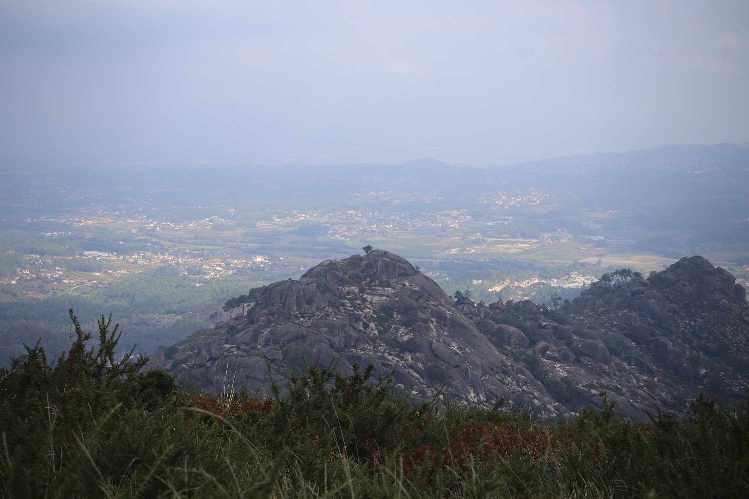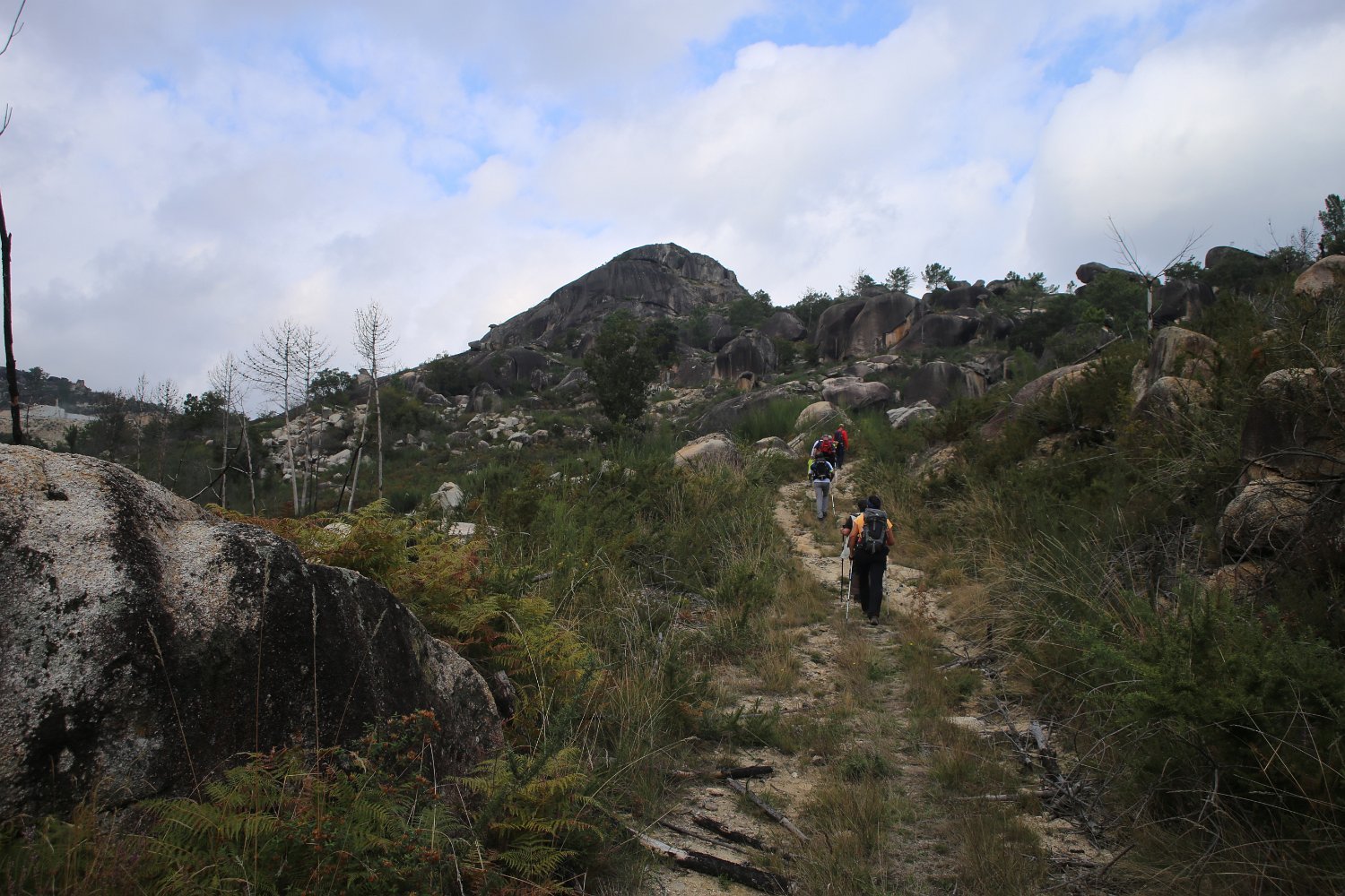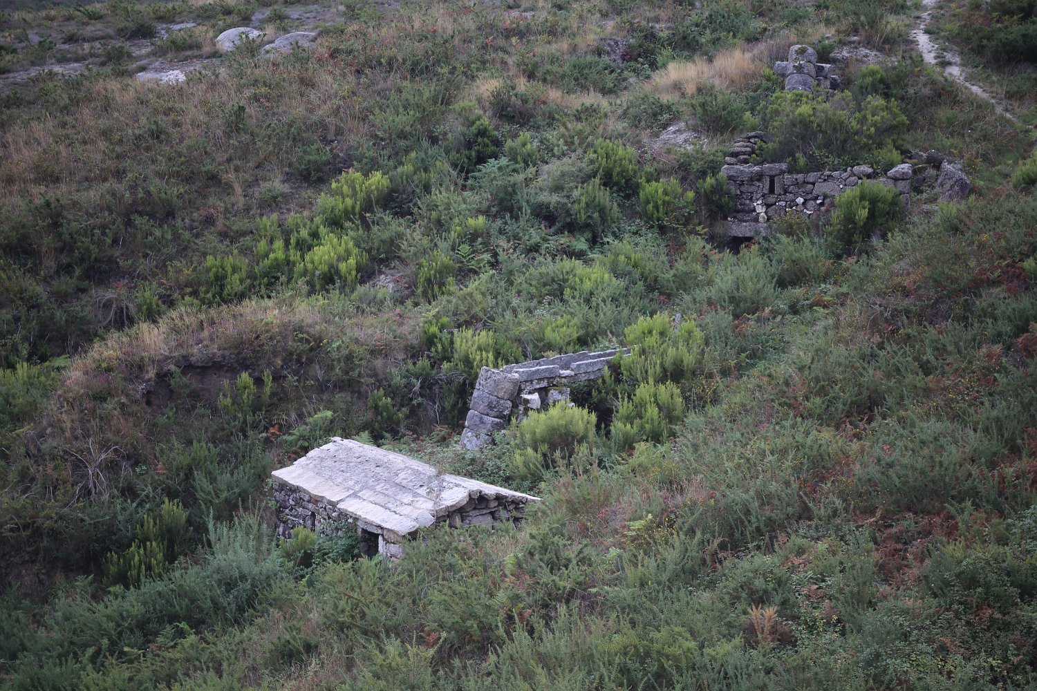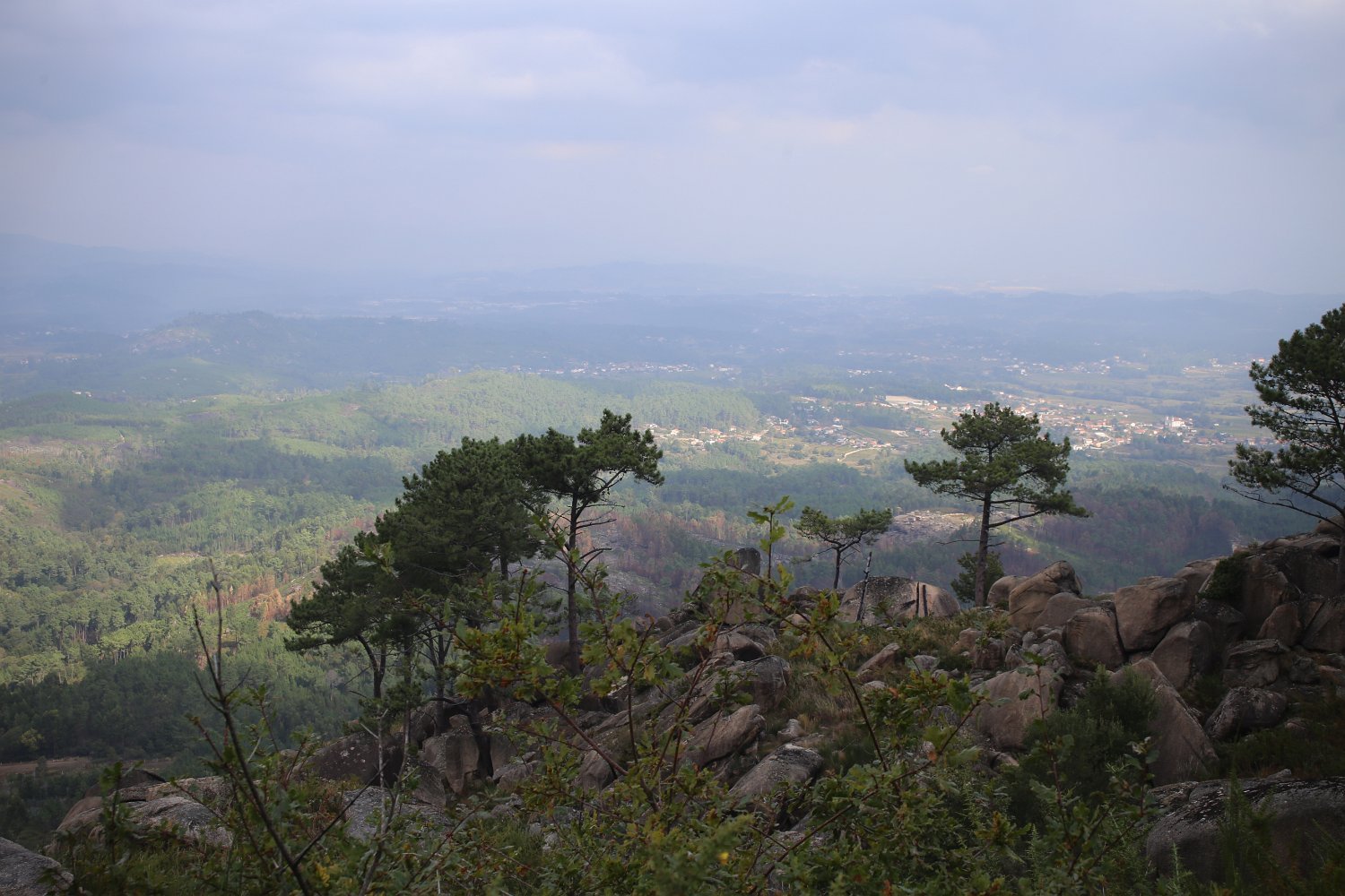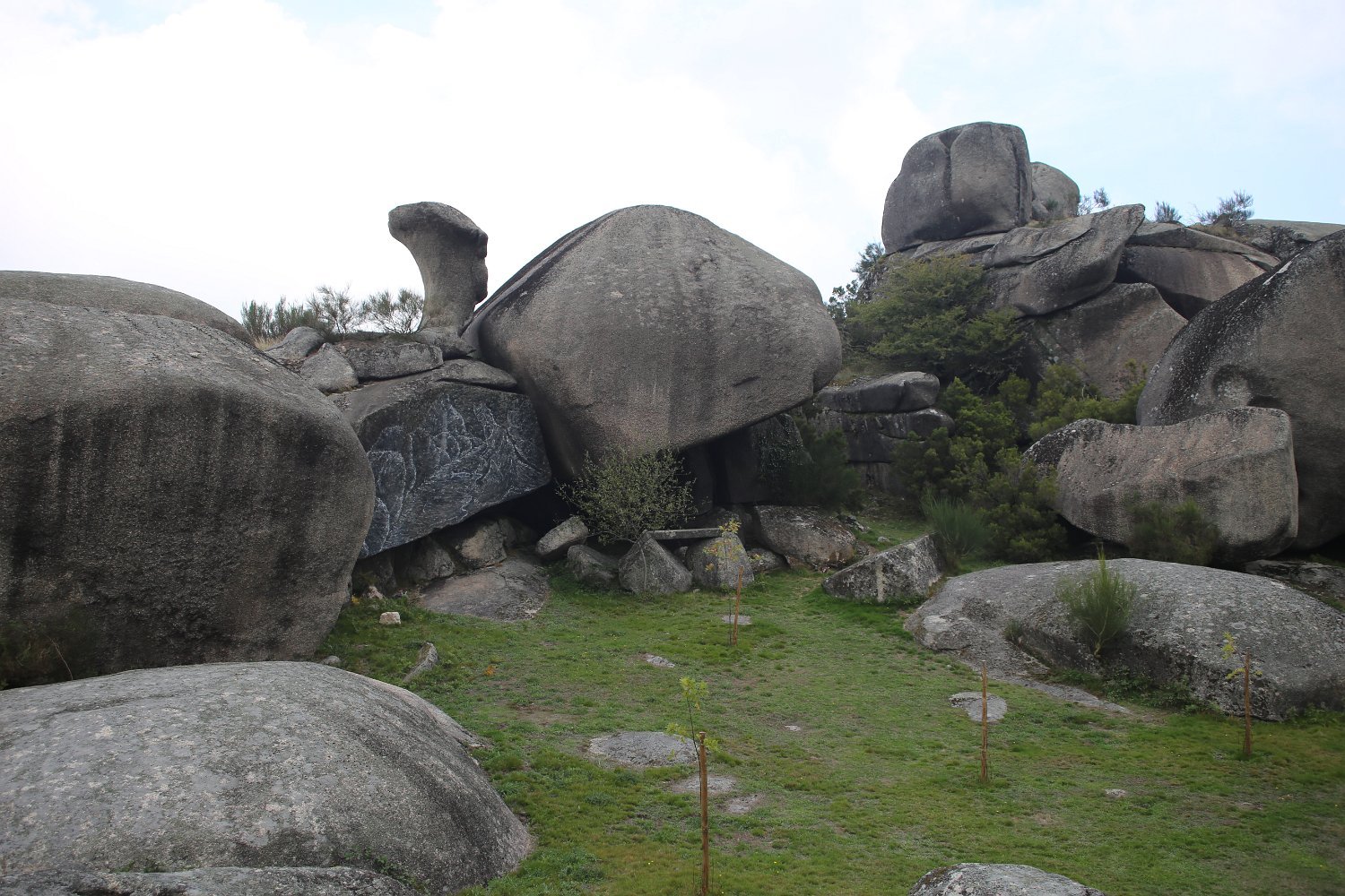 Cruzamos entretanto o “ribeiro dos Cortelhos” e após curta reorientação continuamos por terrenos varridos pelos fogos, agora arrasados pelas máquinas de rastos, para preparação de nova plantação florestal. À nossa volta, os enormes cabeços rochosos que emergem dispersos pela paisagem e as muitas explorações de granito ornamental que esventram os montes desfeando a paisagem.
