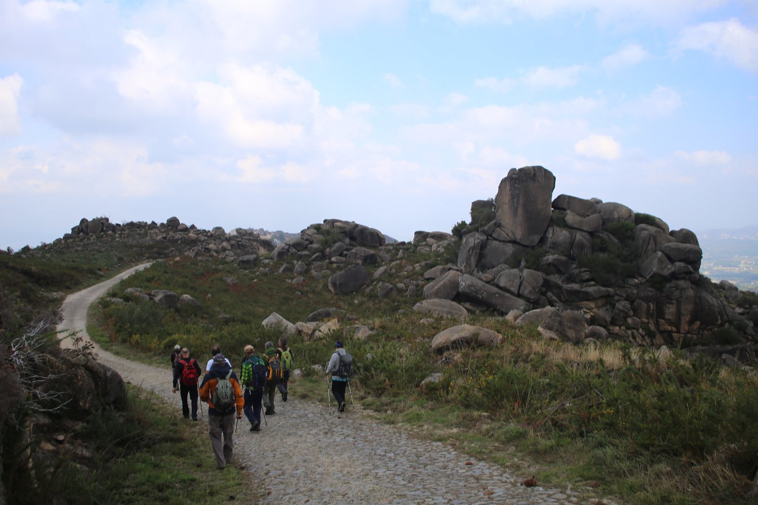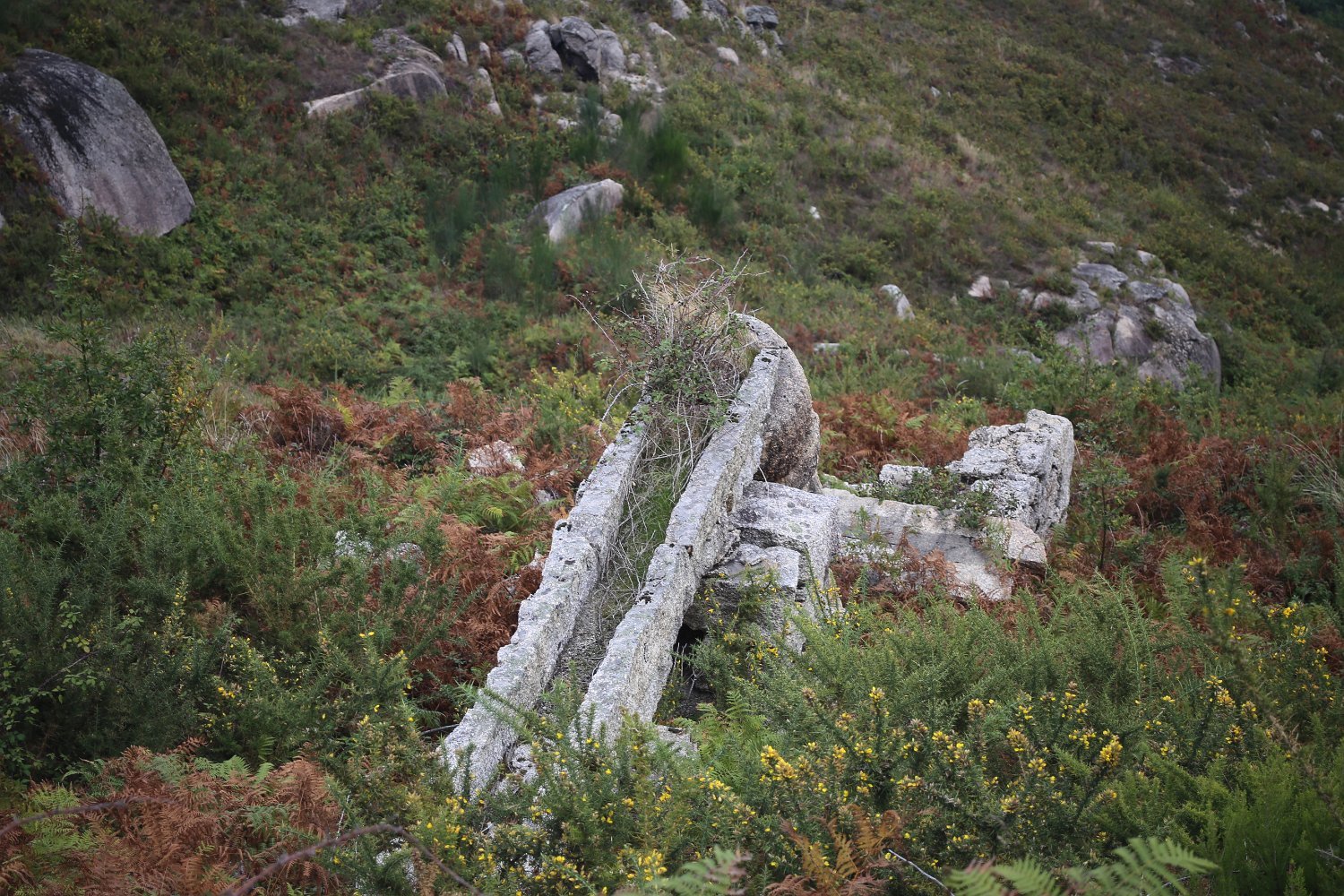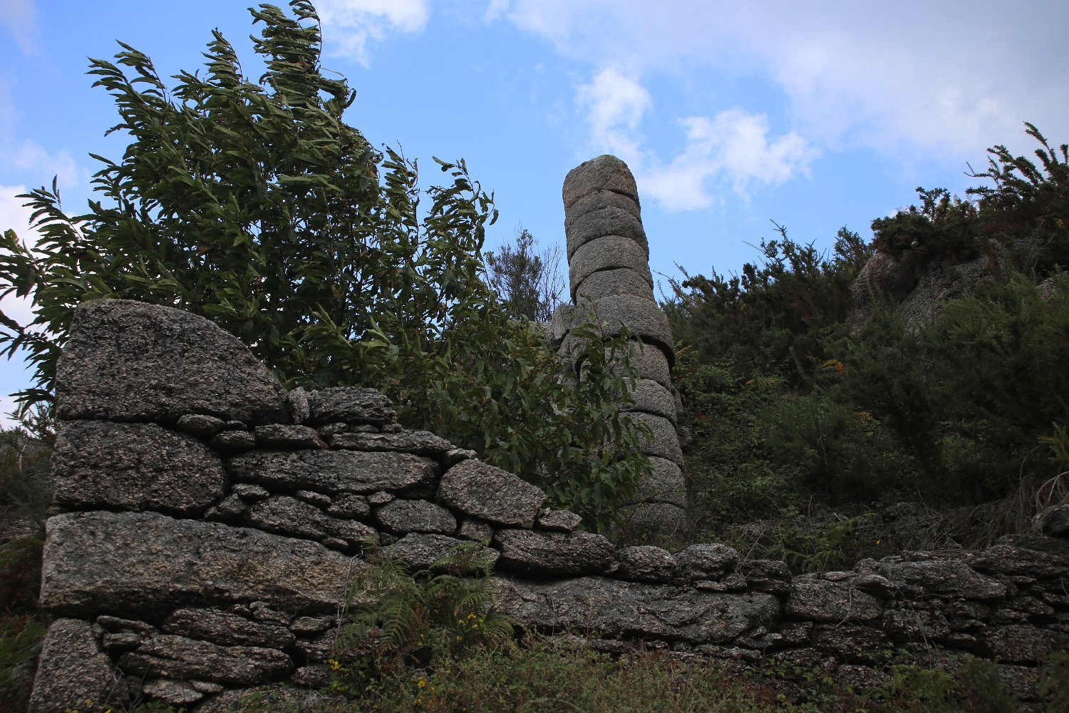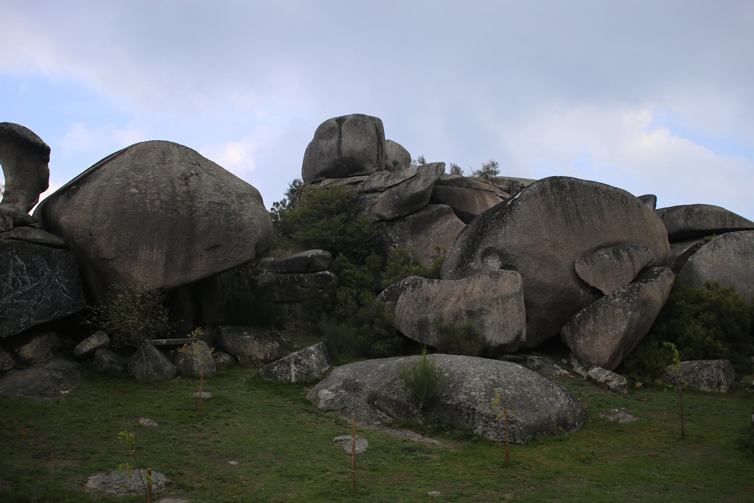 Cruzamos entretanto o “ribeiro dos Cortelhos” e após curta reorientação continuamos por terrenos varridos pelos fogos, agora arrasados pelas máquinas de rastos, para preparação de nova plantação florestal. À nossa volta, os enormes cabeços rochosos que emergem dispersos pela paisagem e as muitas explorações de granito ornamental que esventram os montes desfeando a paisagem.