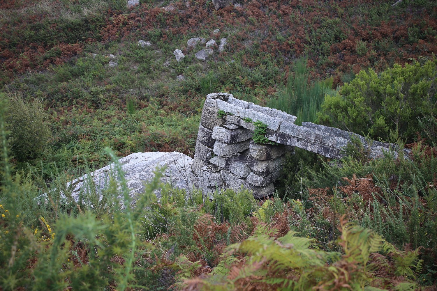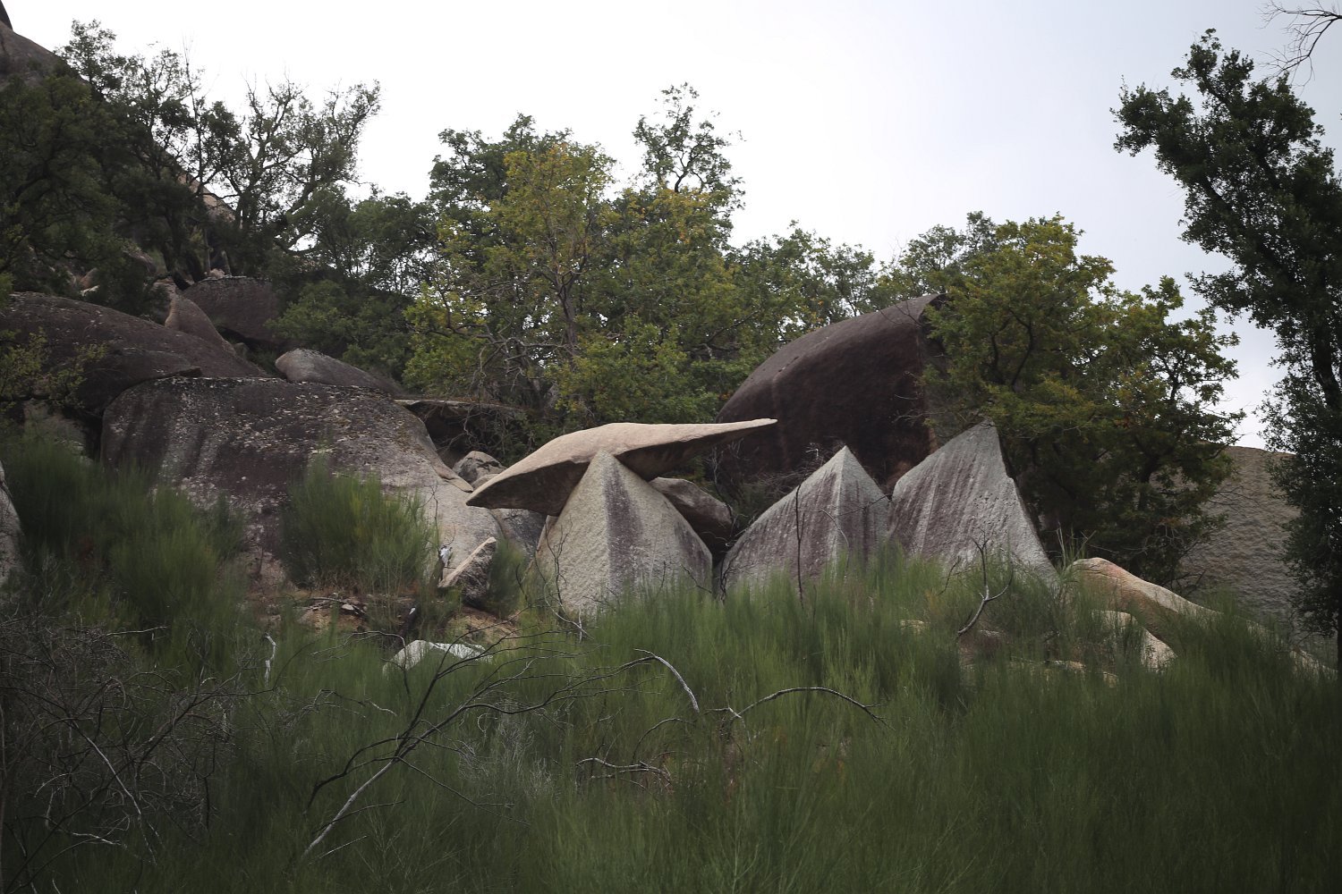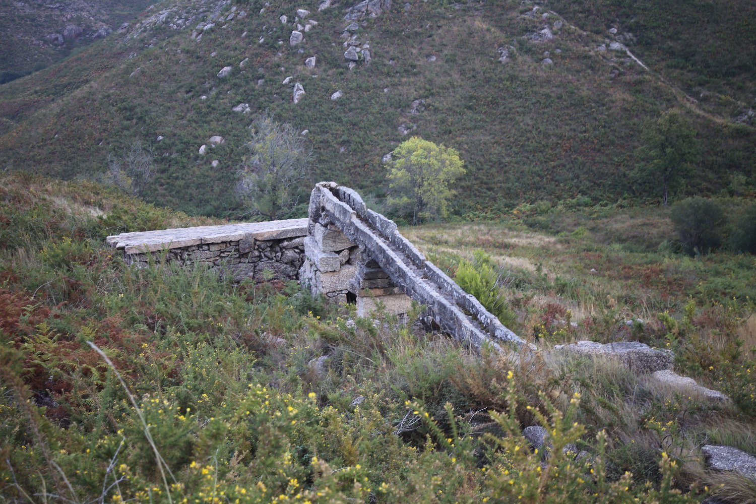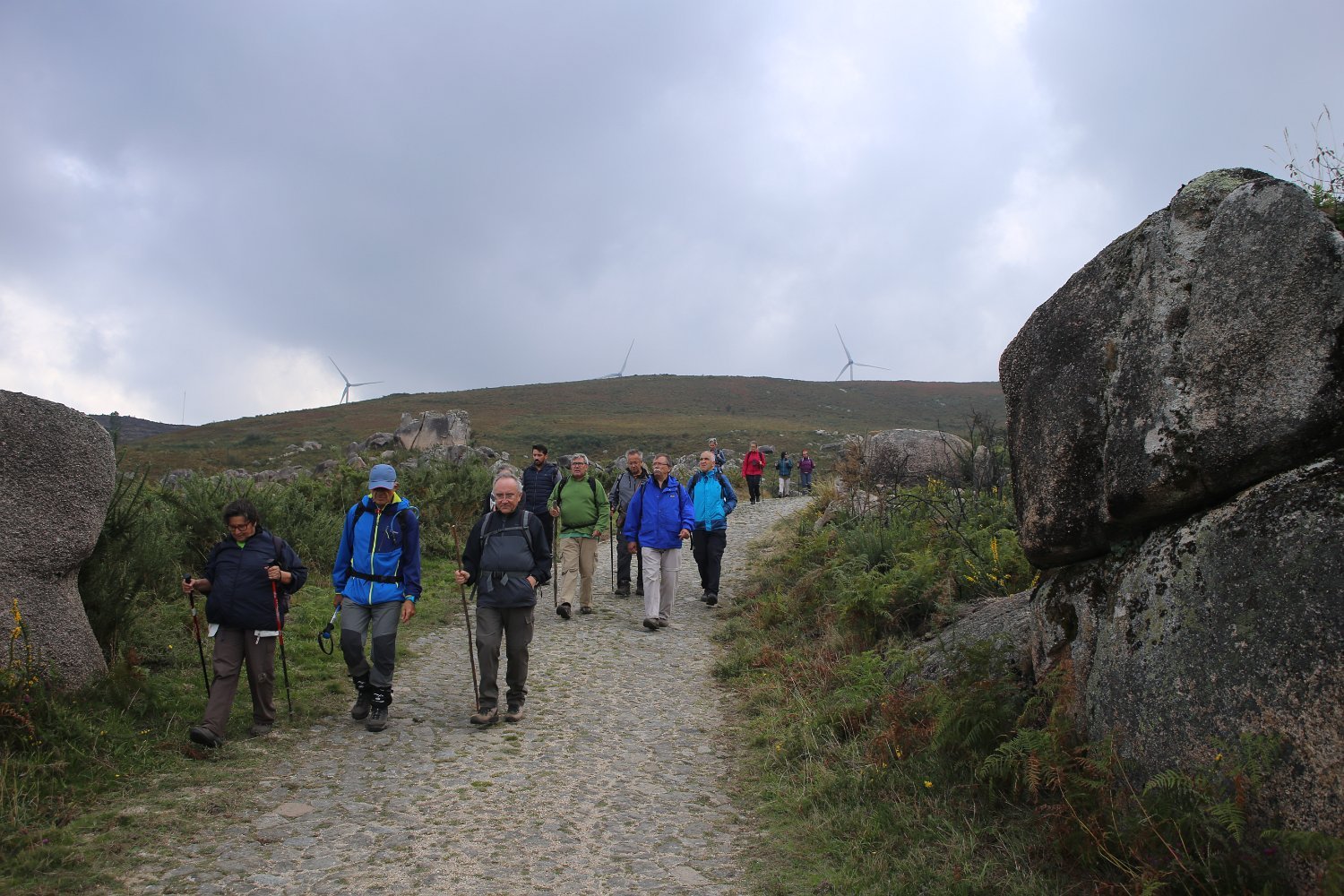 Cruzamos entretanto o “ribeiro dos Cortelhos” e após curta reorientação continuamos por terrenos varridos pelos fogos, agora arrasados pelas máquinas de rastos, para preparação de nova plantação florestal. À nossa volta, os enormes cabeços rochosos que emergem dispersos pela paisagem e as muitas explorações de granito ornamental que esventram os montes desfeando a paisagem.