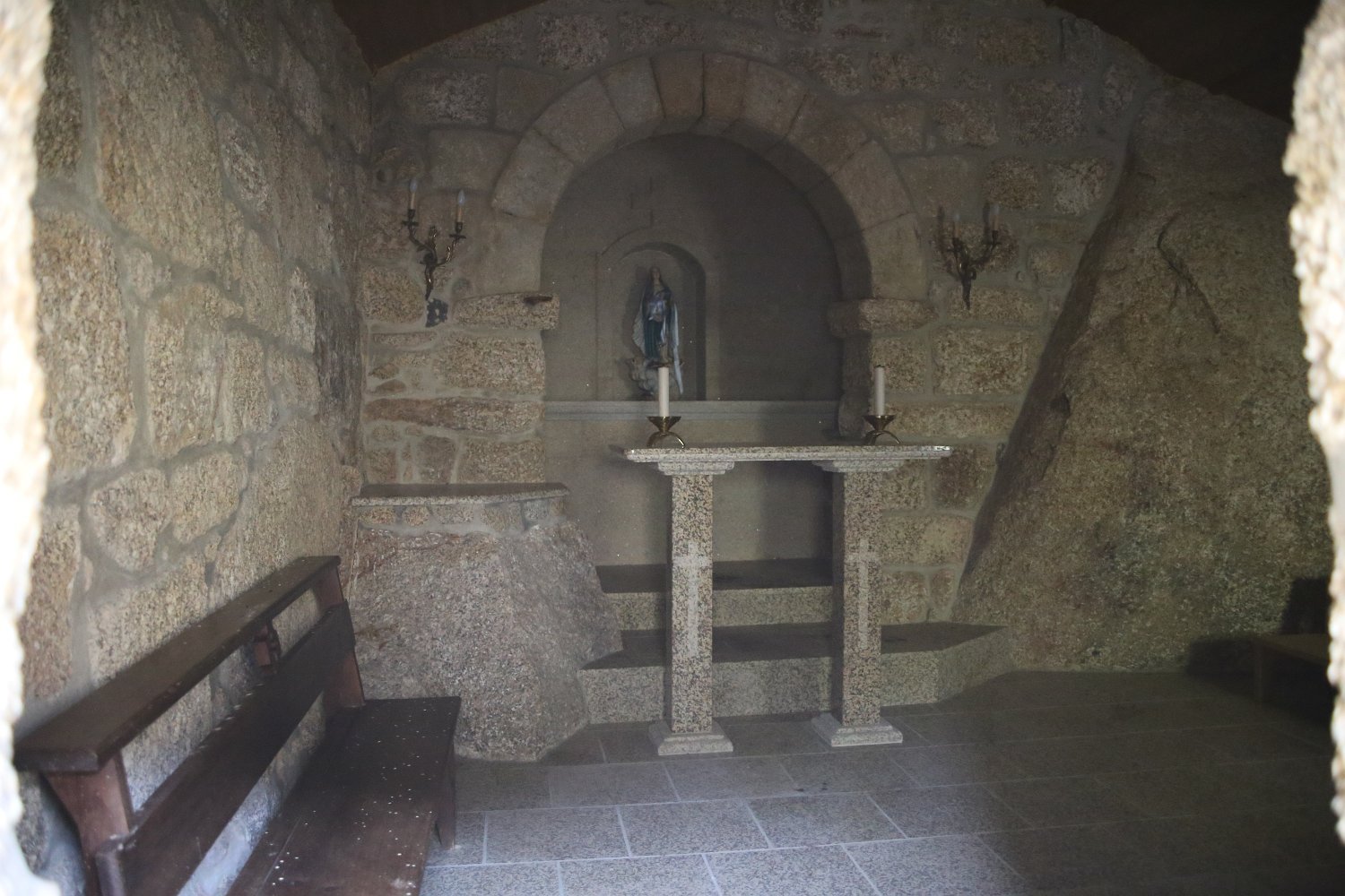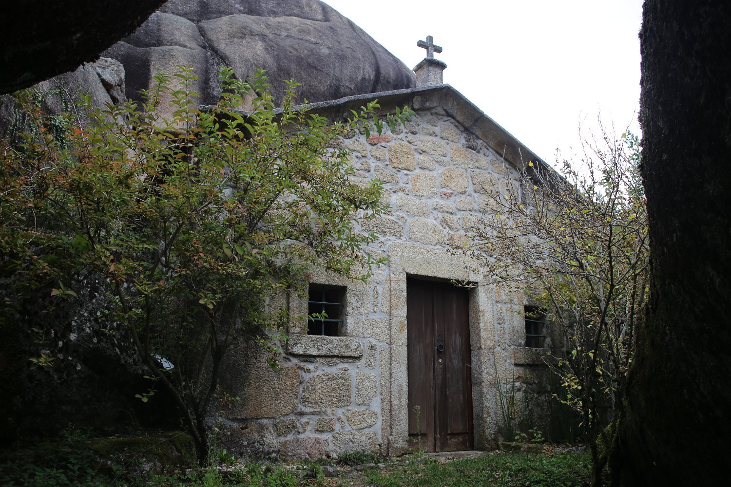 Chegamos finalmente ao largo da “Área de Lazer da Penha da Rainha” no extremo da freguesia de Abedim, concelho de Monção, onde decidimos subir a enorme mole granítica, com gigantescos penedos caoticamente encavalitados uns nos outros. A subida está bem delimitada e facilitada com um corrimão cravado nas rochas e subimos a ingreme escadaria até à pequenina capela de S. Martinho, escondida no meio de enormes pedregulhos que a protegem da inclemência dos elementos.