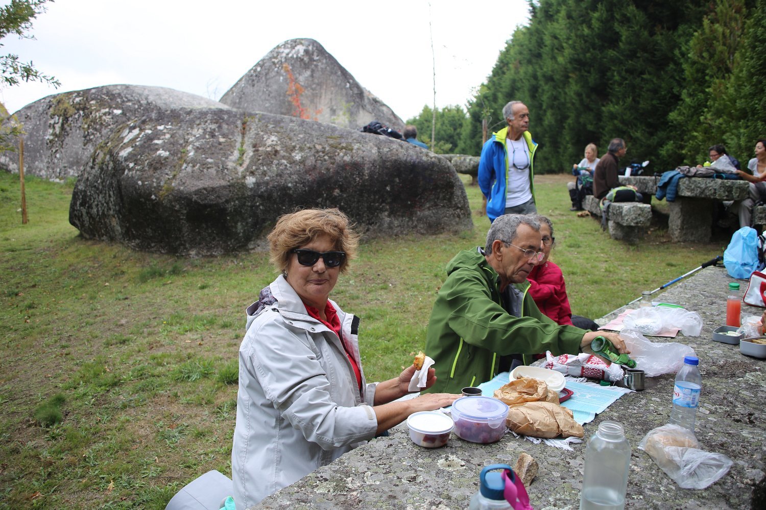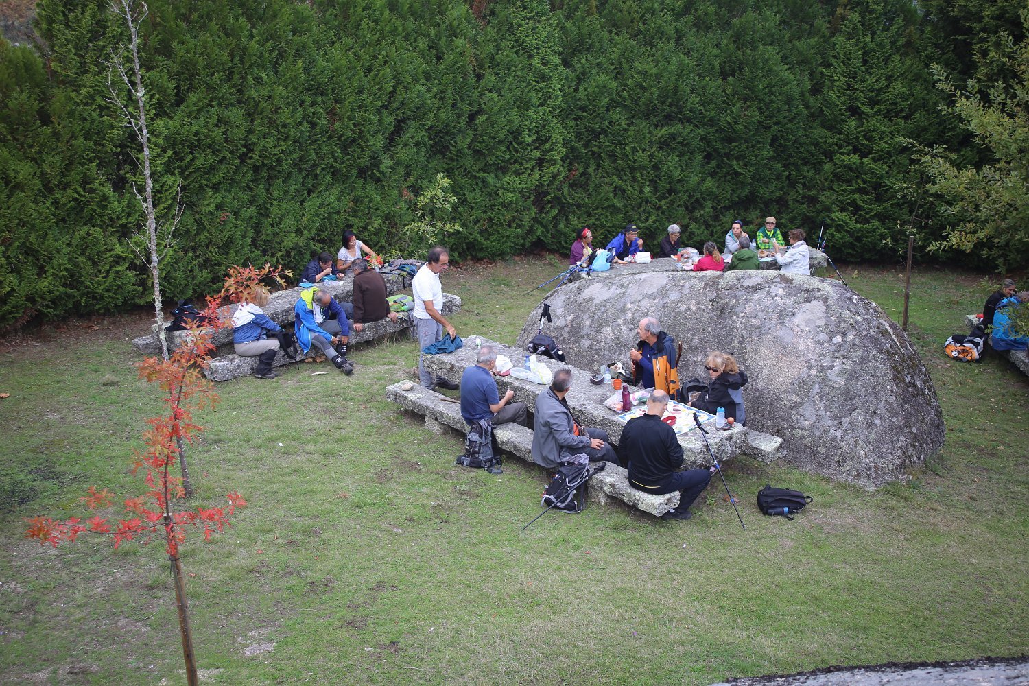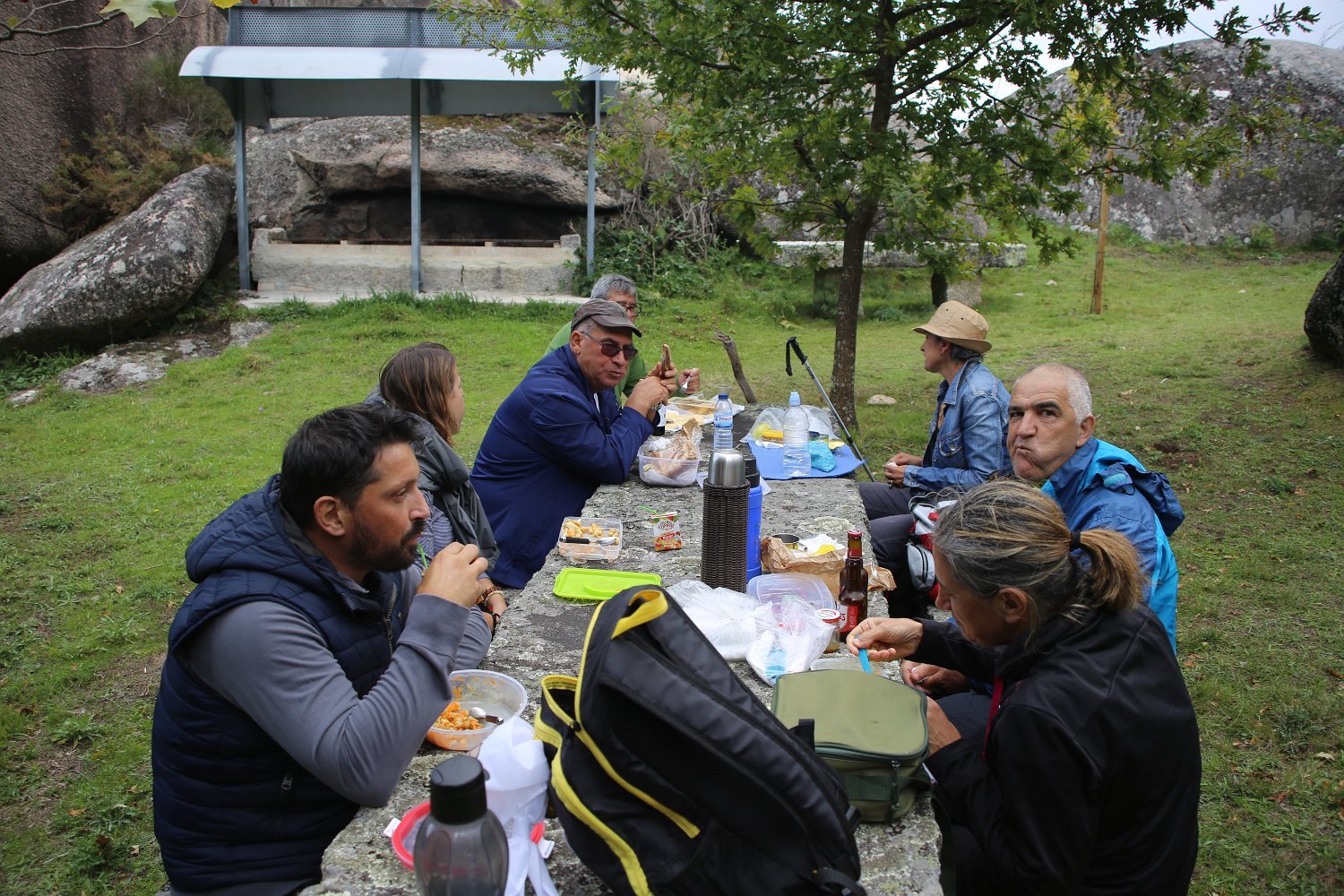 Valeu a pena a espera, pois o local escolhido era de categoria; soalheiro, com infraestrutura de mesas e bancos de pedra, água corrente e protegido dos ventos fortes, pelo que foi com boas condições que fizemos o demorado repasto.