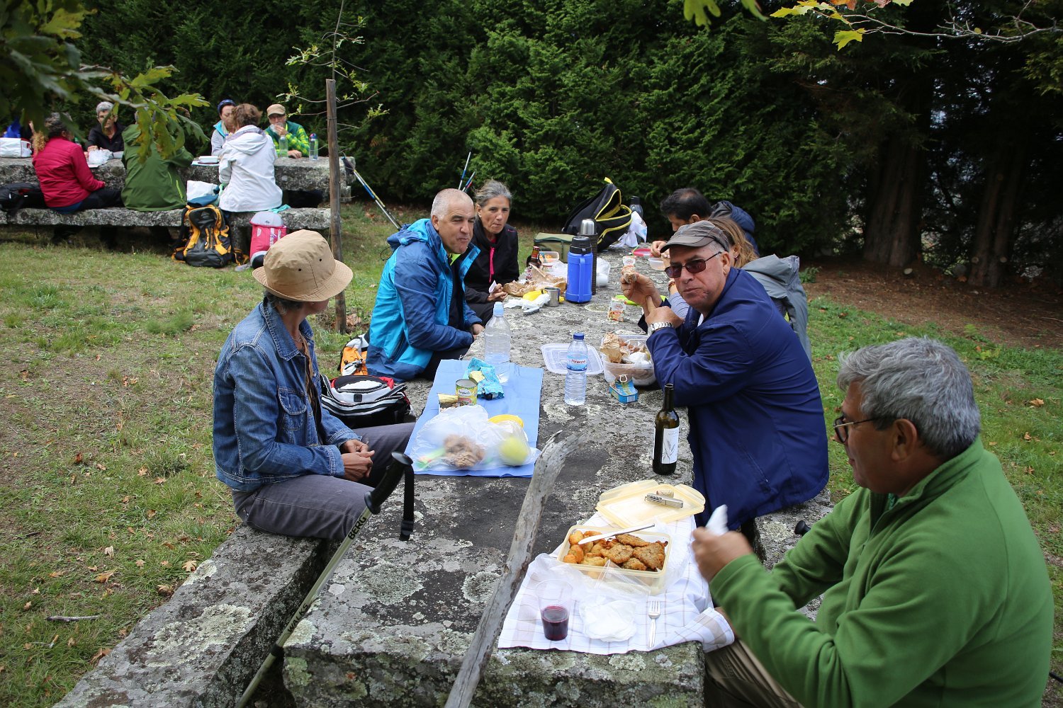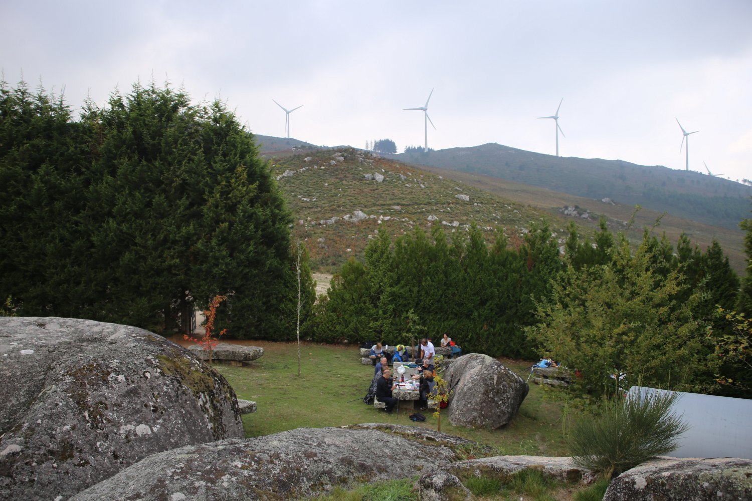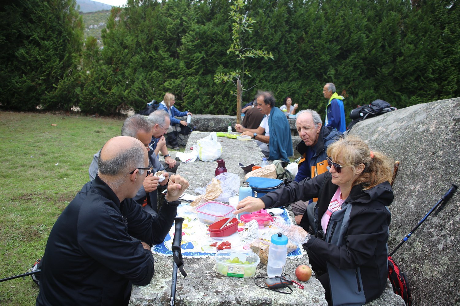 Valeu a pena a espera, pois o local escolhido era de categoria; soalheiro, com infraestrutura de mesas e bancos de pedra, água corrente e protegido dos ventos fortes, pelo que foi com boas condições que fizemos o demorado repasto.