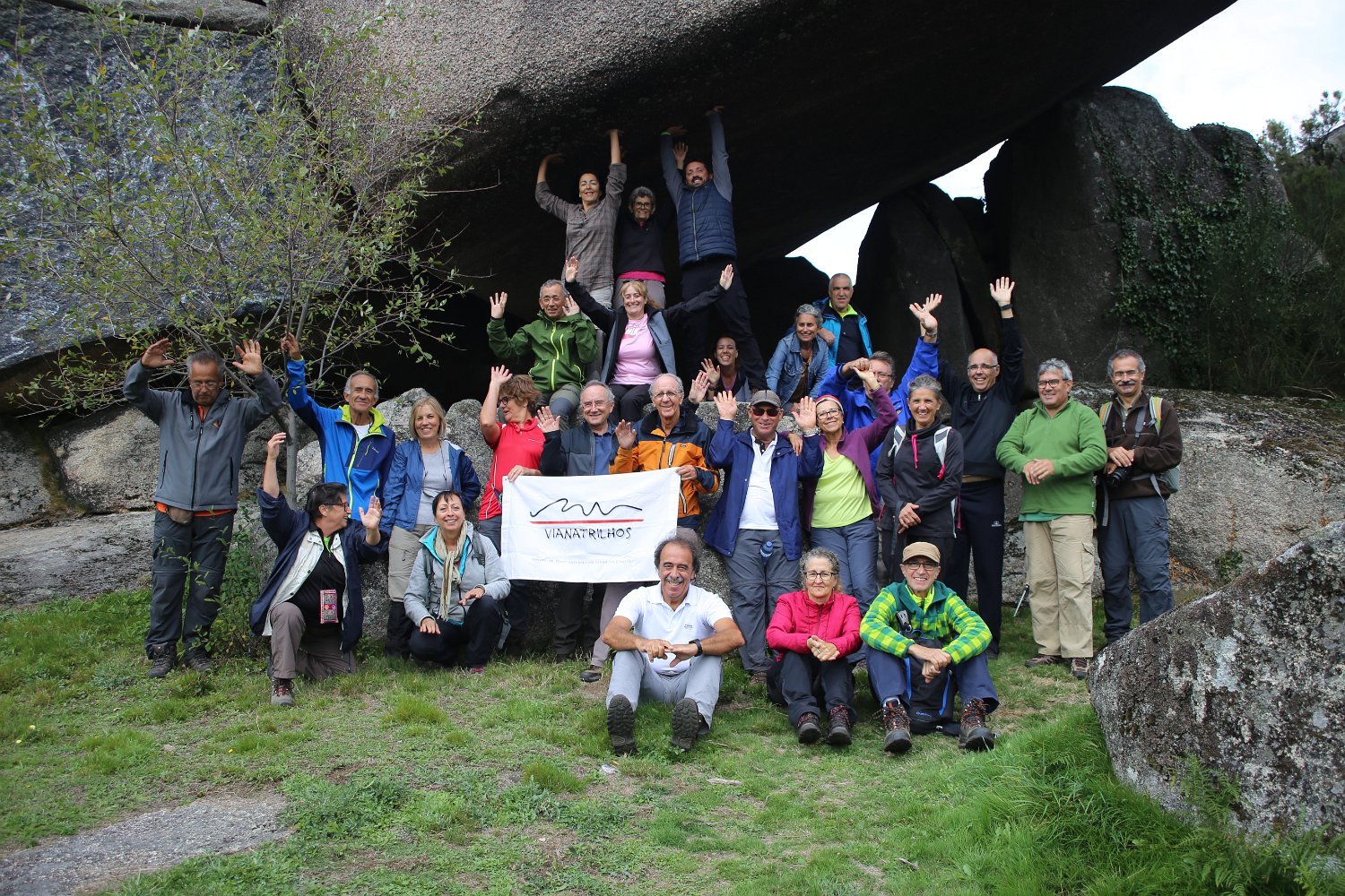 Havia quem já quisesse almoçar no parque de merendas, mas como era ainda muito cedo decidimos deixar o alto Castelo São Martinho ou da Penha da Rainha e continuar para o lugar de Grandachão onde paramos junto a umas alminhas em que figura a curiosa inscrição “A vós que passais lembrai-vos de Nós”. Aproveitamos para reabastecer de água e seguimos pelo planalto na direção do Castelo das Furnas.