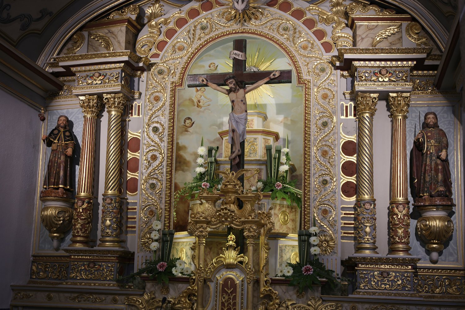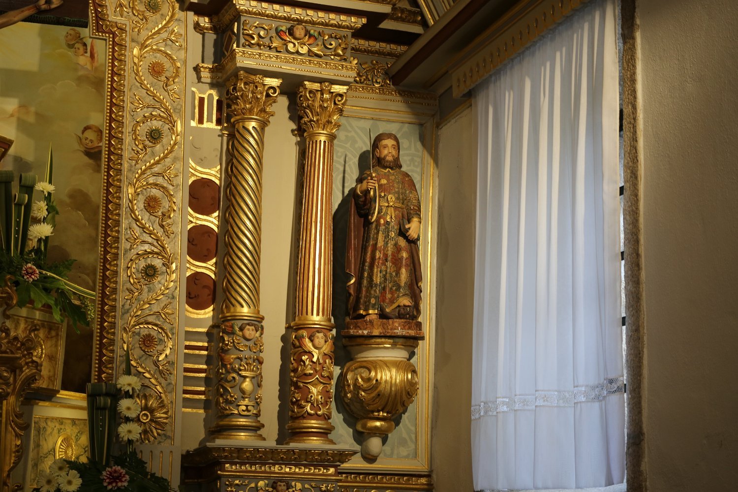 Visitamos depois a igreja Matriz de Boivão, onde um grupo de simpáticas devotas fazia os arranjos florais do altar e santos. Tudo muito bonito e florido. No altar-mor, no lado do Evangelho, destinado ao padroeiro, está S. Tiago, estando S. Paulo no lado da epístola.
