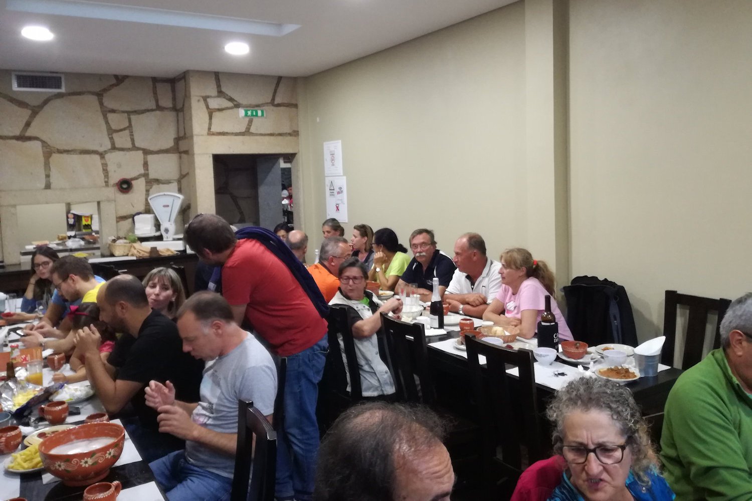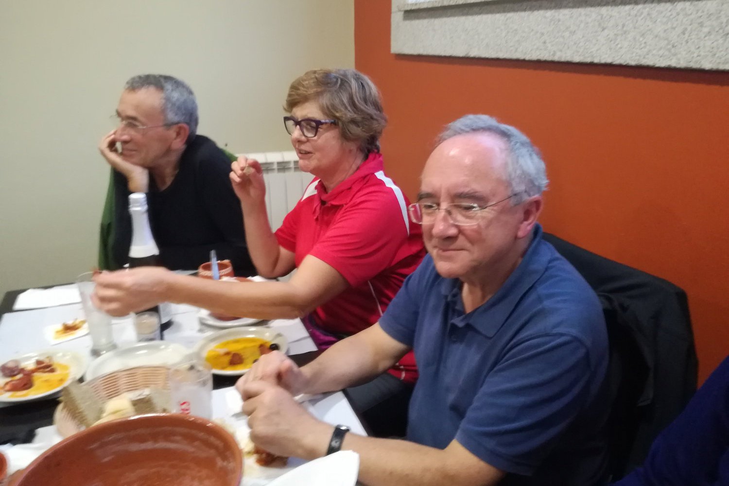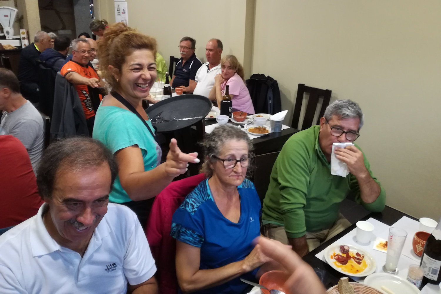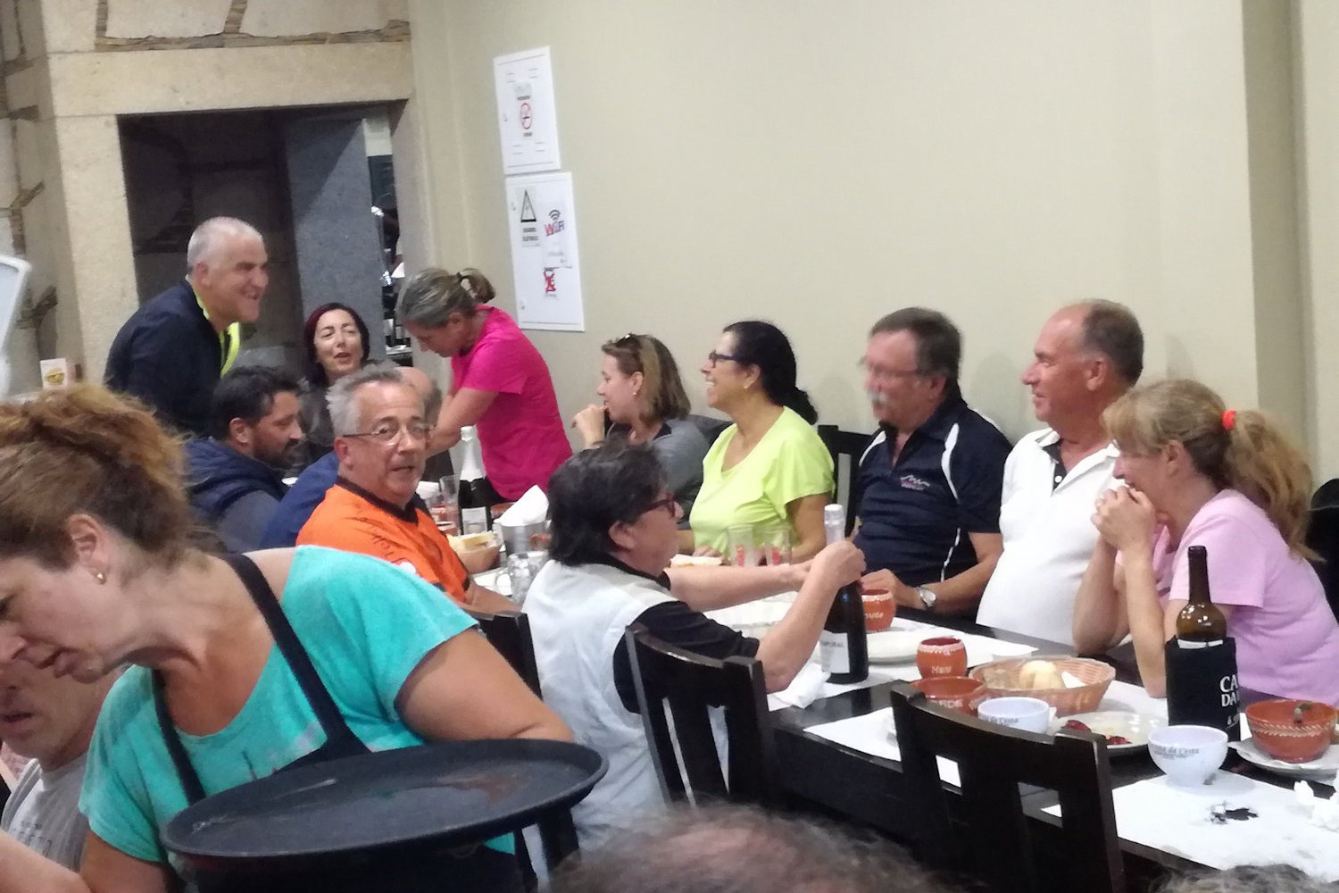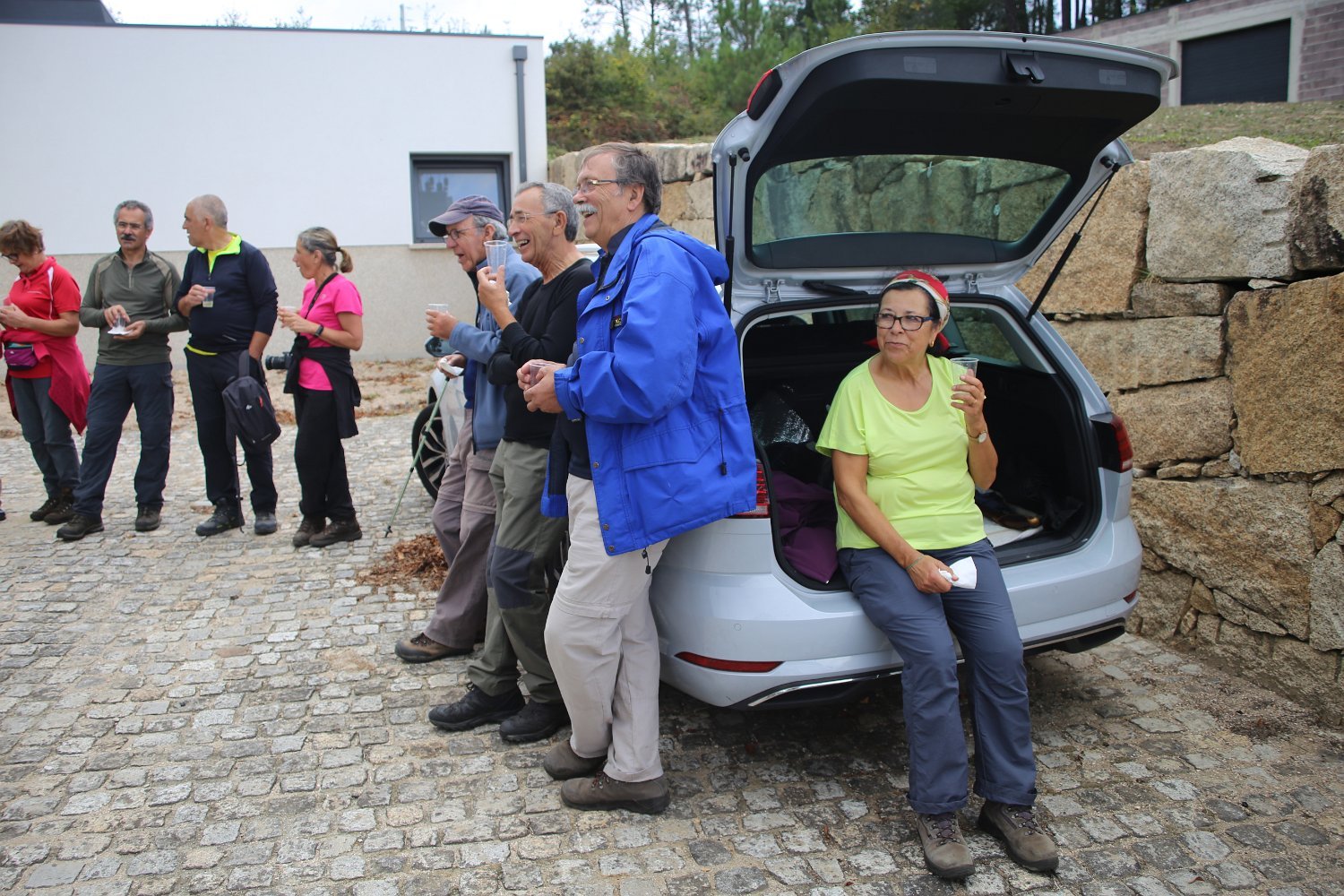 Cá fora esperava-nos uma surpresa, pois o aniversariante Joaquim Abreu montou uma banca defronte do cemitério, com bolo de aniversário, vinho e espumante para mais uma celebração entre todos. Mais cantoria para o “apaga as velas” com belos momentos de camaradagem que continuaram depois em Dém no Café Capela, em que o “Cocas” não quis ficar atrás e também nos brindou com outro bolo de aniversário, regado com espumante.