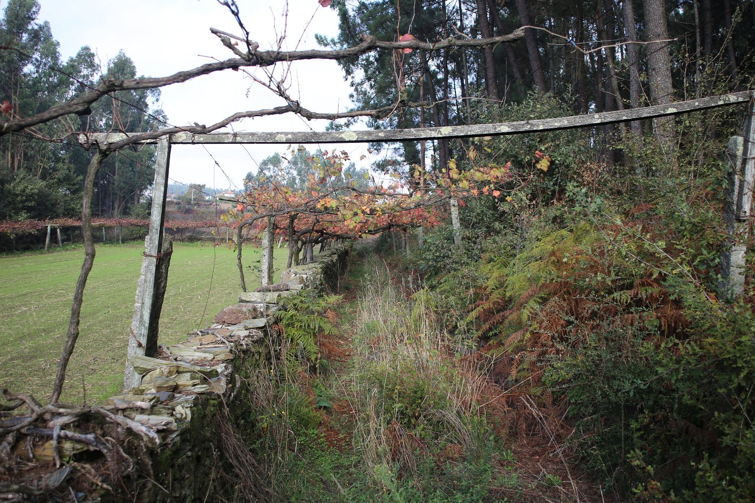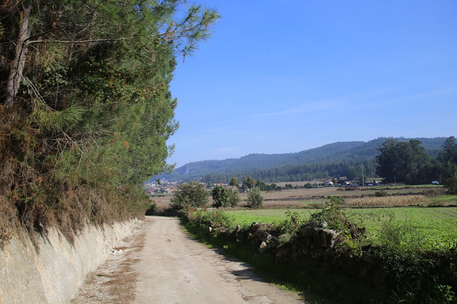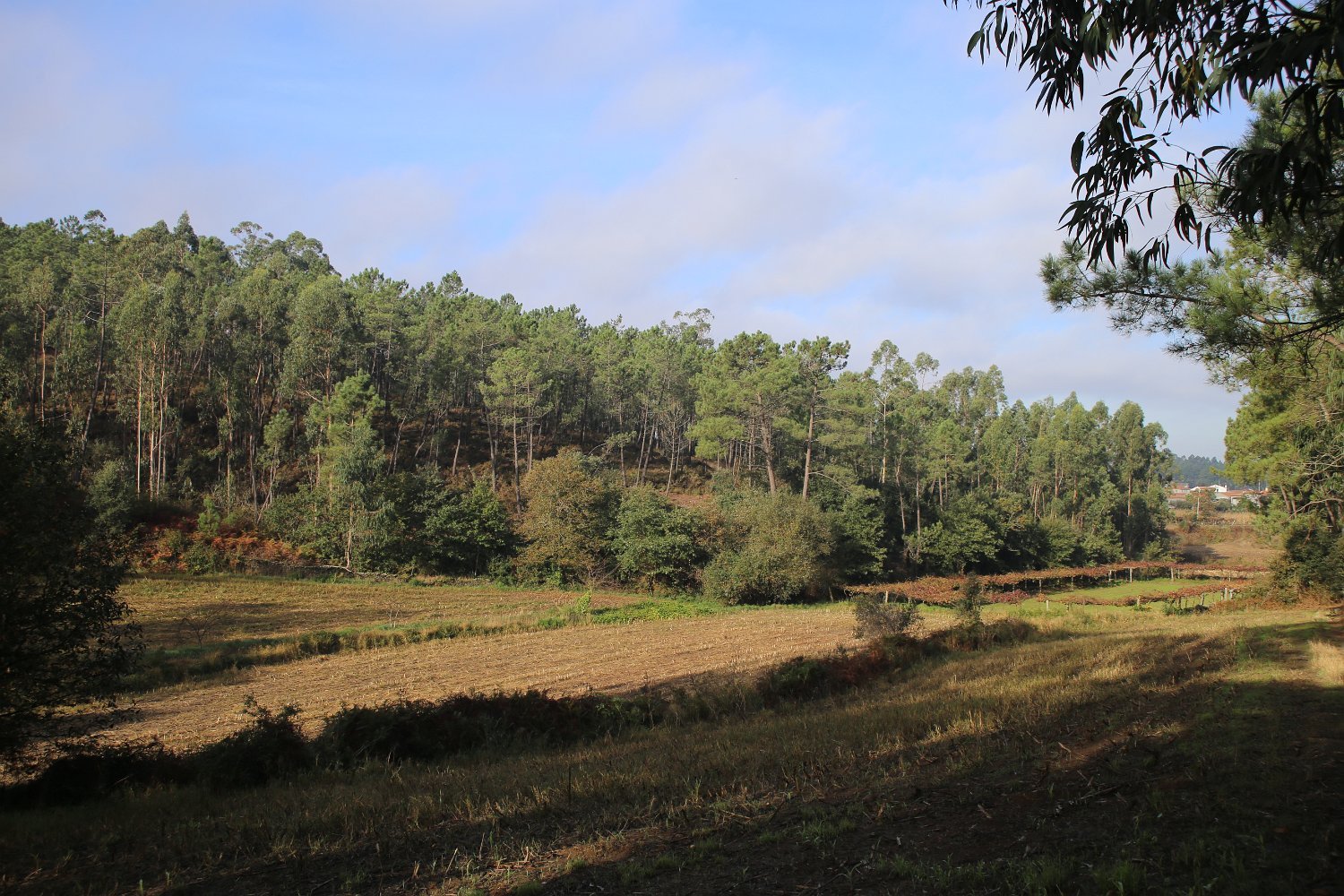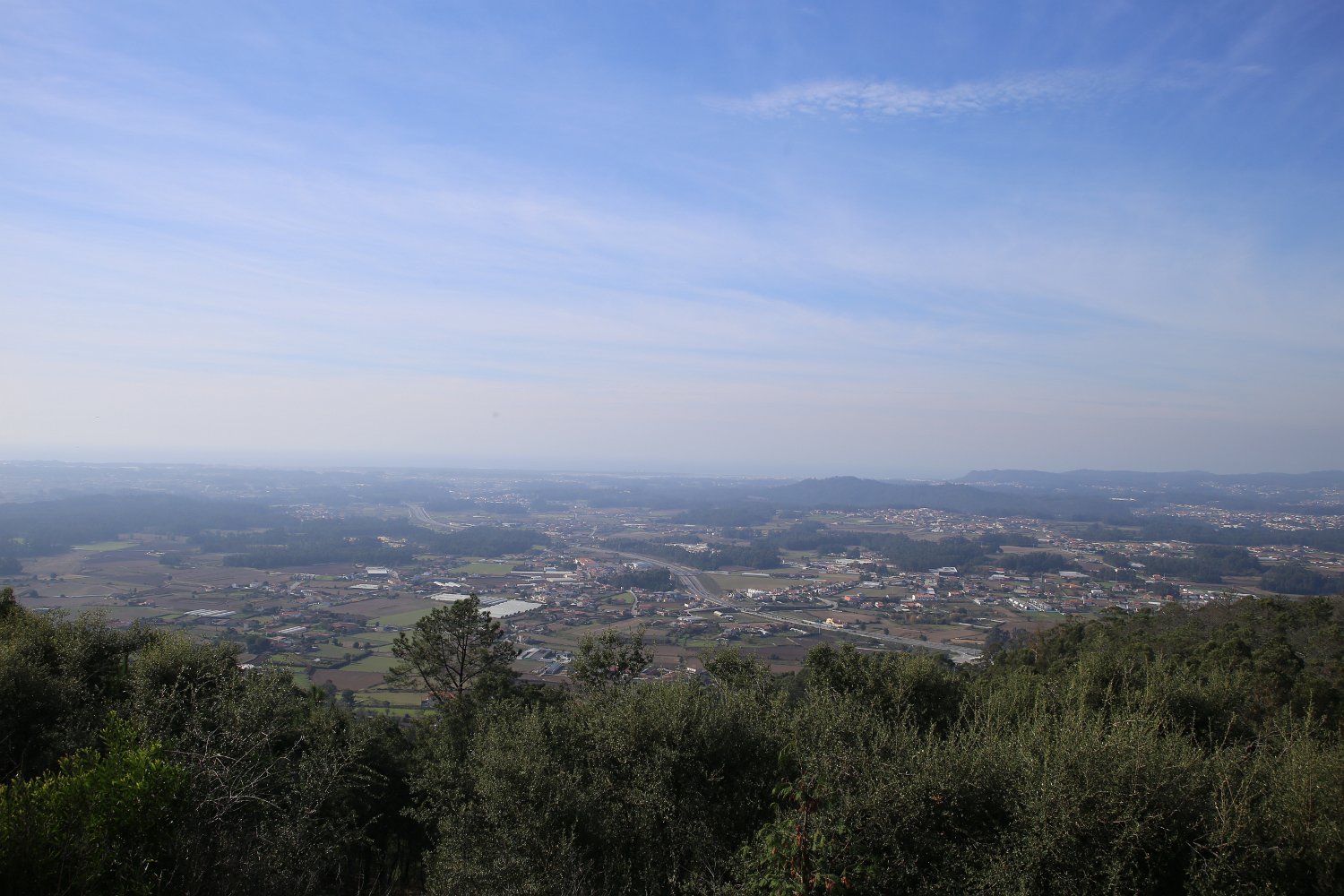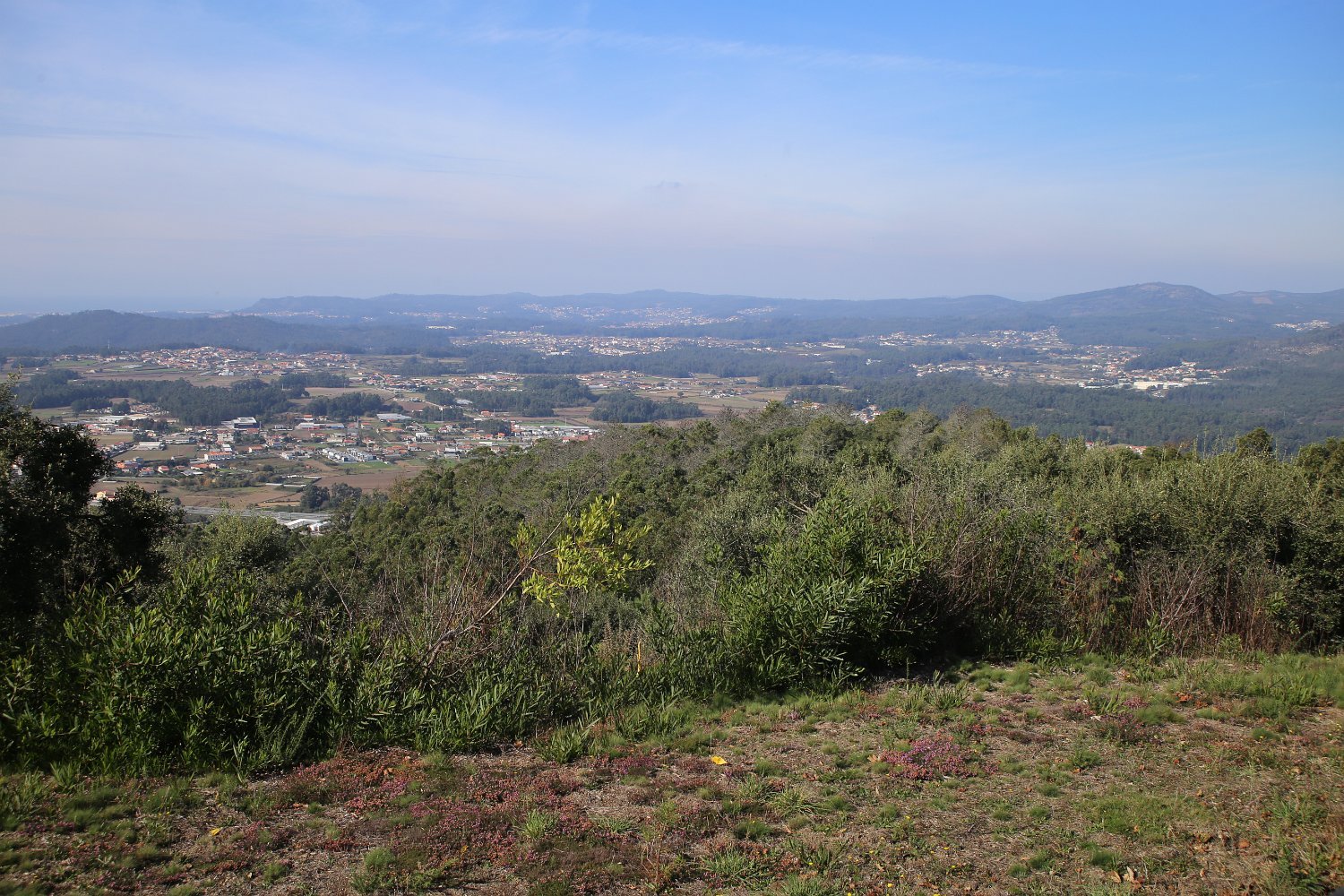 Depois de breve reorientação tomamos a “Rua da Via Romana” e cruzamos a bom ritmo os vastos e férteis terrenos agrícolas deste vale. Seguimos para inicialmente para “Bouça-Milhazes” e depois infletimos para “Senra-Milhazes”, onde iniciamos a subida do “Monte da Franqueira”. Foi aqui que demos pela falta de dois companheiros, que se atrasaram e seguiram em frente começando a subida do caminho florestal de Bouça-Milhazes.