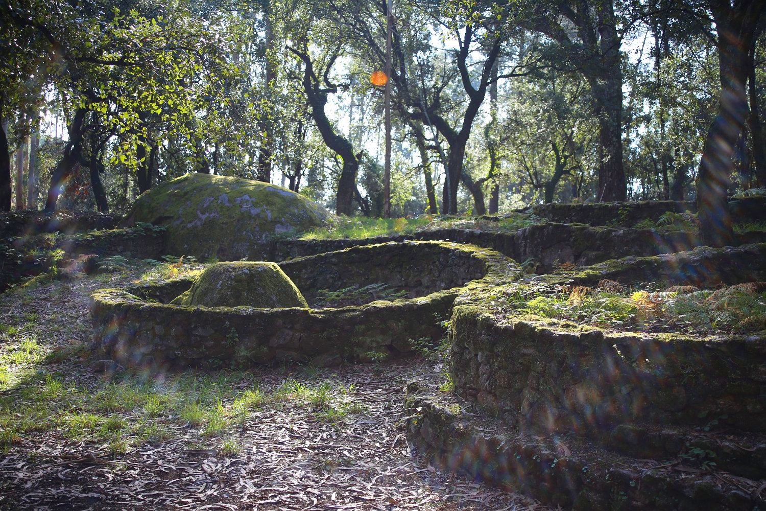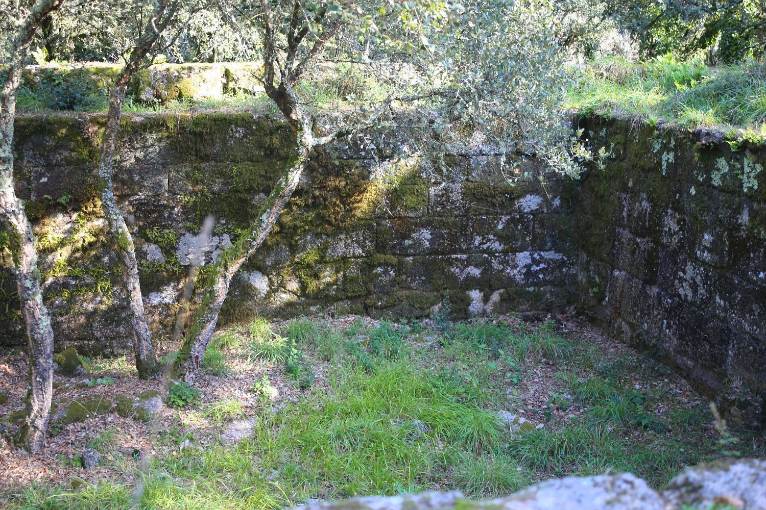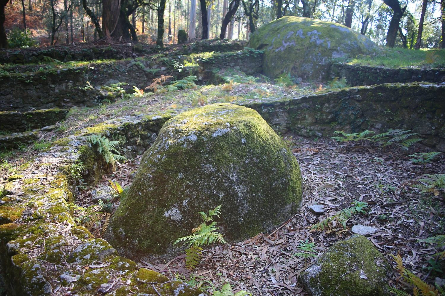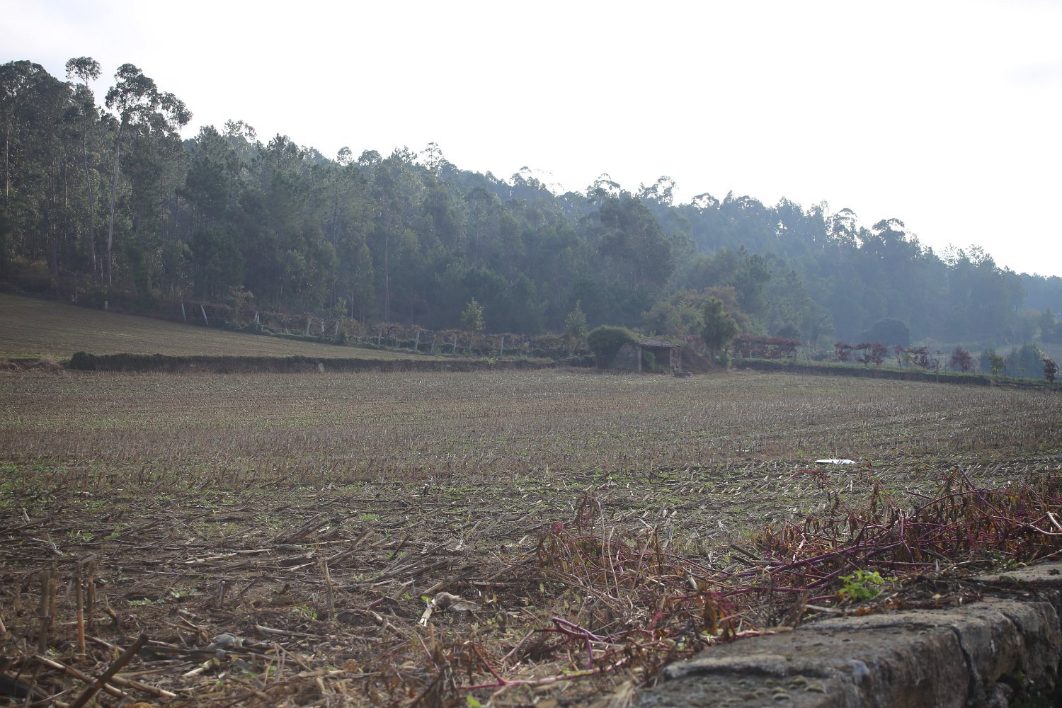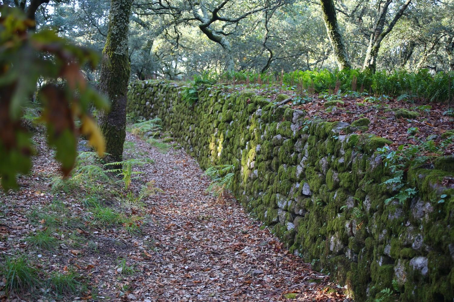 Depois de breve reorientação tomamos a “Rua da Via Romana” e cruzamos a bom ritmo os vastos e férteis terrenos agrícolas deste vale. Seguimos para inicialmente para “Bouça-Milhazes” e depois infletimos para “Senra-Milhazes”, onde iniciamos a subida do “Monte da Franqueira”. Foi aqui que demos pela falta de dois companheiros, que se atrasaram e seguiram em frente começando a subida do caminho florestal de Bouça-Milhazes.