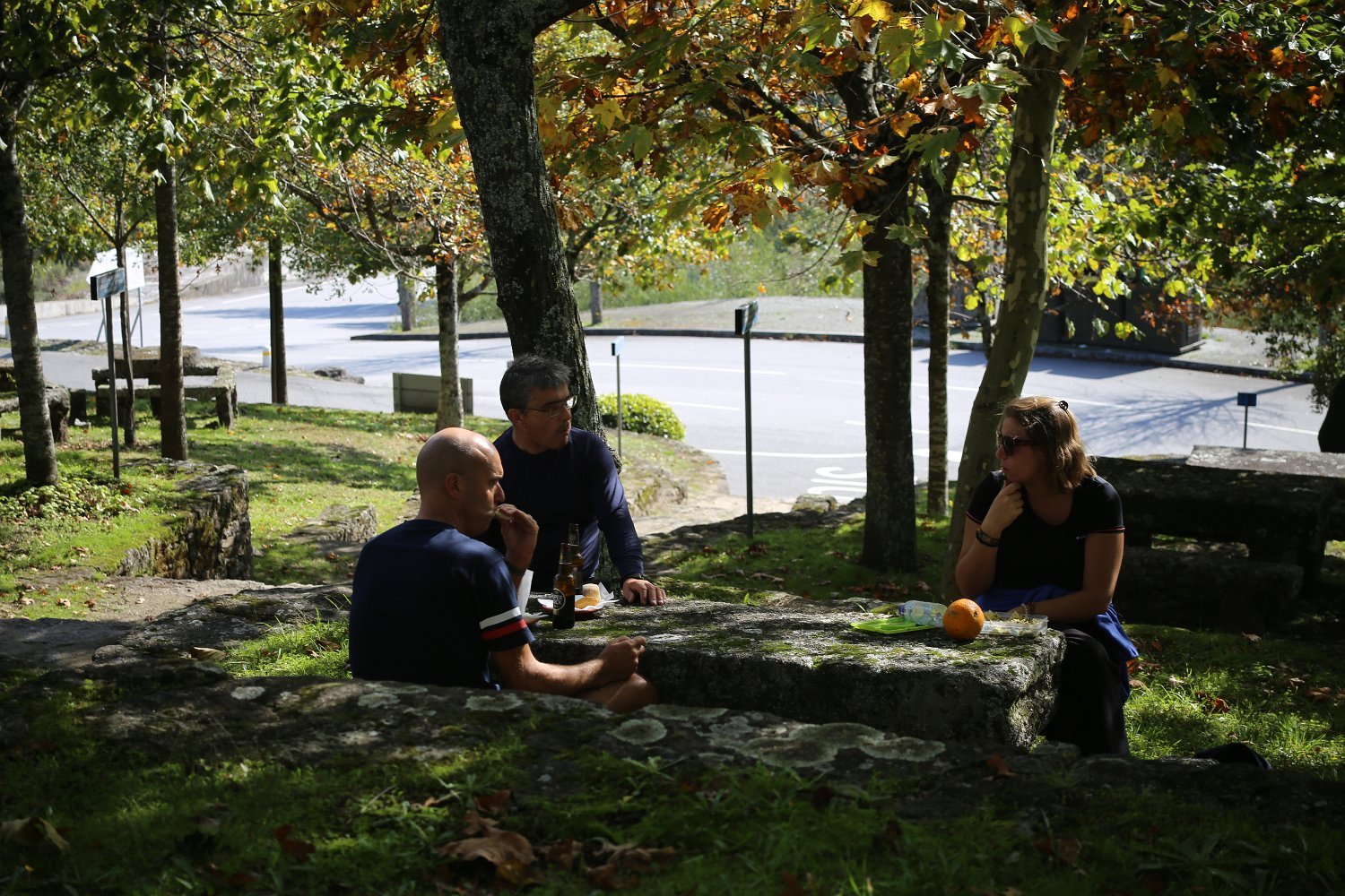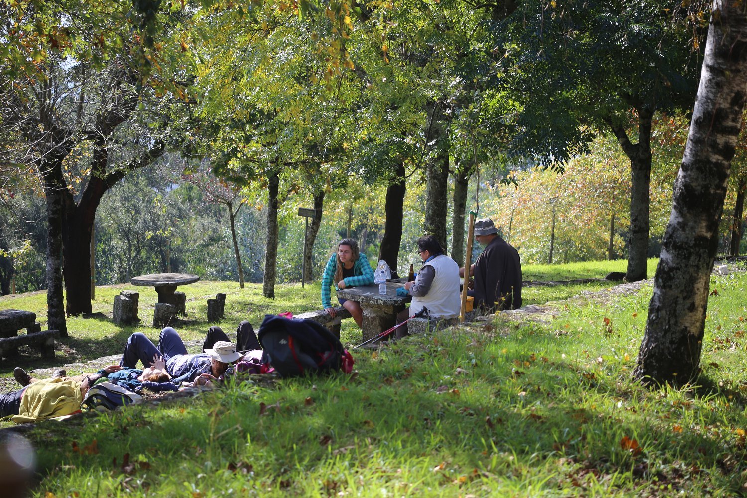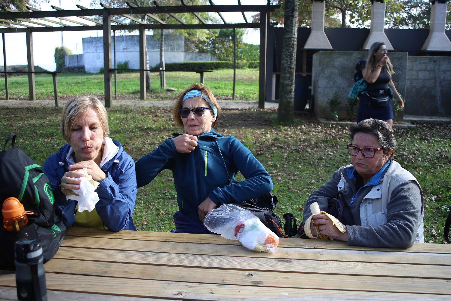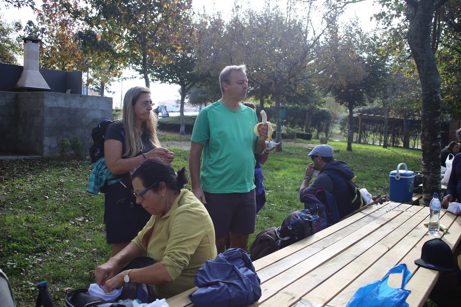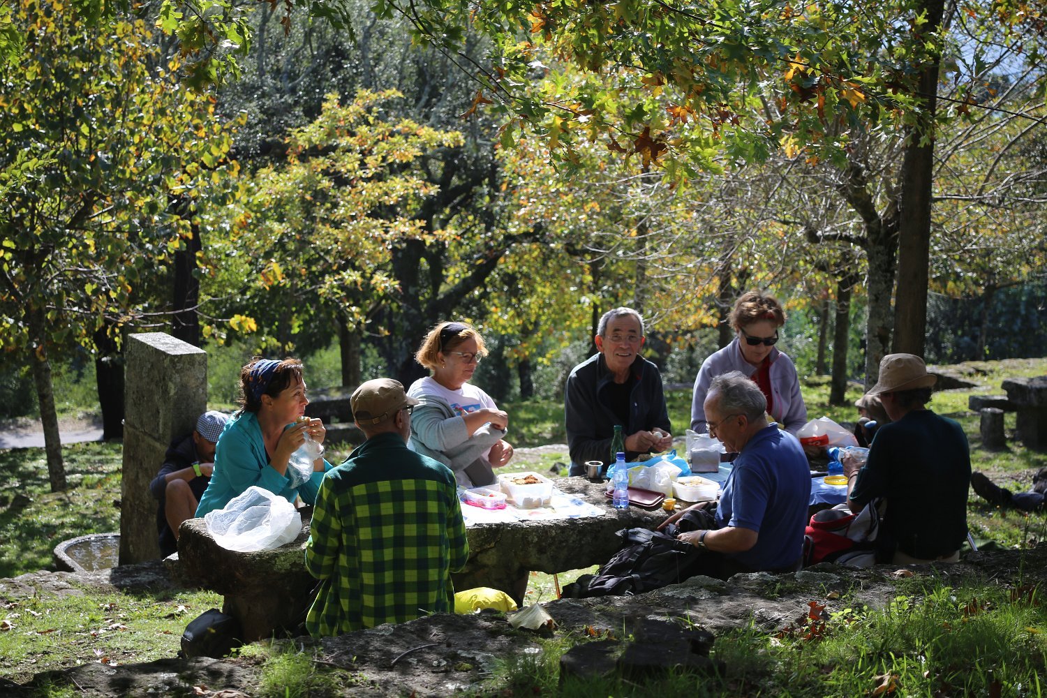 Após o reagrupamento com os companheiros que aí nos esperavam, fomos almoçar juntos no Parque de Merendas do santuário, onde fizemos a já tardia refeição nas mesas de pedra do merendeiro, desfrutando do tépido soalheiro outonal.