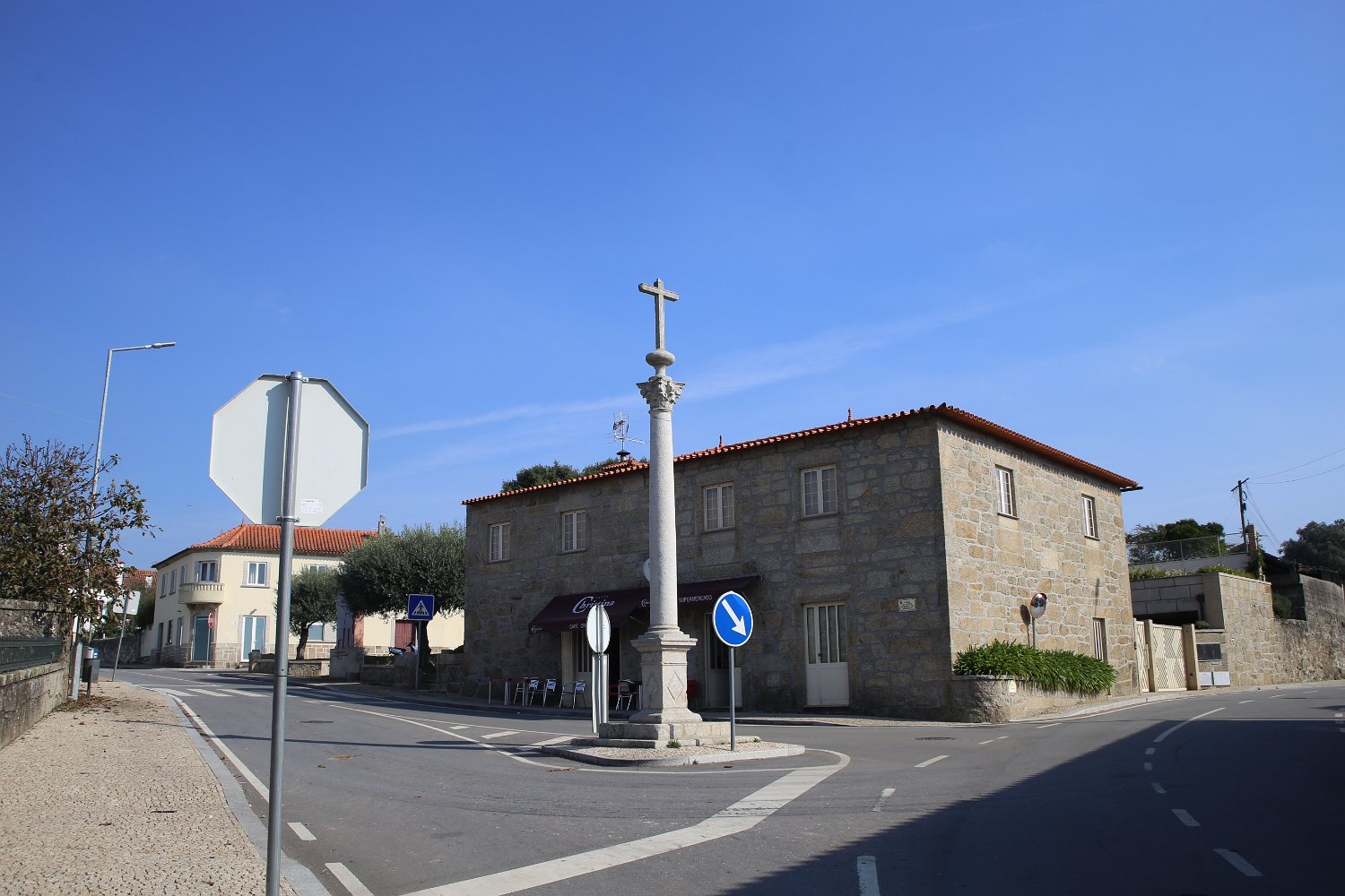 Mais à frente, fronteiro ao “Cruzeiro Paroquial”, de alta coluna com capitel coríntio, datado de 1733, ergue-se o “Portal da Quinta dos Pedregais”, imponente pórtico estilo barroco joanino, encimado com o escudo com as armas em chefe dos Farias. Este pórtico fez parte do antigo solar dos Farias de Barcelos ou Alcaides de Faria.