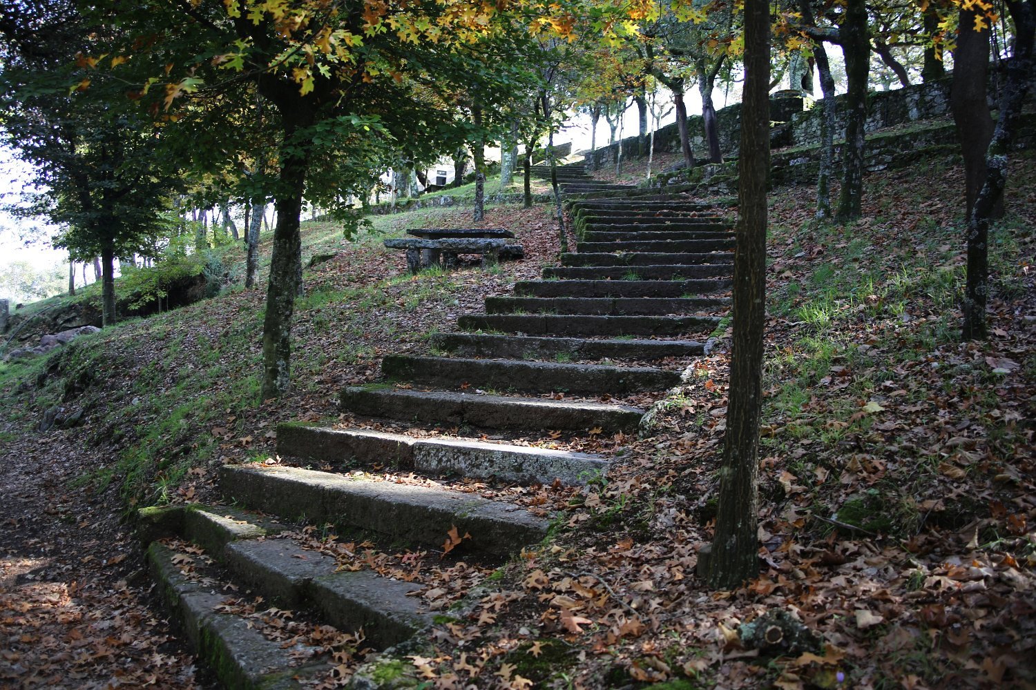 A subida do monte veio a revelar-se bastante difícil, quer pelo forte pendor, quer pela dificuldade dos trilhos florestais que se encontram muito degradados e com muita pedra solta, o que complicou muito a progressão. Mas lá fomos subindo sempre até atingir a Rua Senhor da Fonte da Vida e depois seguir para o Santuário de Nª Srª da Franqueira.