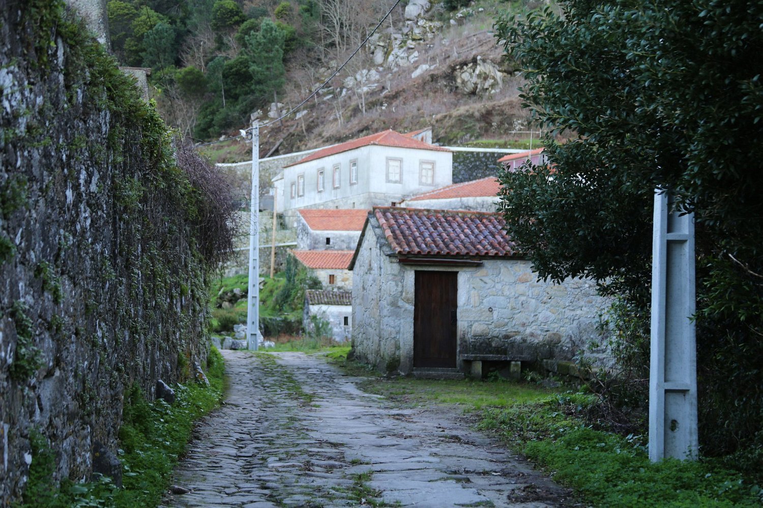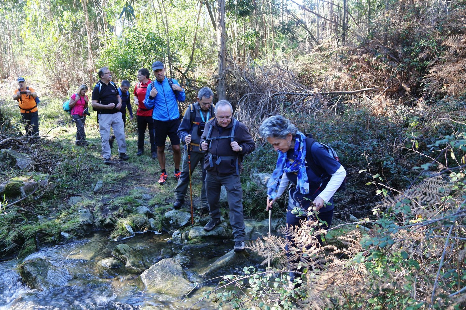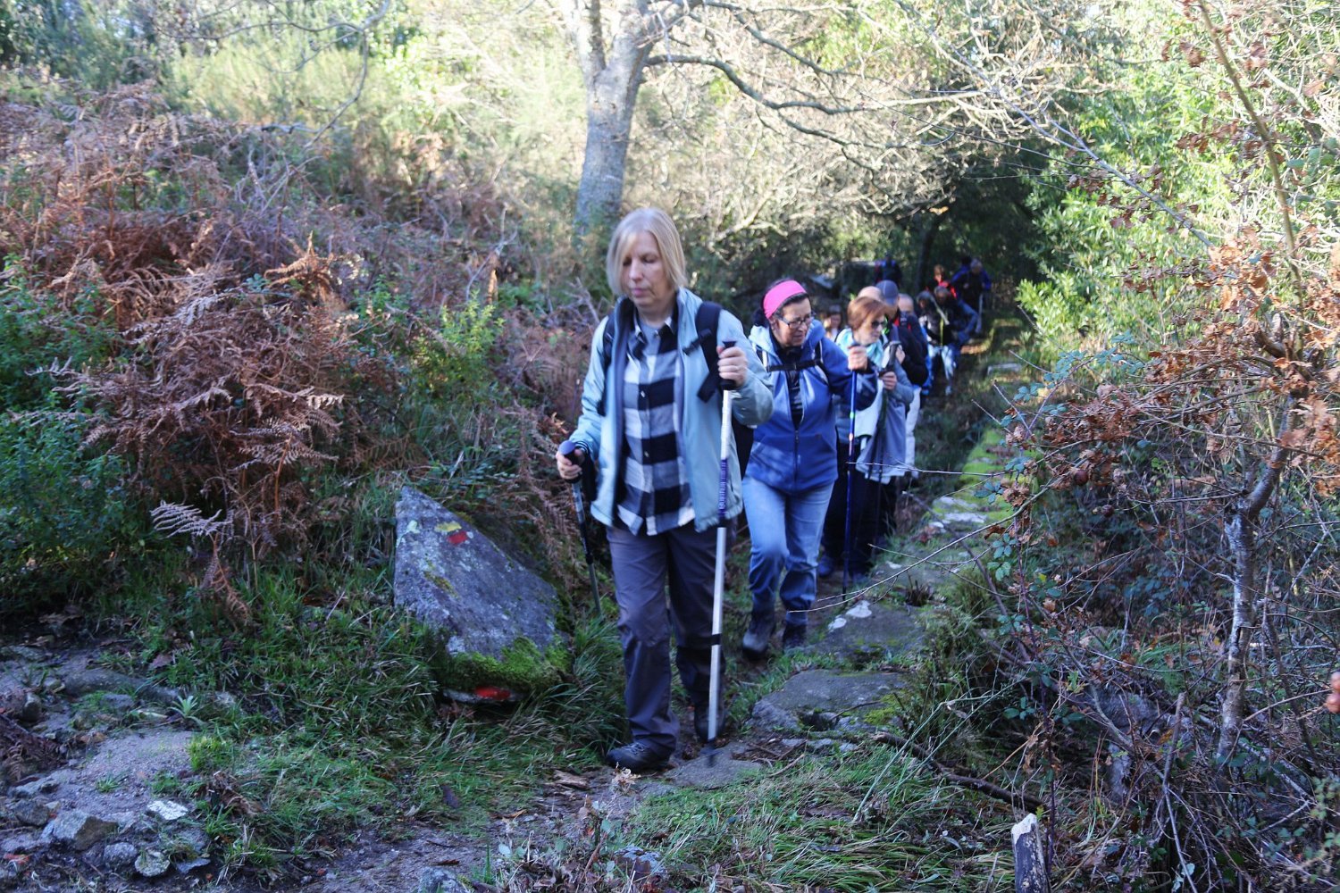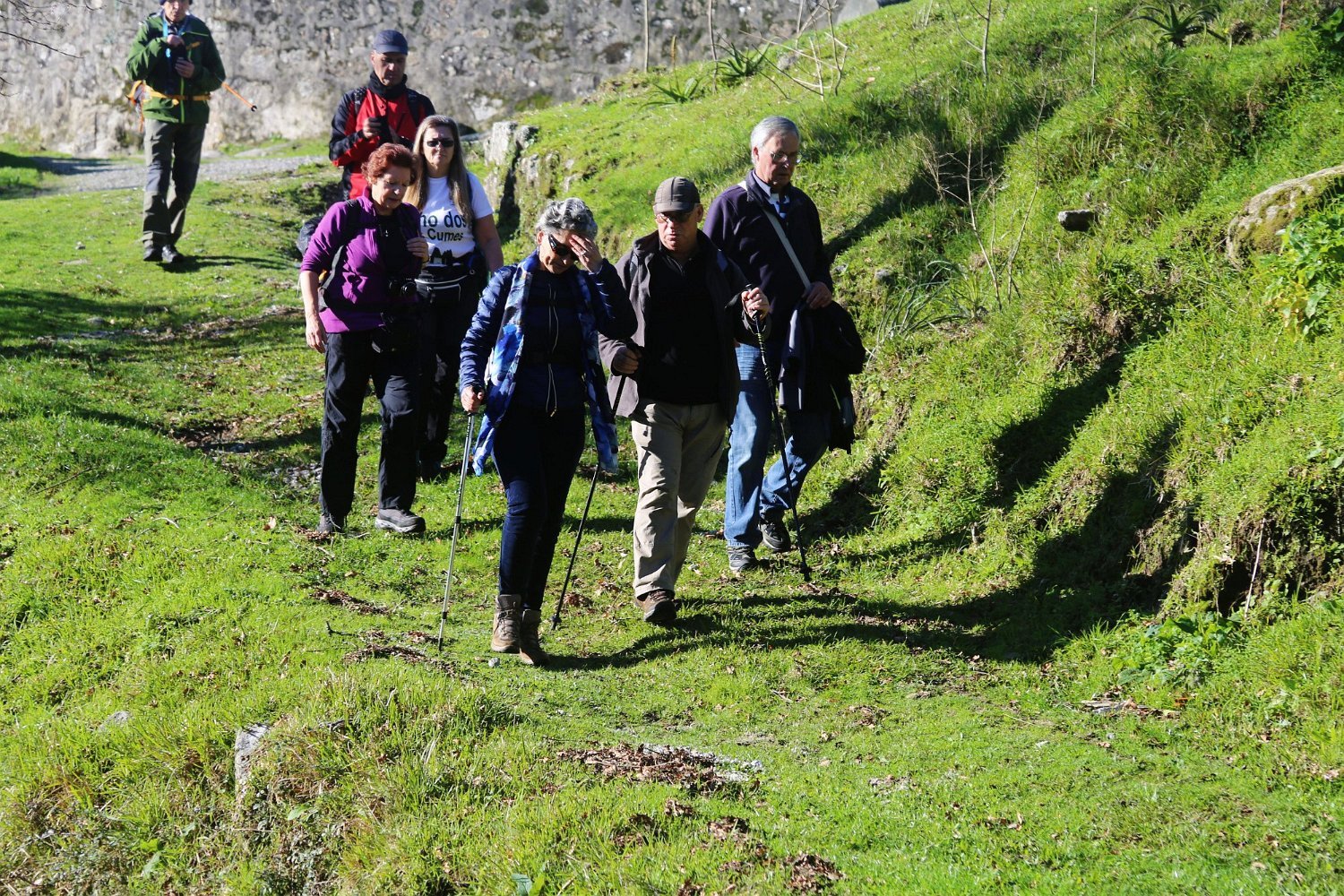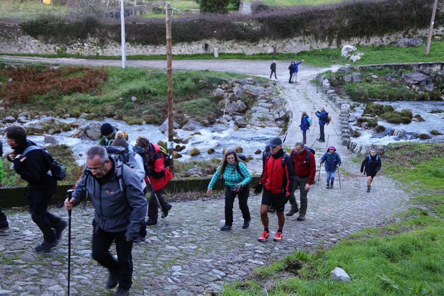 Começamos a subida do ribeiro do Pego, que atravessamos junto a importante conjunto de moinhos, uns em completa ruína perdidos no meio da vegetação, outros transformados em habitações, outros mais ou menos conservados.