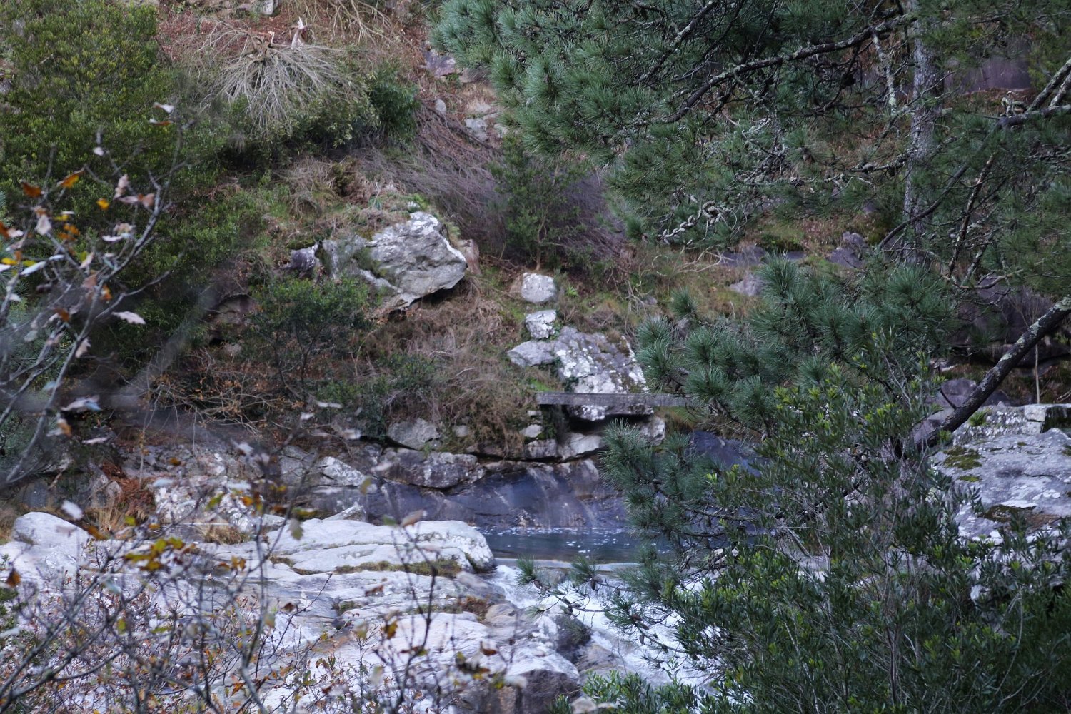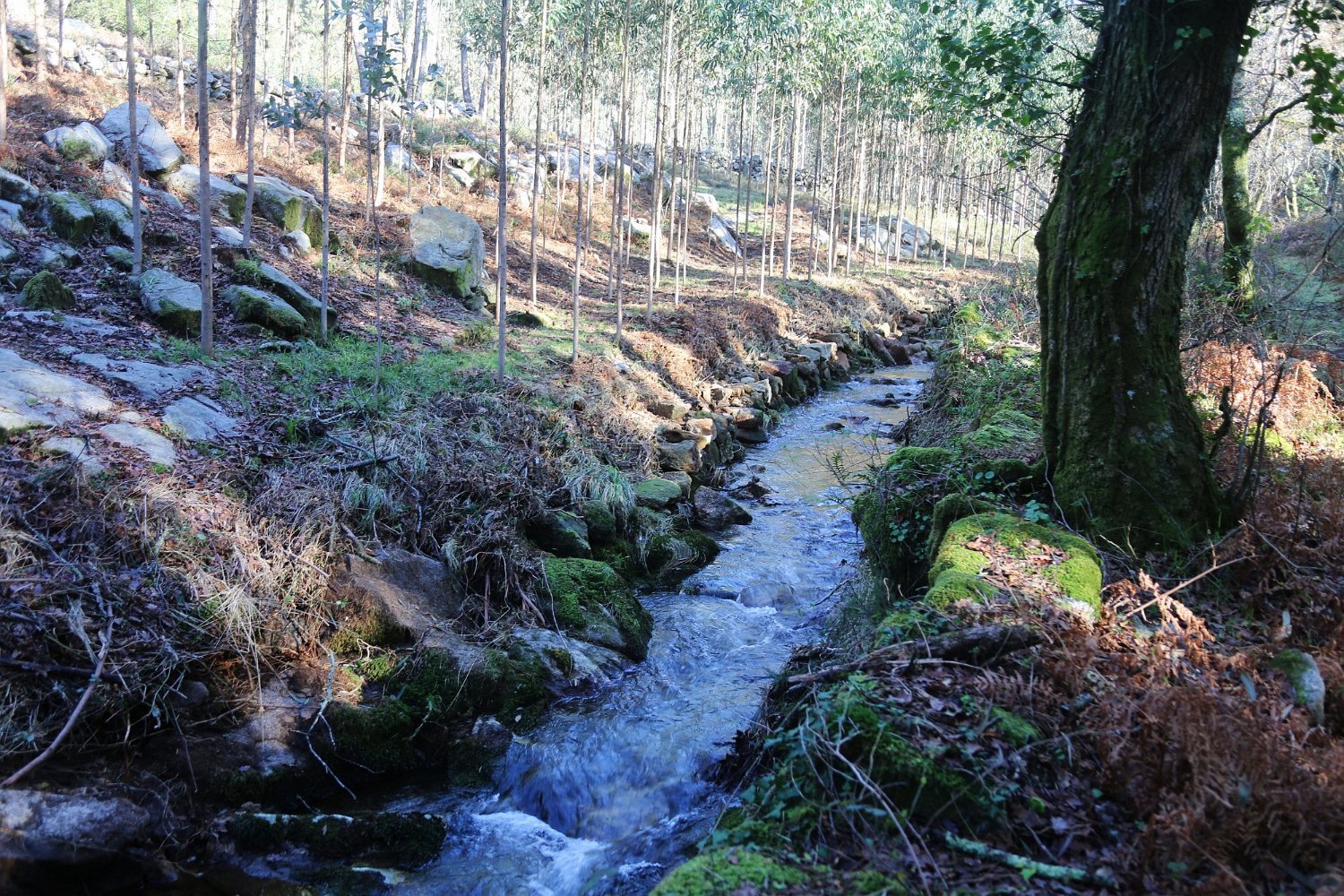 Com o ribeiro engrossado com a muita água das últimas chuvadas, não foi possível contornar com segurança a captação, pelo que optamos por subir a corta-mato para um caminho superior.
