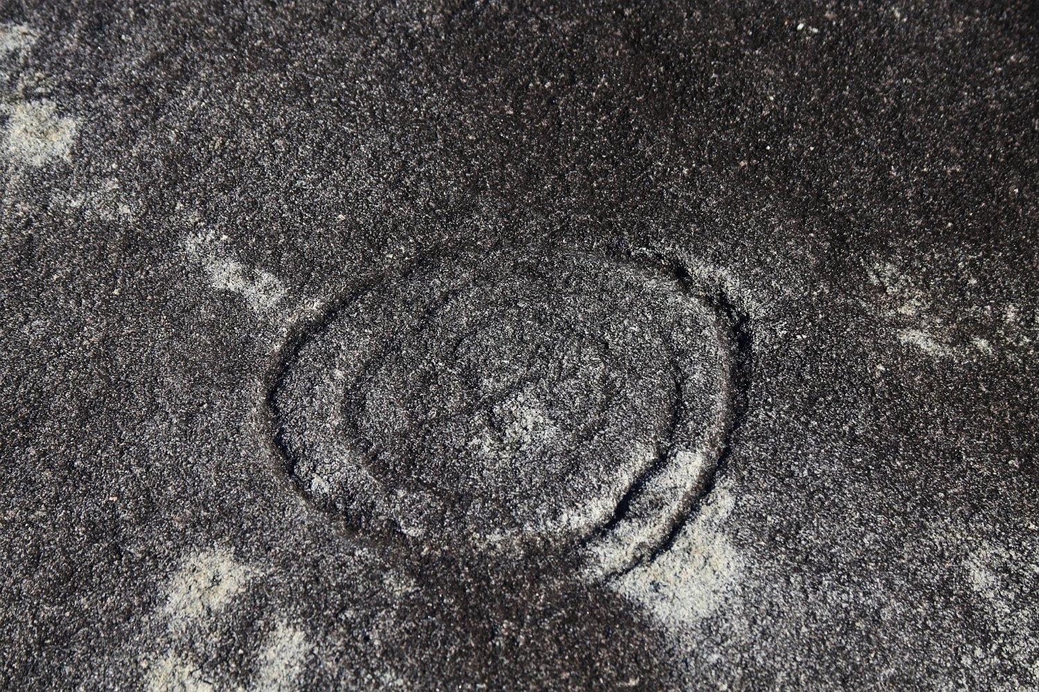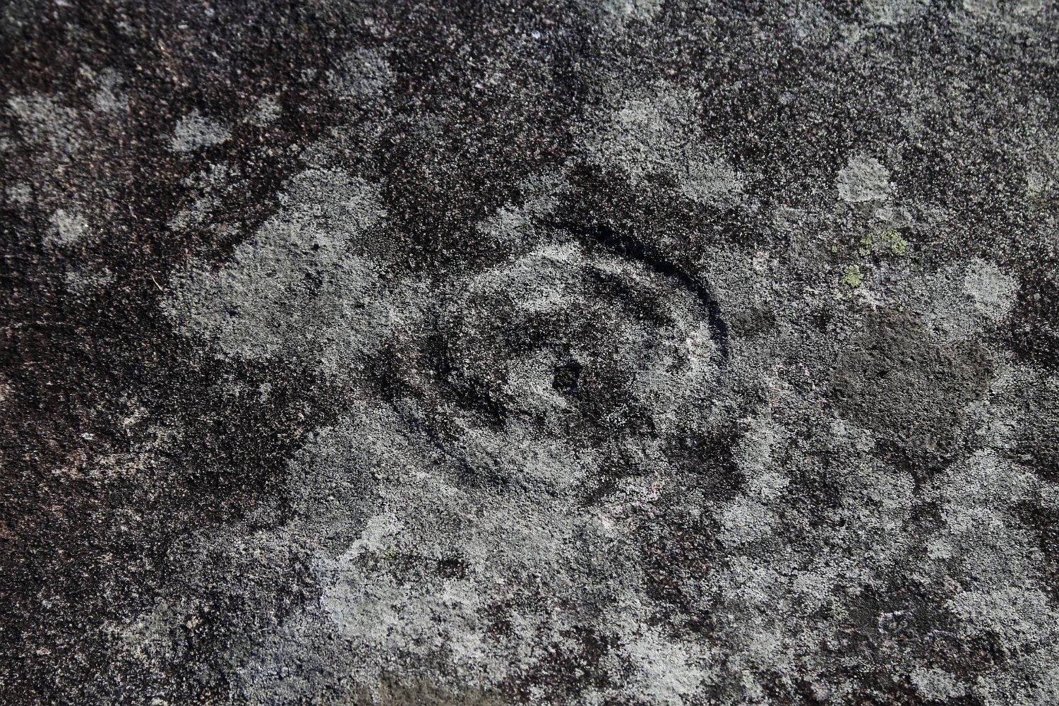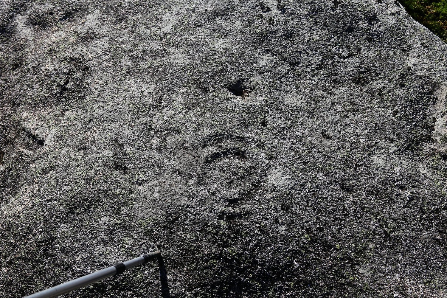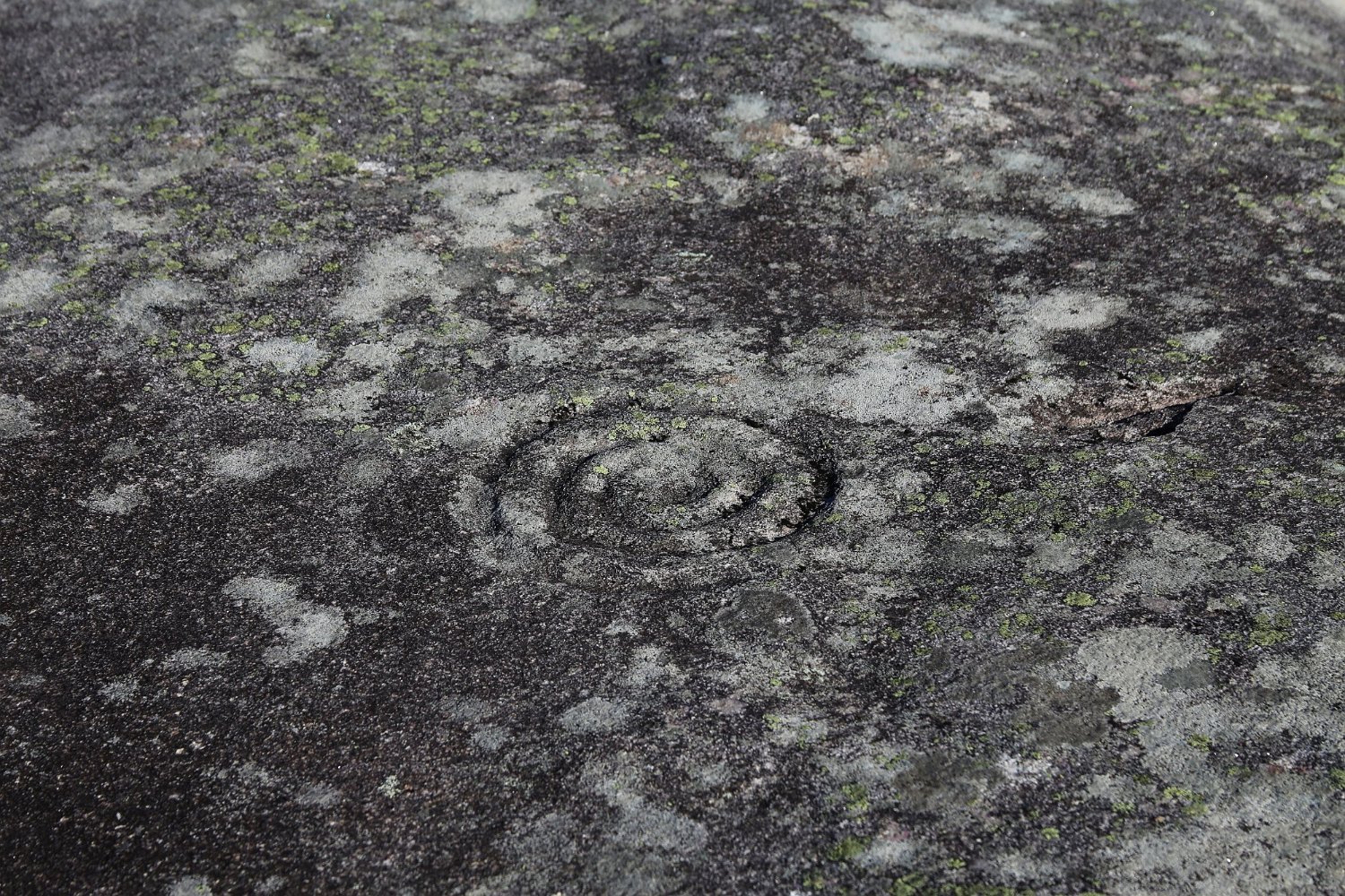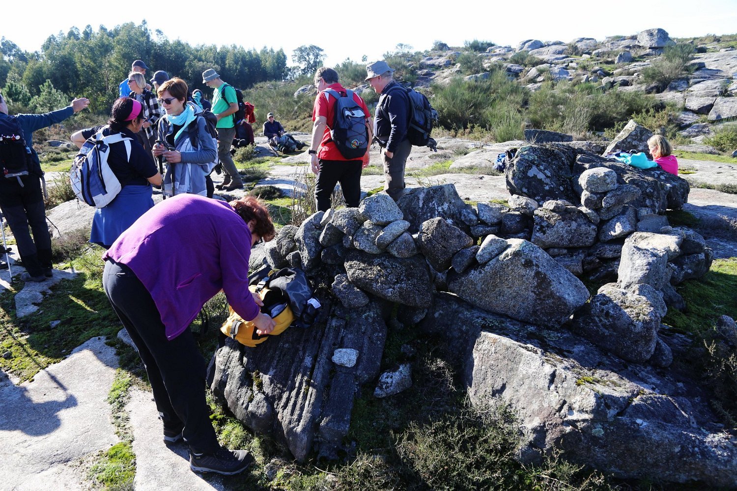 Na proximidade cruzamos o “Caminho do Monte” e fomos visitar o “Petroglifo de S. Mamede”, conjunto de gravuras rupestres dispostas em triângulo, esculpidas sobre uma enorme laje. Segundo alguns, a estas imagens estaria associado o culto da serpente.