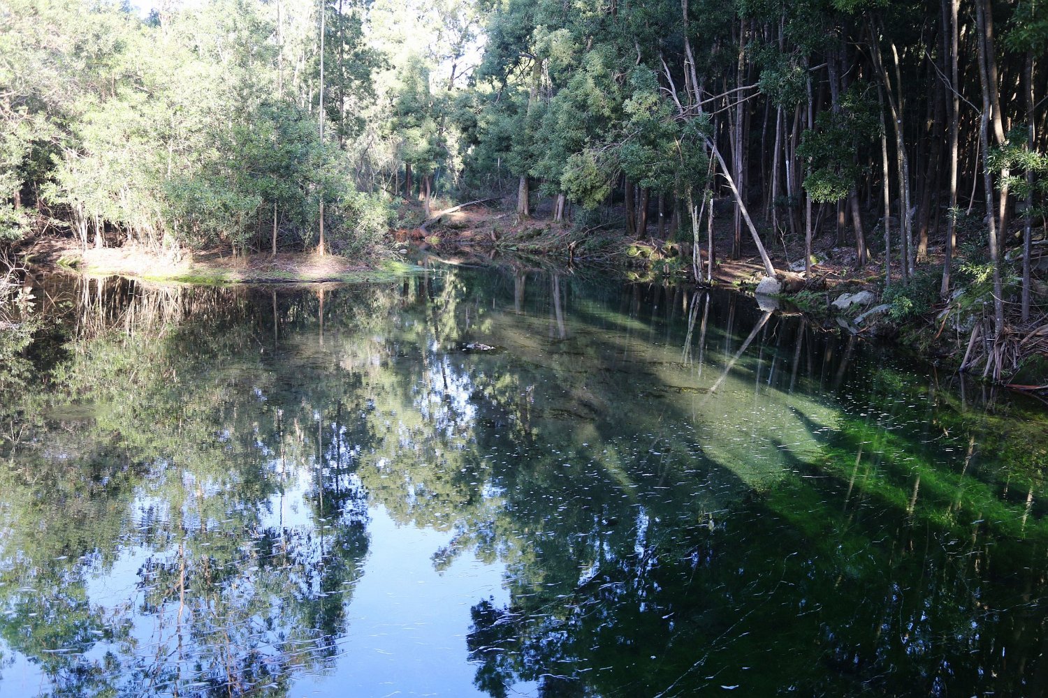 Do outro lado da escarpa, vemos a difícil calçada de acesso a vários moinhos arruinados e mais à frente o célebre “Poço Negro”, onde o ribeiro do Pego descansa brevemente as suas águas antes de se precipitar, numa última cascata, na direção do oceano. É um local muito procurado no Verão para banhos, mas que agora mete respeito pelo caudal do ribeiro, inviabilizando qualquer de travessia.