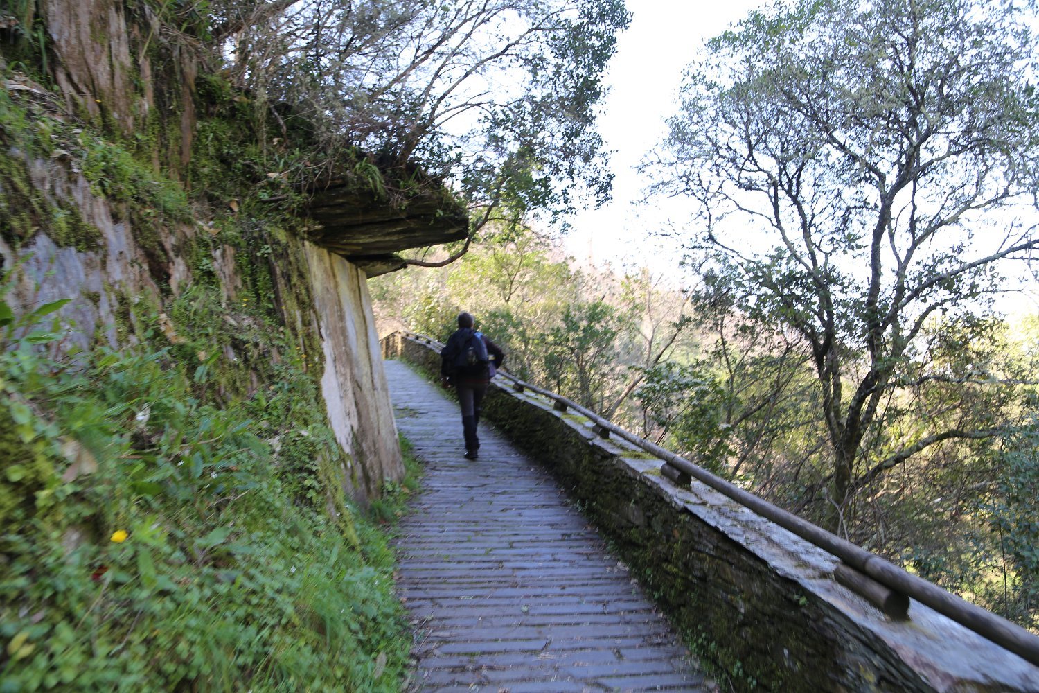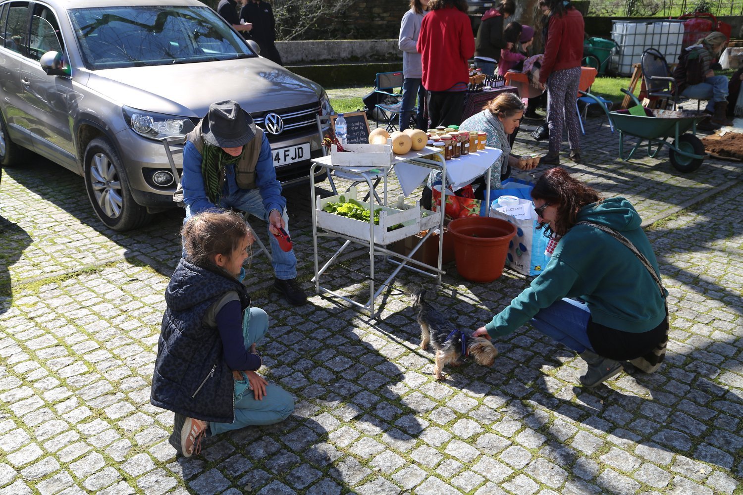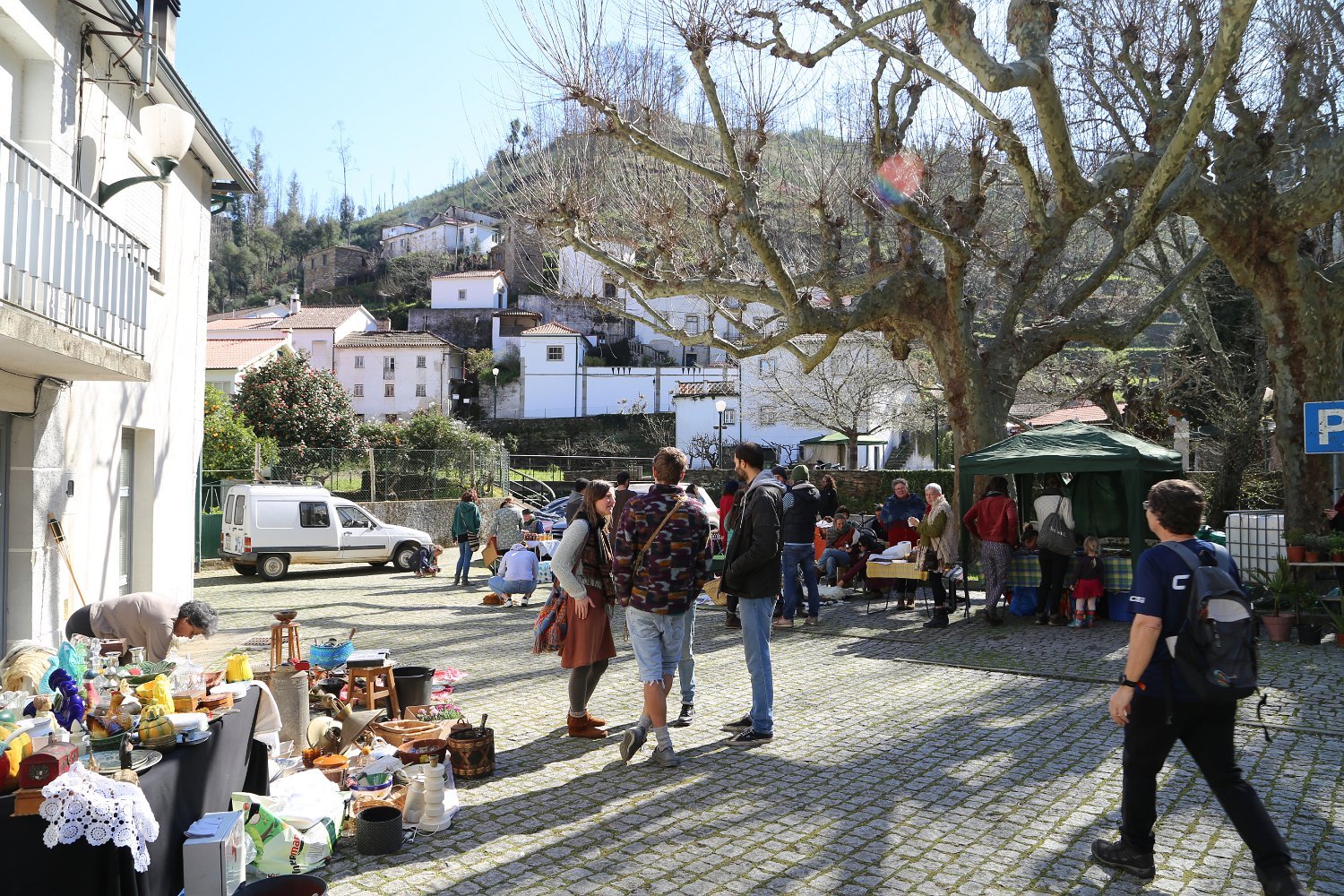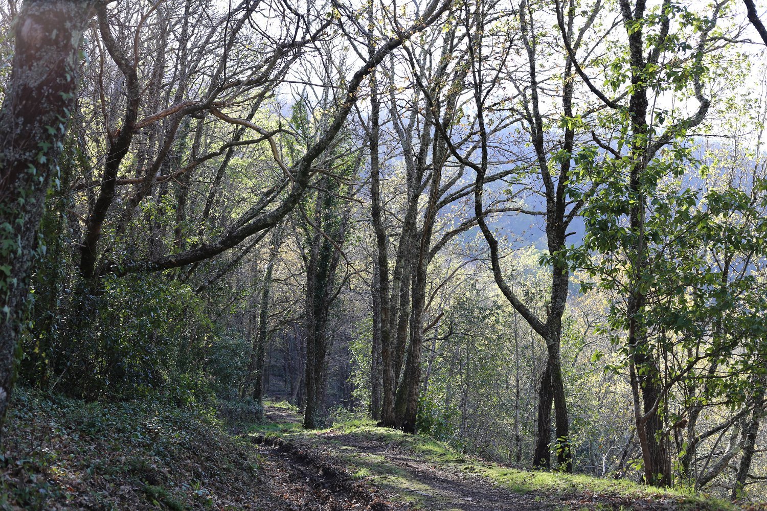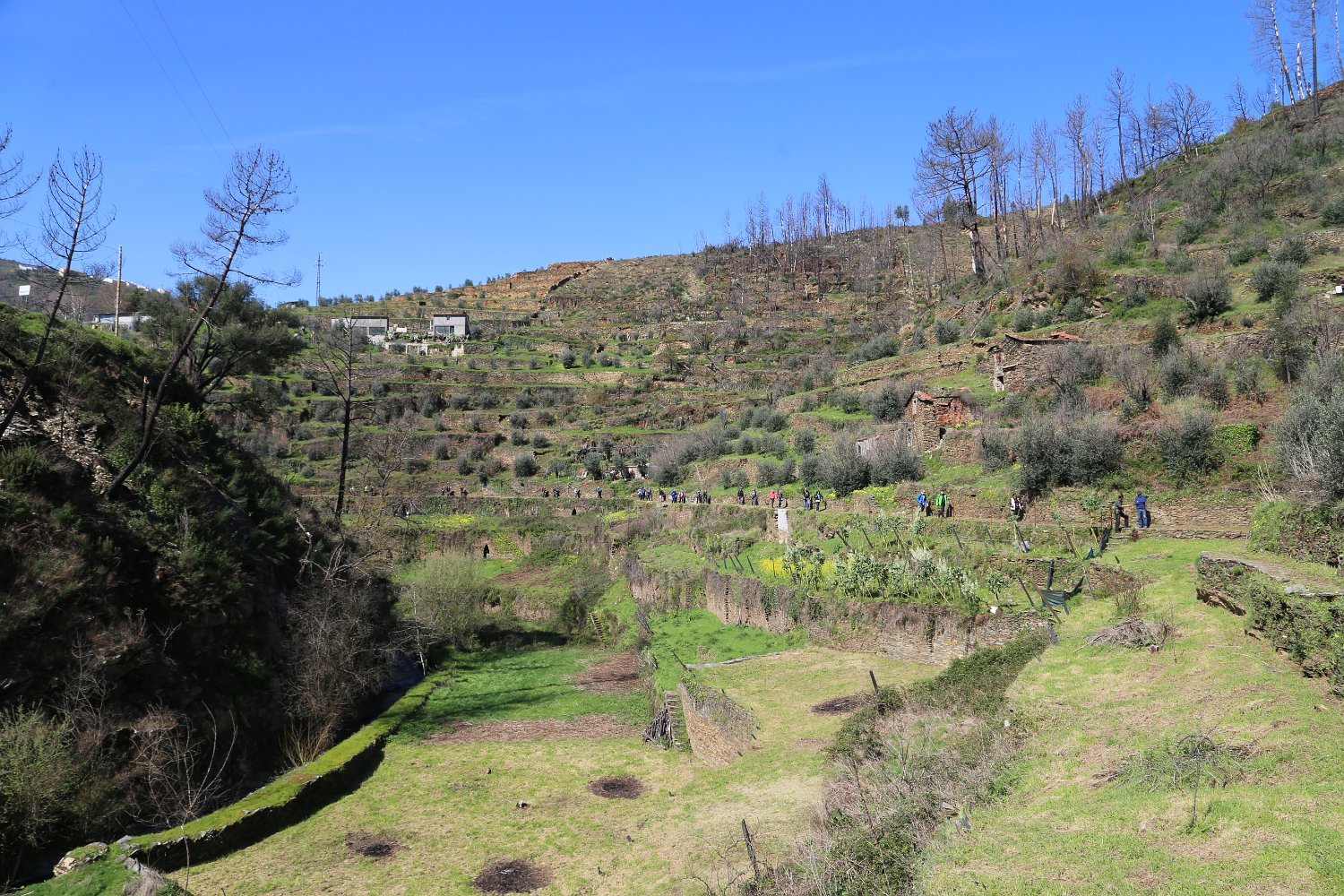 Deixamos para trás a aldeia de Benfeita e começamos a subir a margem direita da ribeira da Mata usando o Caminho de Xisto, estreito trilho que delimita antigos campos agrícolas, seguindo as curvas do rio, que aqui corre agitado apertado nas suas margens.