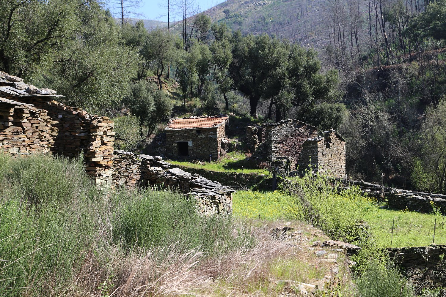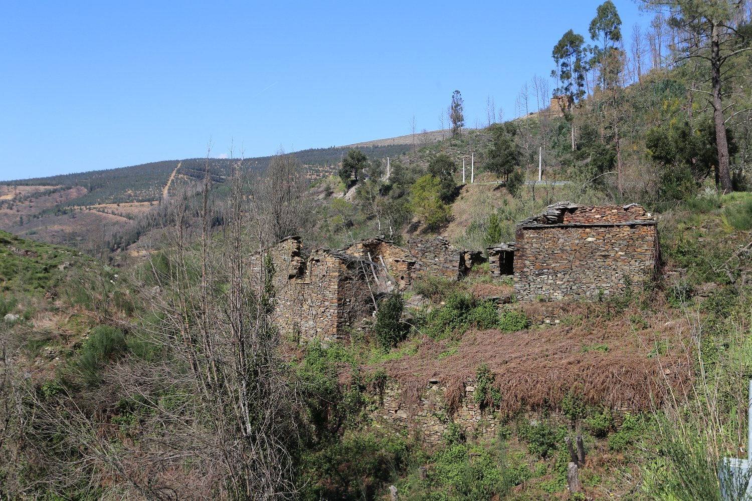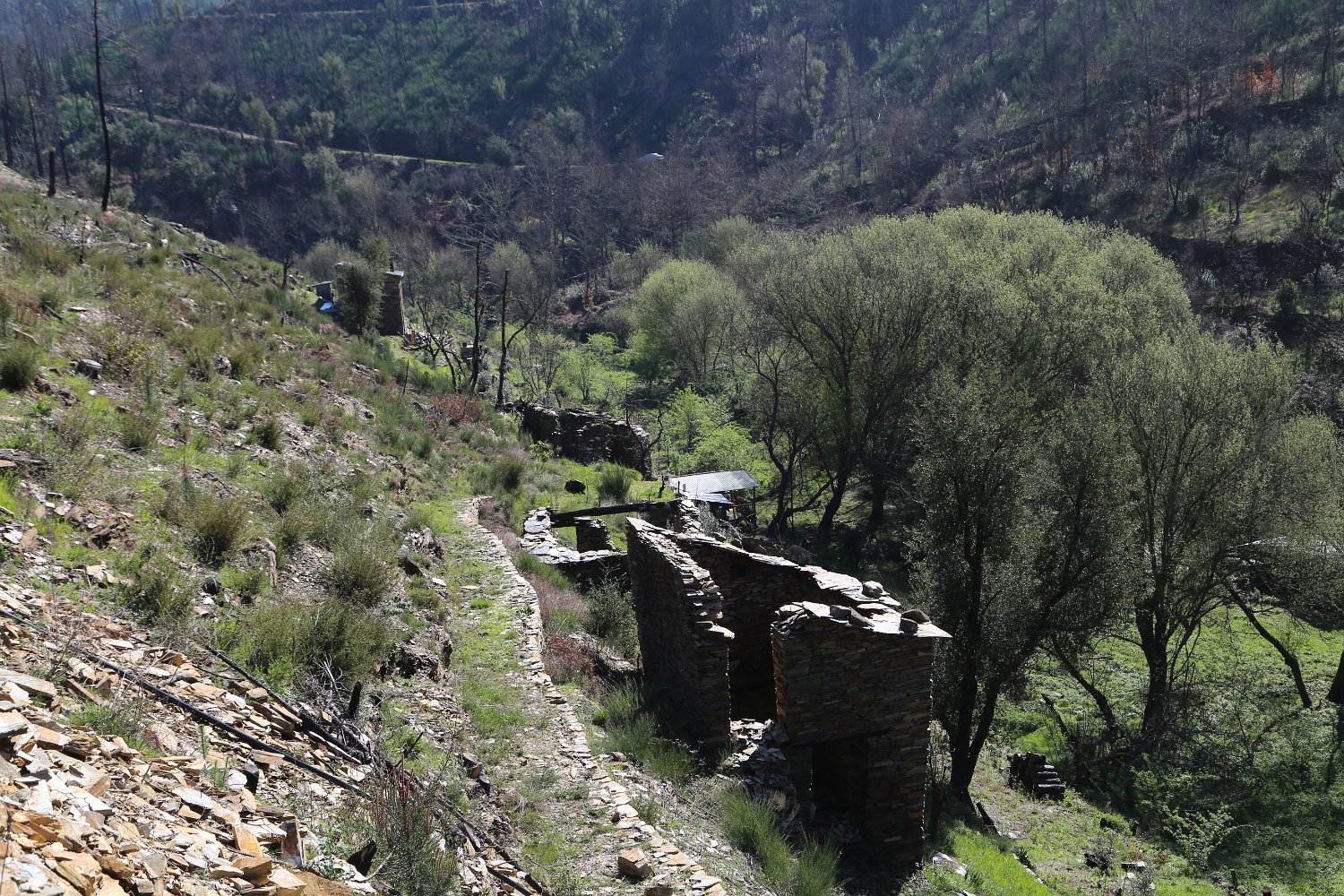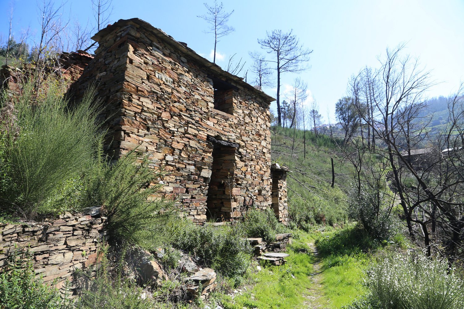 O declive da subida foi aumentando até um conjunto de construções de xisto onde cruzamos a ribeira da Mata, junto à confluência da ribeira da Margaraça com a ribeira da Abelheira, tendo de seguida iniciado a longa e ingreme subida para Pardieiros, aldeia que se situa dentro da zona da paisagem protegida da serra do Açor, na proximidade da Mata da Margaraça.