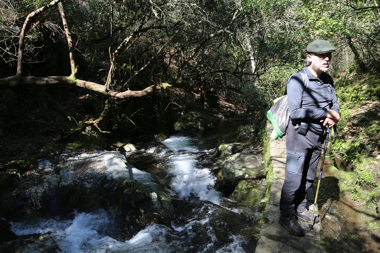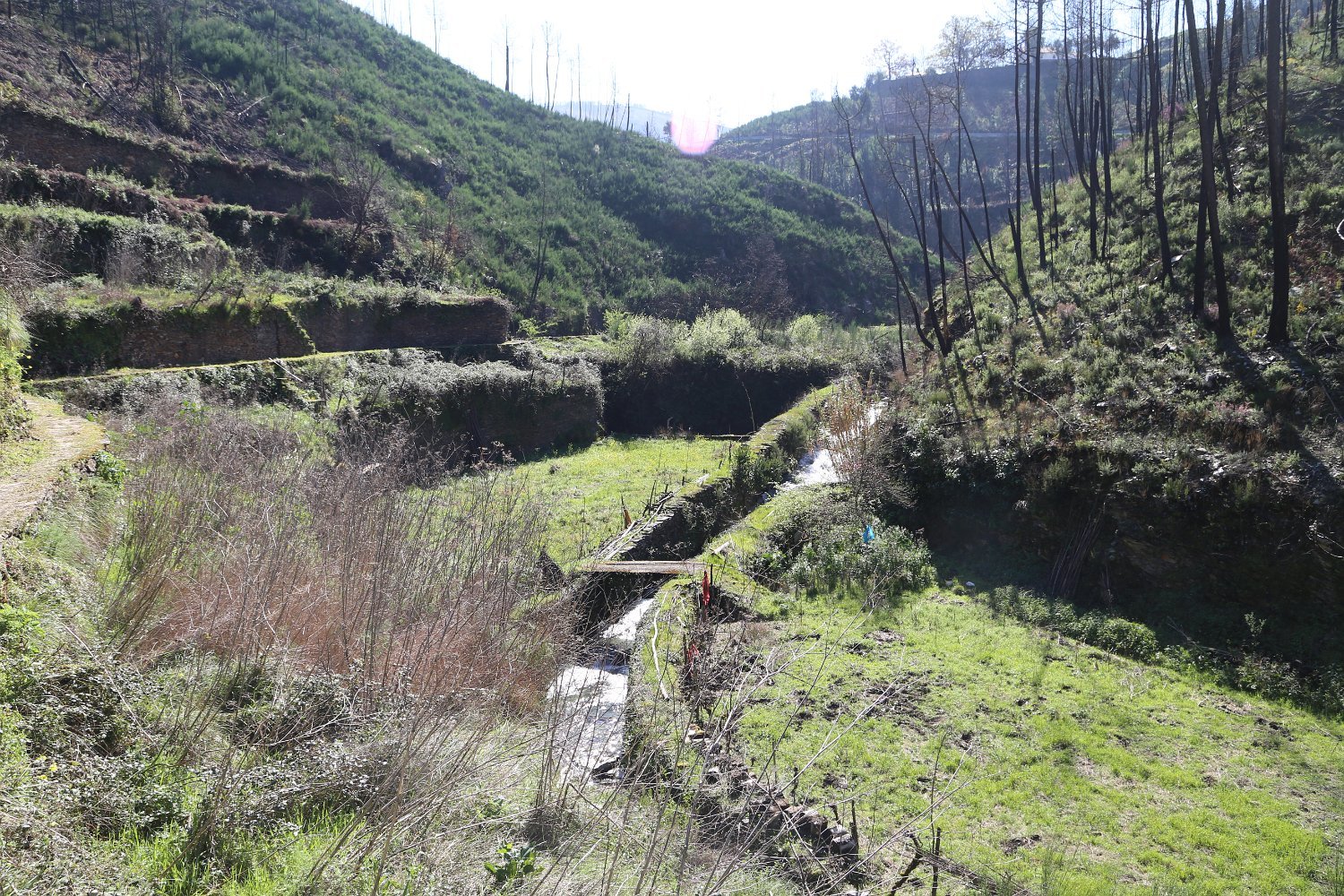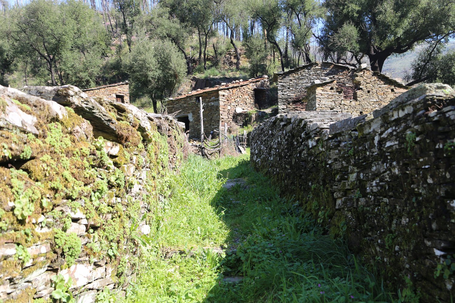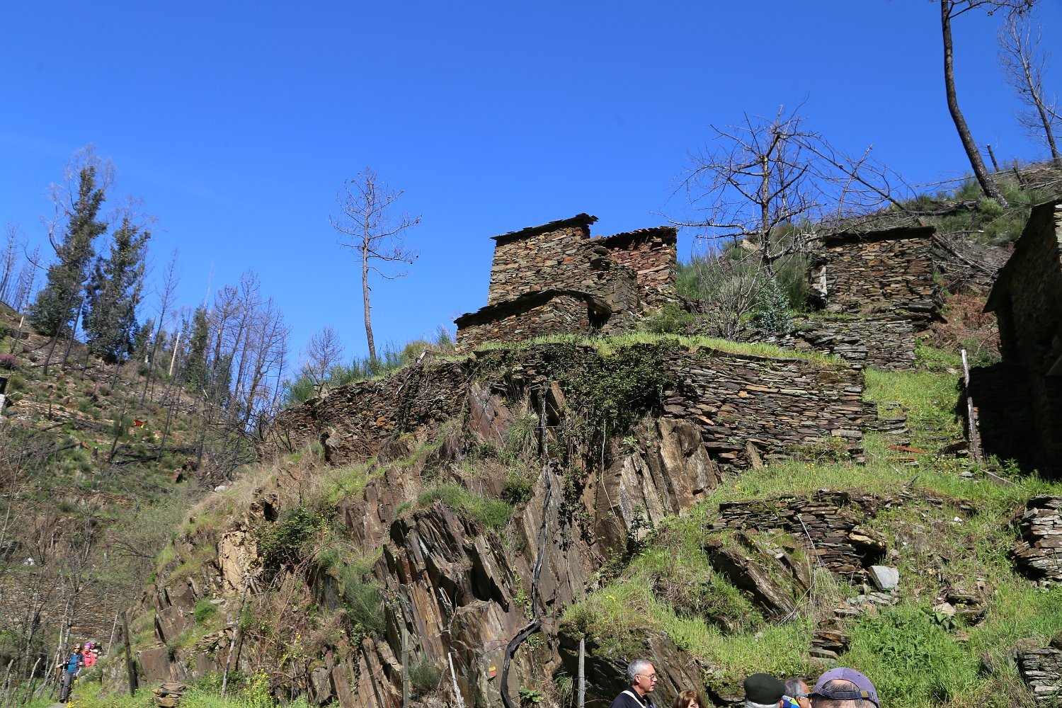 O declive da subida foi aumentando até um conjunto de construções de xisto onde cruzamos a ribeira da Mata, junto à confluência da ribeira da Margaraça com a ribeira da Abelheira, tendo de seguida iniciado a longa e ingreme subida para Pardieiros, aldeia que se situa dentro da zona da paisagem protegida da serra do Açor, na proximidade da Mata da Margaraça.