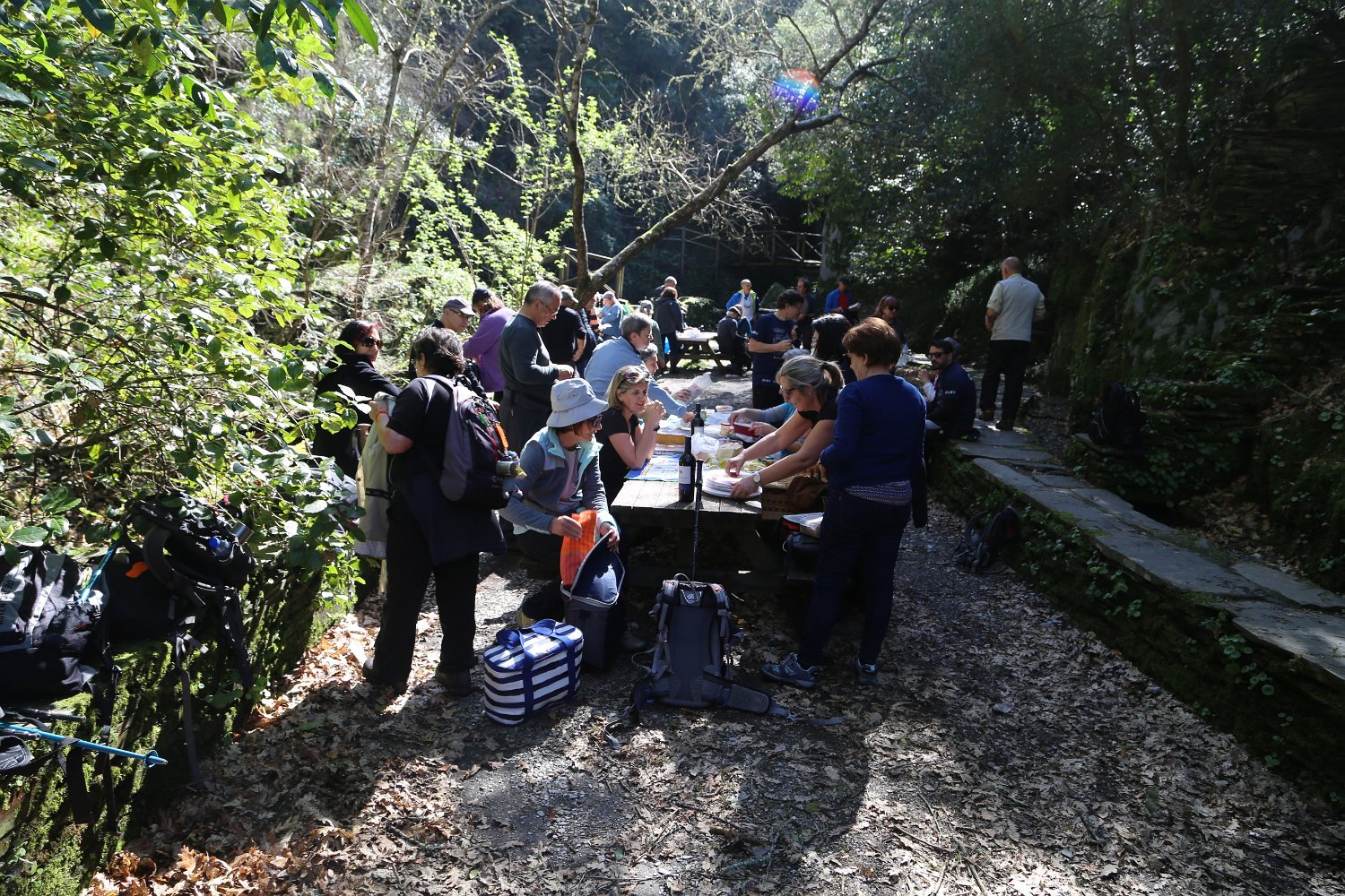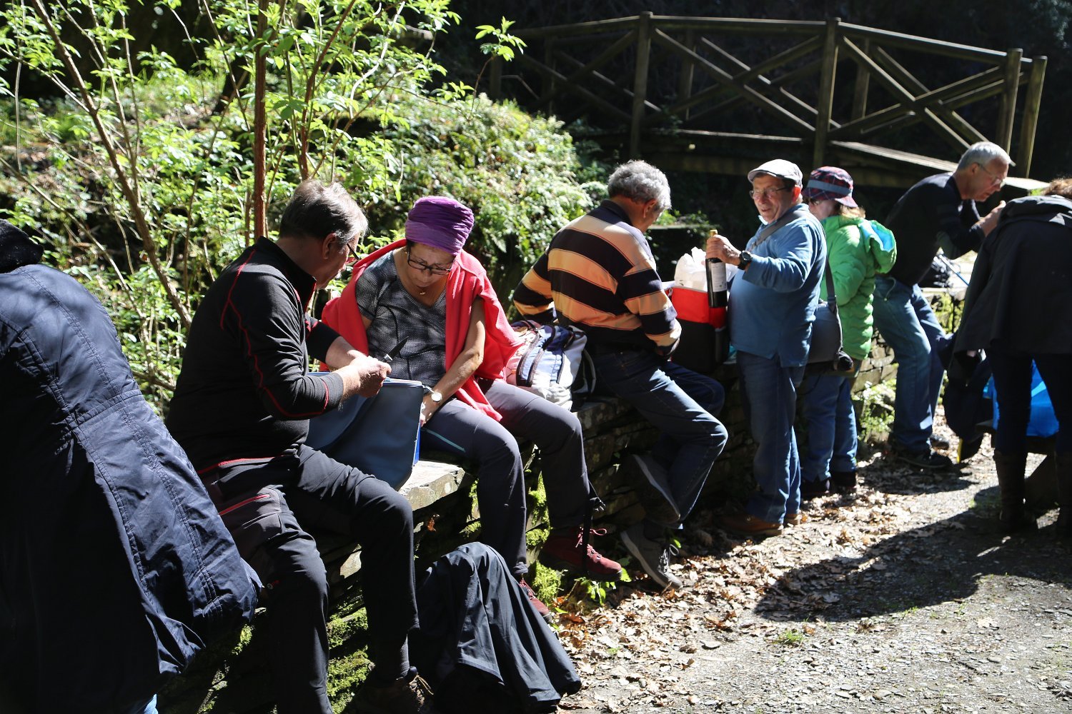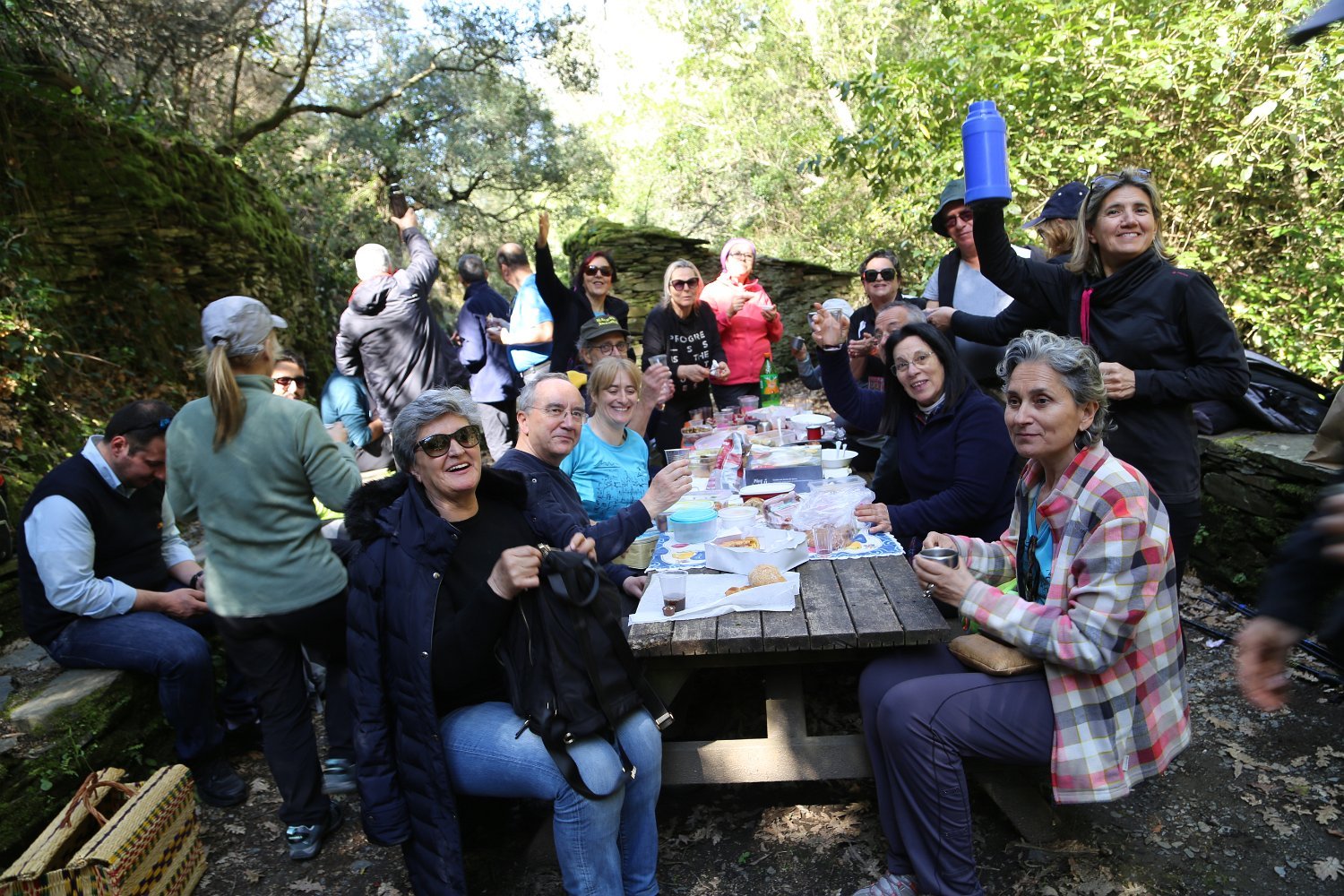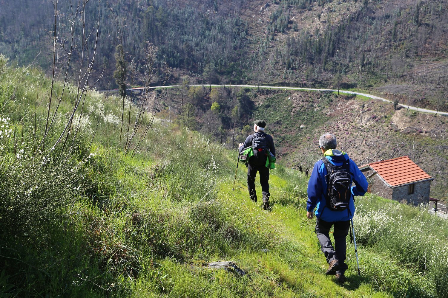 O declive da subida foi aumentando até um conjunto de construções de xisto onde cruzamos a ribeira da Mata, junto à confluência da ribeira da Margaraça com a ribeira da Abelheira, tendo de seguida iniciado a longa e ingreme subida para Pardieiros, aldeia que se situa dentro da zona da paisagem protegida da serra do Açor, na proximidade da Mata da Margaraça.