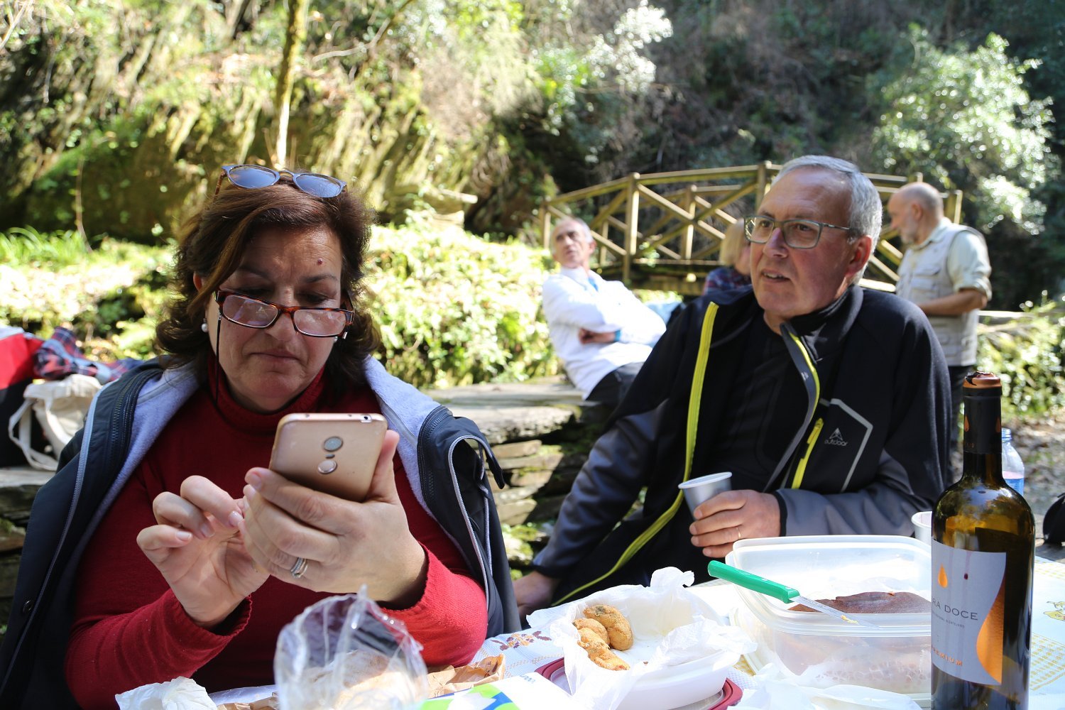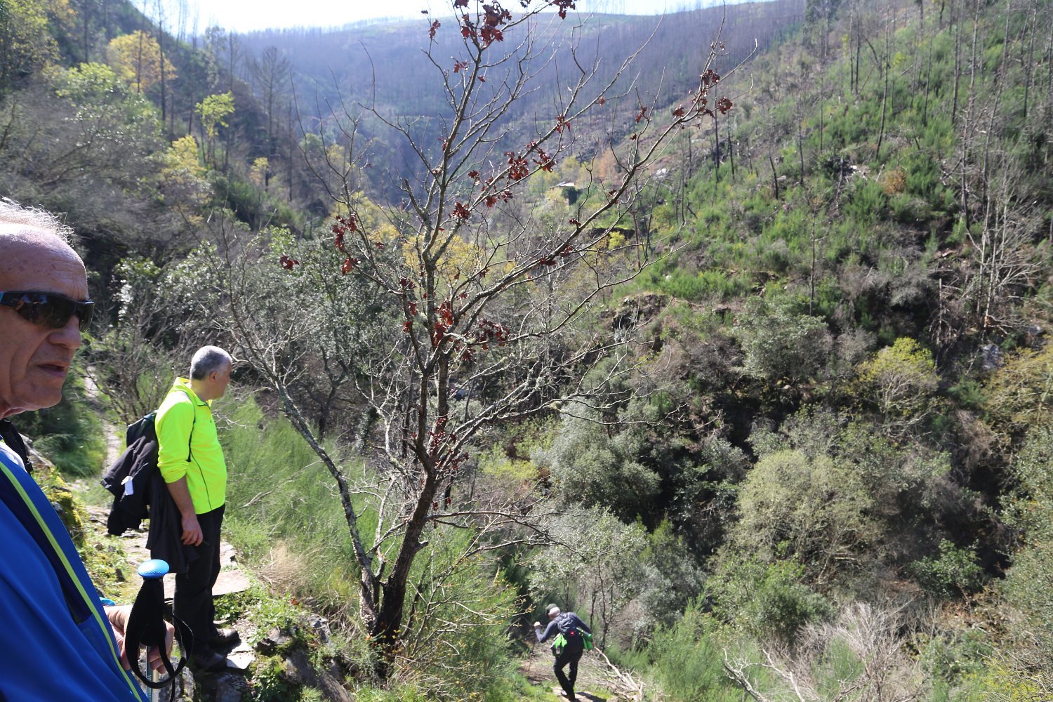 Chegados a Benfeita o Miguel manifestou a intensão de não continuar o percurso que estava previsto, seguindo com alguns companheiros pela estrada alcatroada para a Fraga da Pena. Depois de alguma hesitação acabamos por continuar o percurso inicialmente acertado, seguindo a meia encosta o vale do ribeiro do Sardal até iniciar a abrupta descida para a Fraga da Pena.