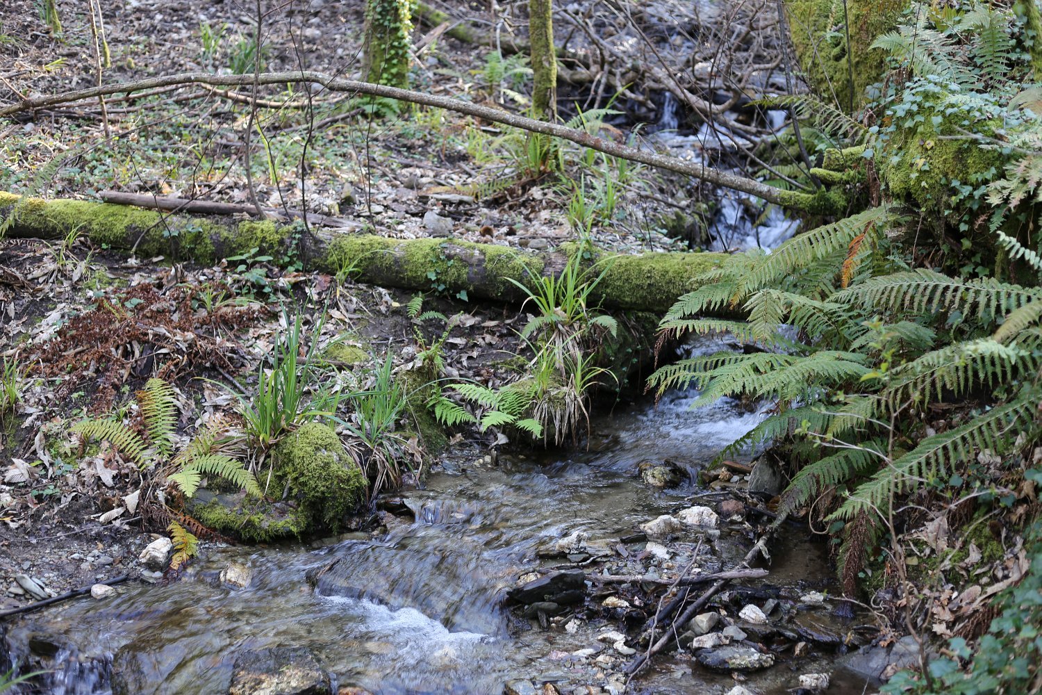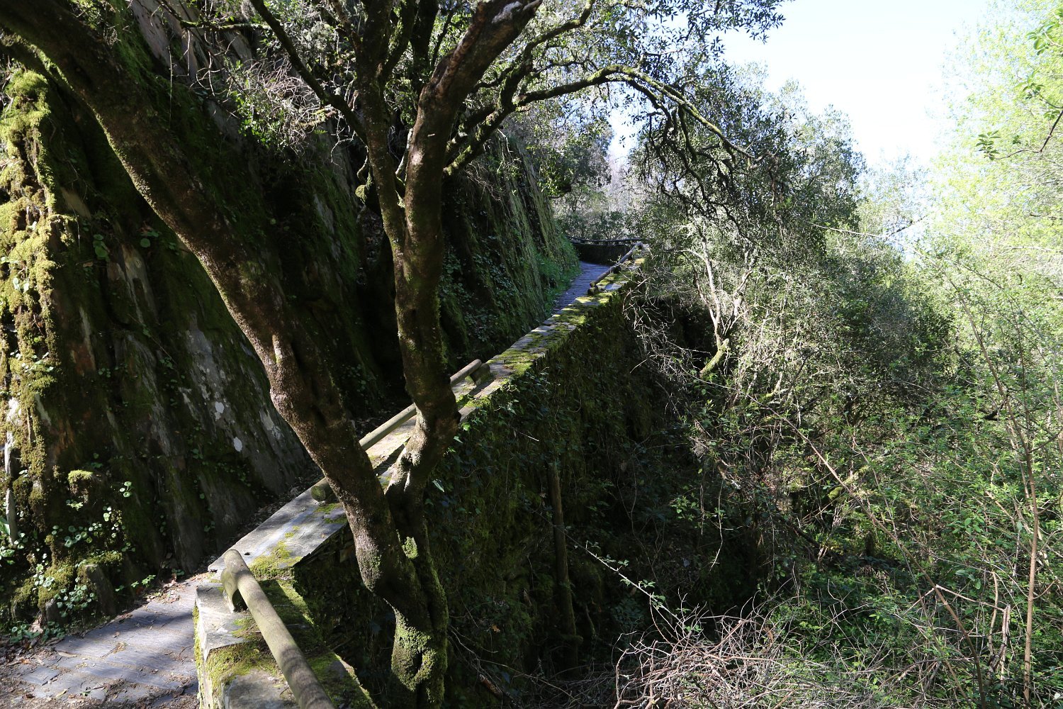 Este troço é particularmente bonito, pois pode-se abarcar todo o vale, que vai serpenteando encosta acima, com o ribeiro a afunilar entre muros de suporte construídos para conquistar ao rio terrenos para uso agrícola, agora desertos. Visíveis também restos de levadas e engenhos há muito em desuso e votados ao abandono.